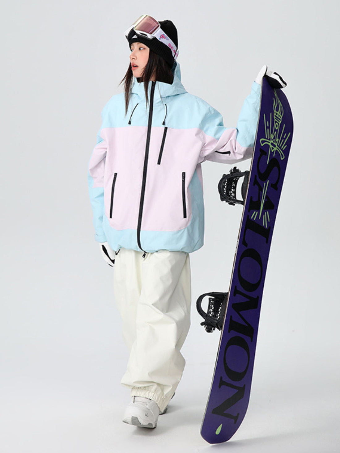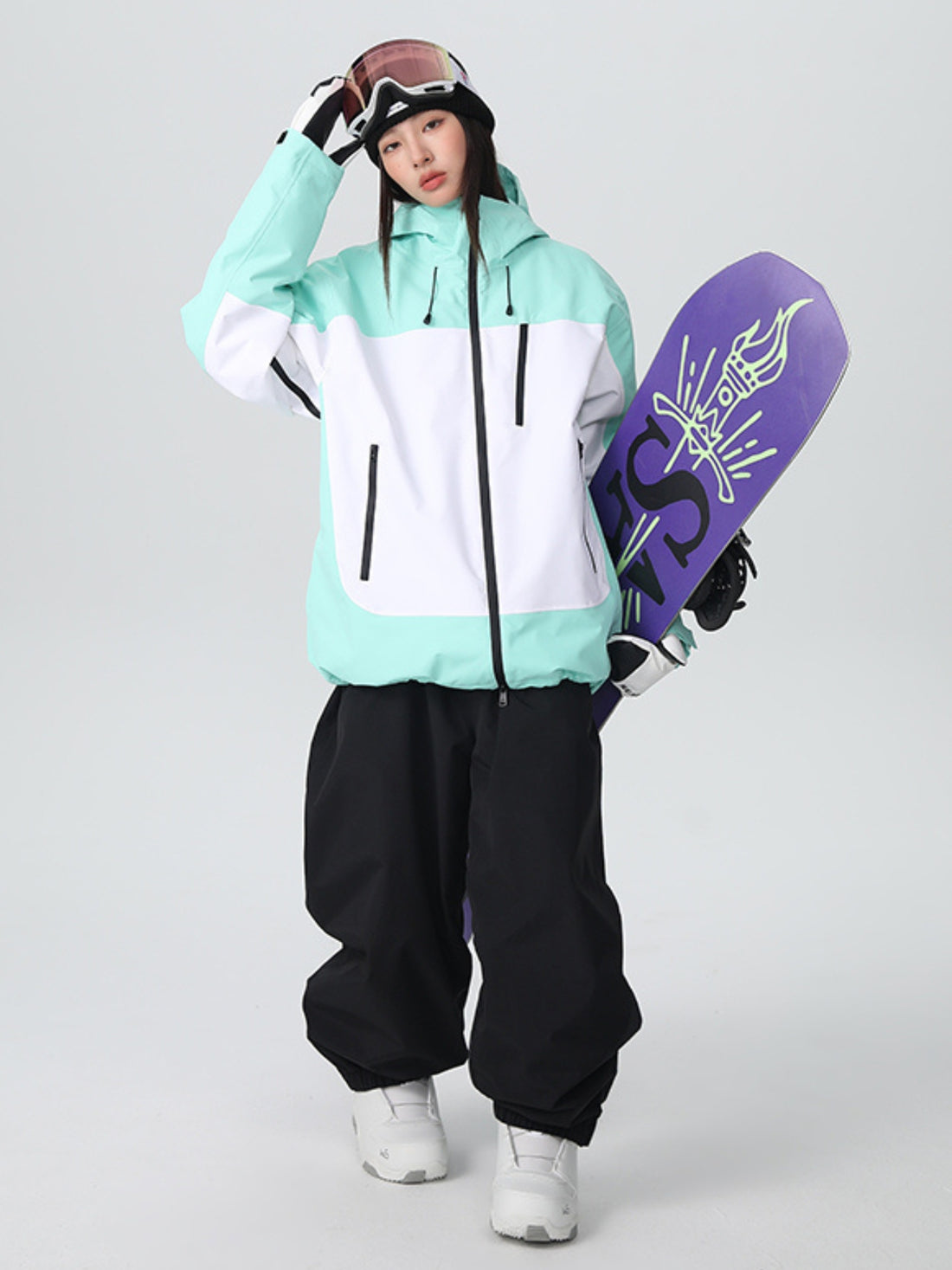 XwXwSeui Men Women New Baggy Insulated Colorblock Hooded Snowboarding Jackets