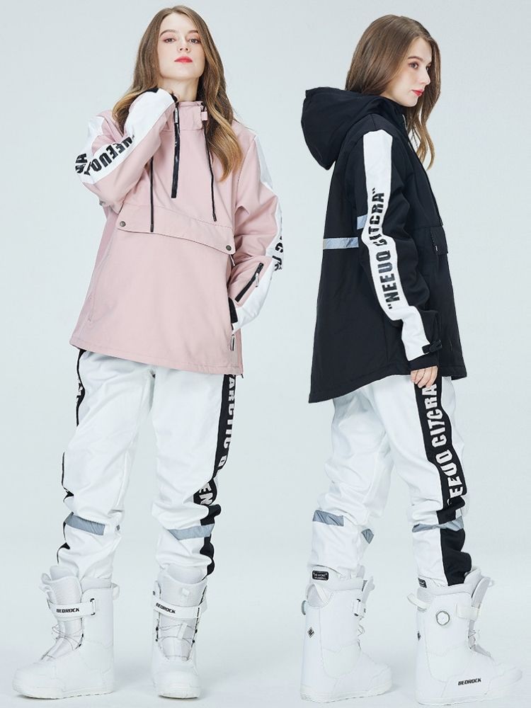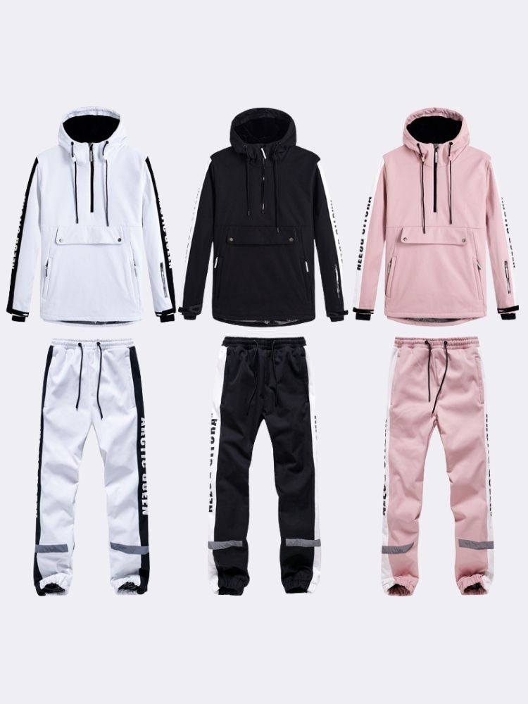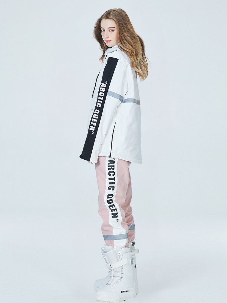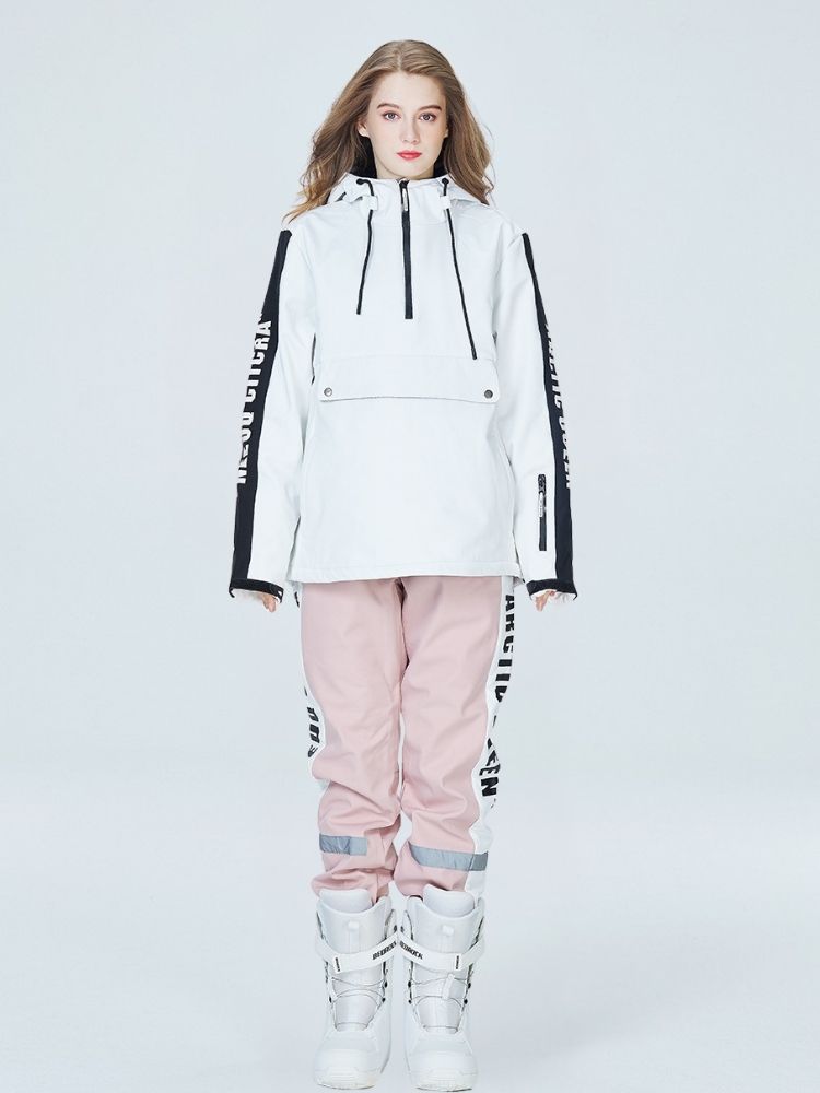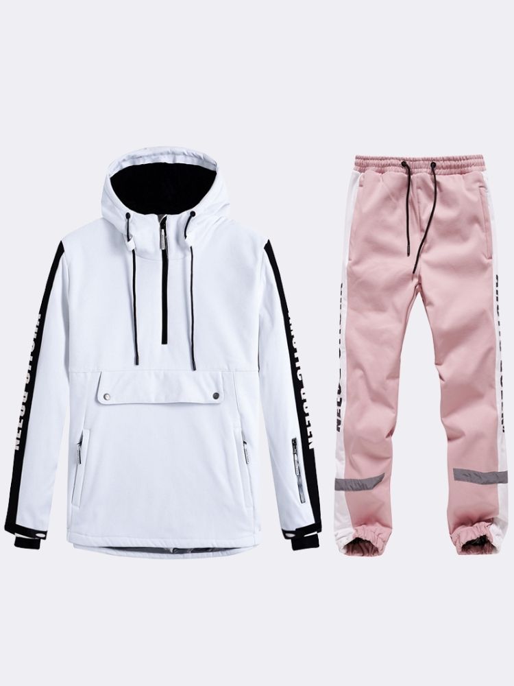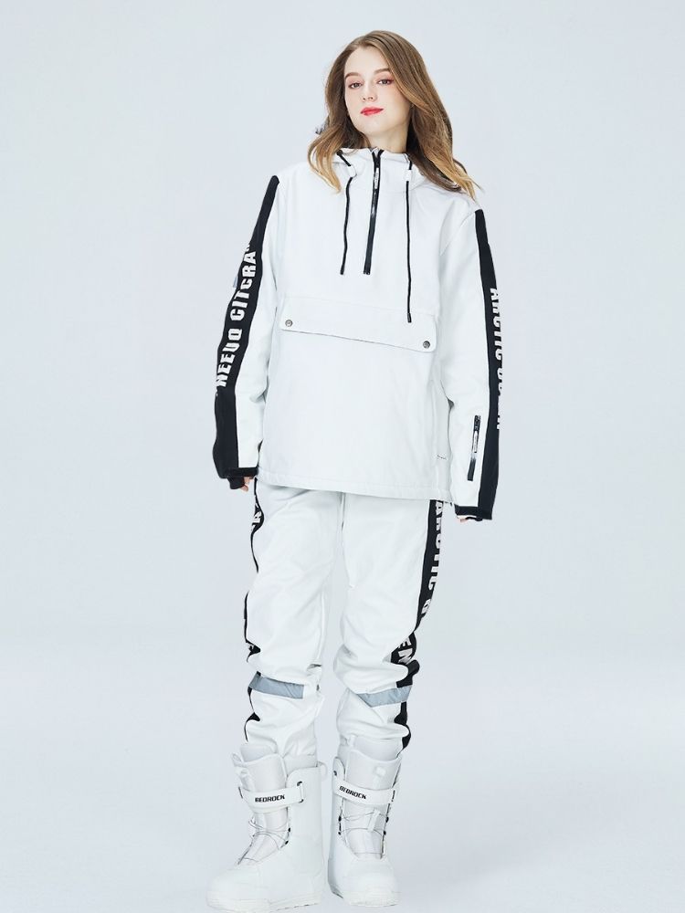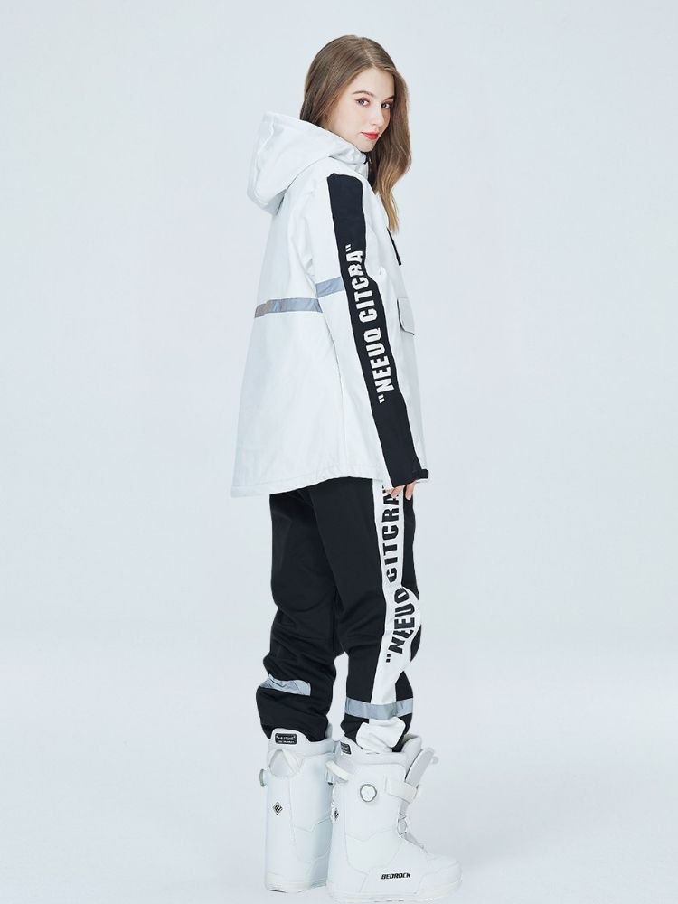 XwXwSeui Men Women Reflective Windproof Snow Suits-White Series