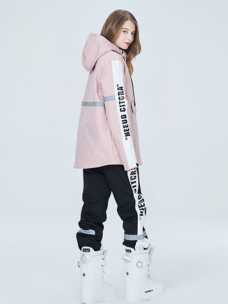 XwXwSeui Men Women Reflective Windproof Snow Suits-Pink Series