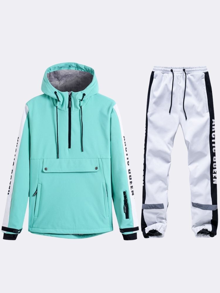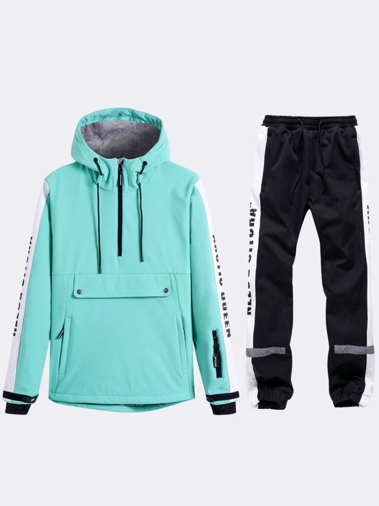 XwXwSeui Men Women Reflective Windproof Snow Suits-Mint Green Series