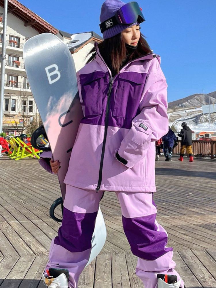 XwXwSeui Men Women Trendy Color Matching Insulated Ski Suits