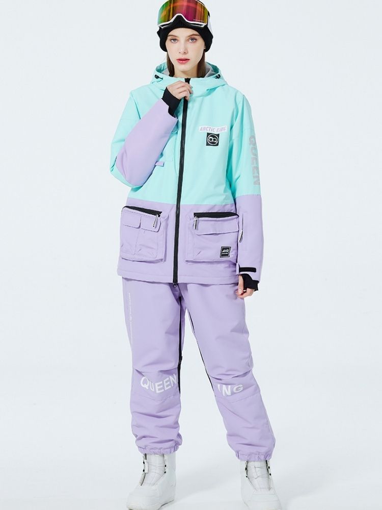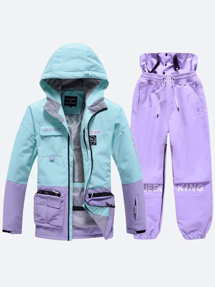 XwXwSeui Men Women Windproof Insulated Snow Suits-Purpleblack Series