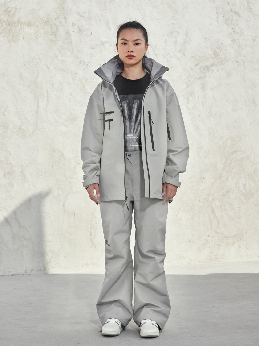 XwXwSeui Men Women Zipper Baggy Hooded Waterproof 3L Shell Skiing Suits