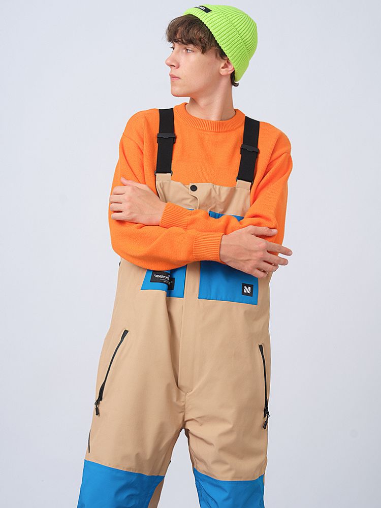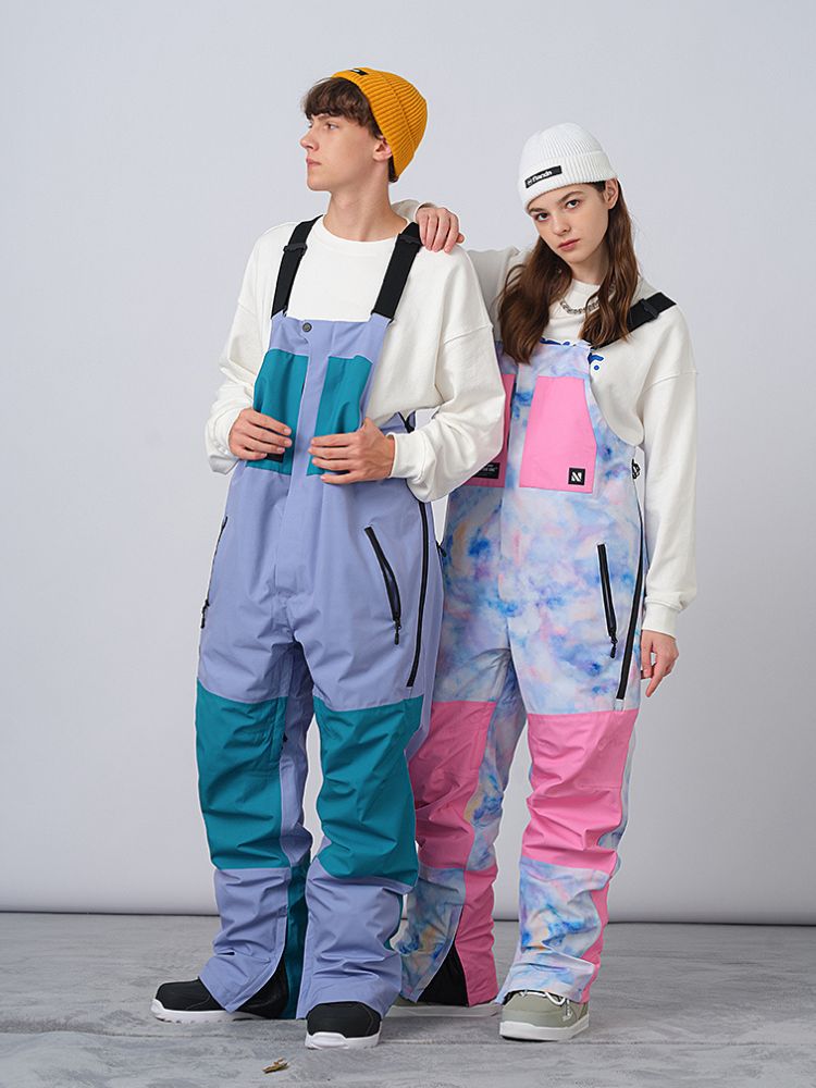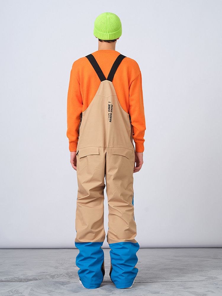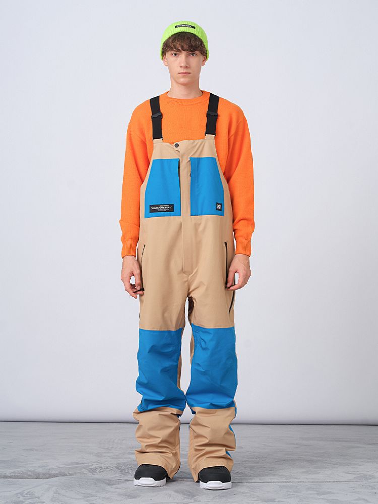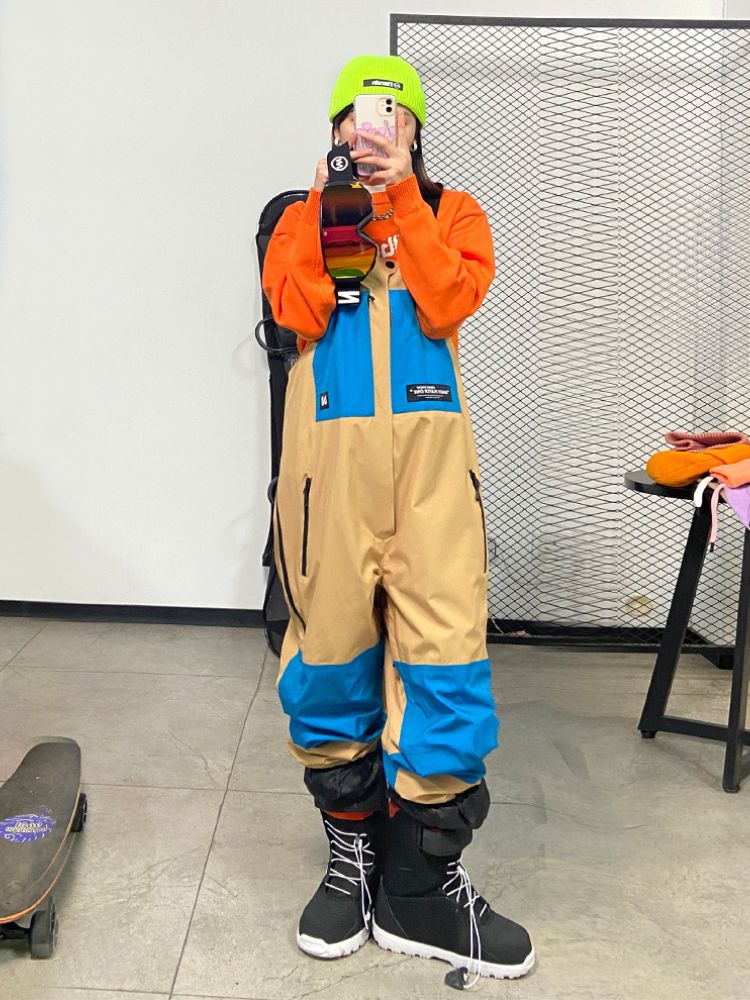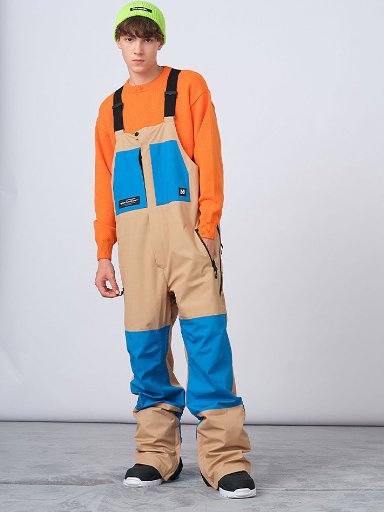 XwXwSeui Men WomenInsulated Loose Colorblock Snow Bibs
