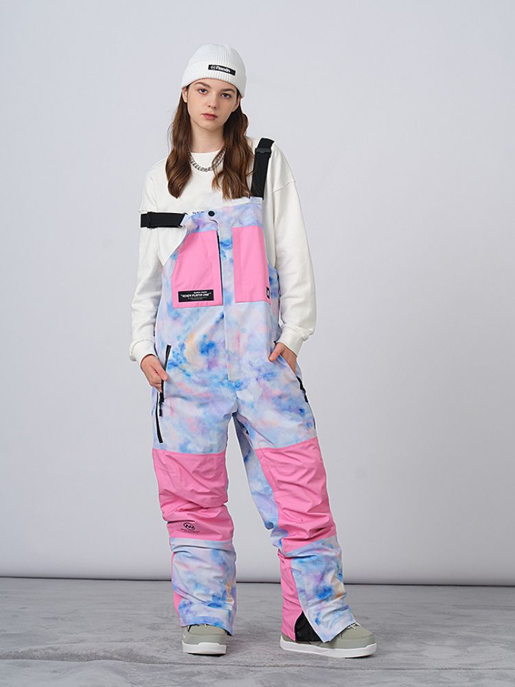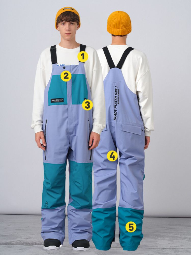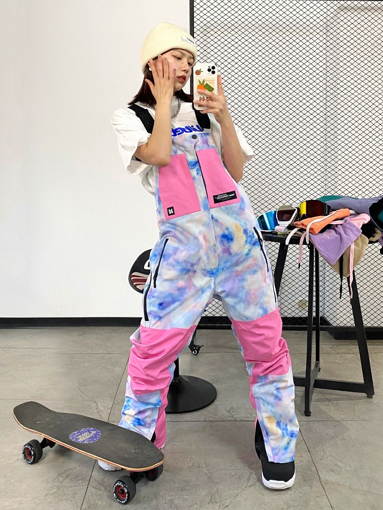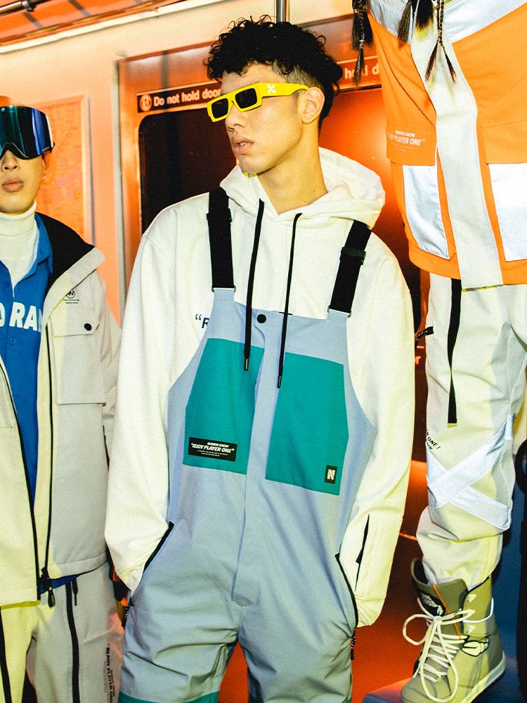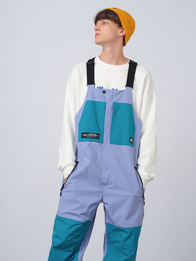 XwXwSeui Men WomenInsulated Loose Colorblock Snow Bibs