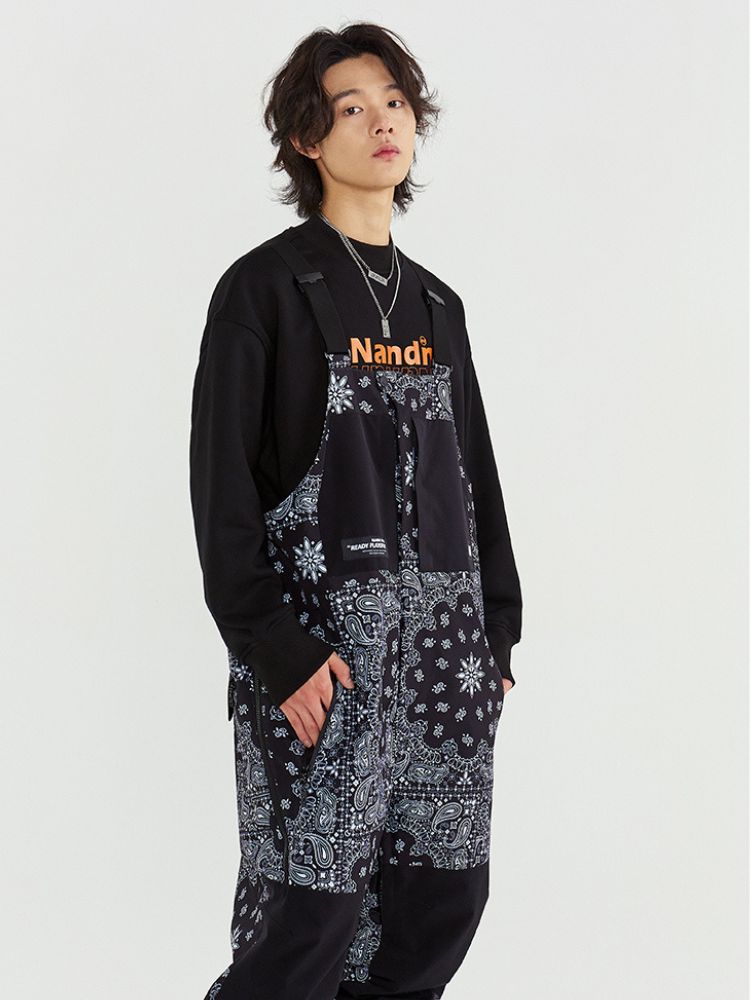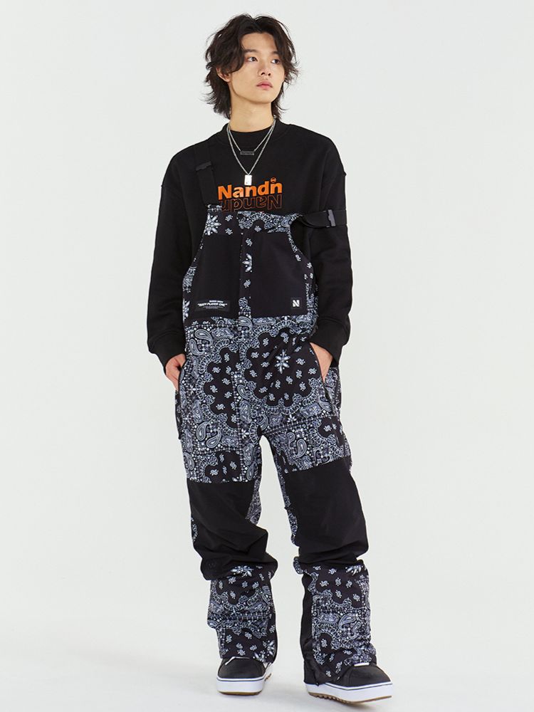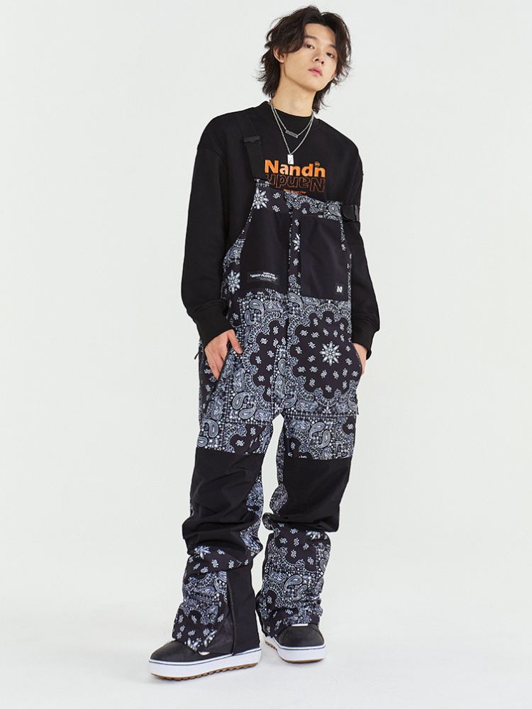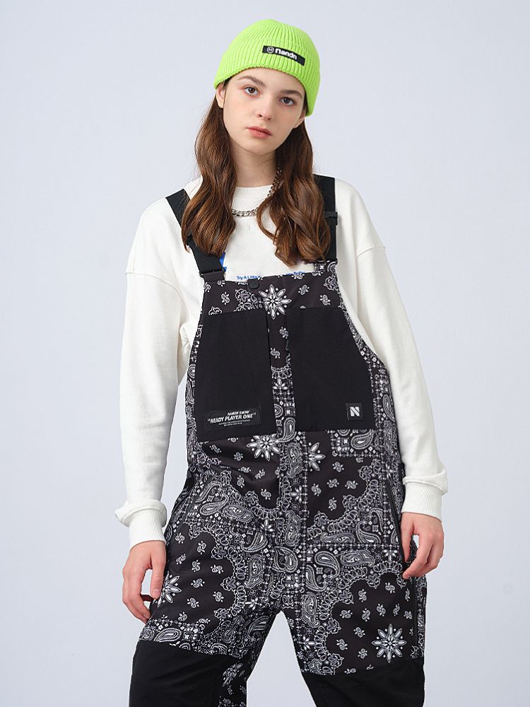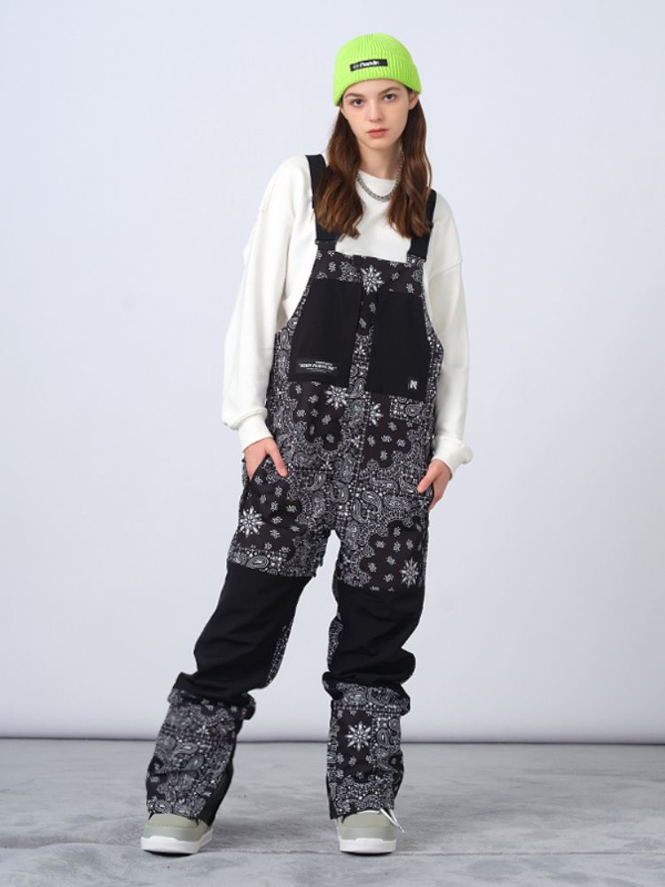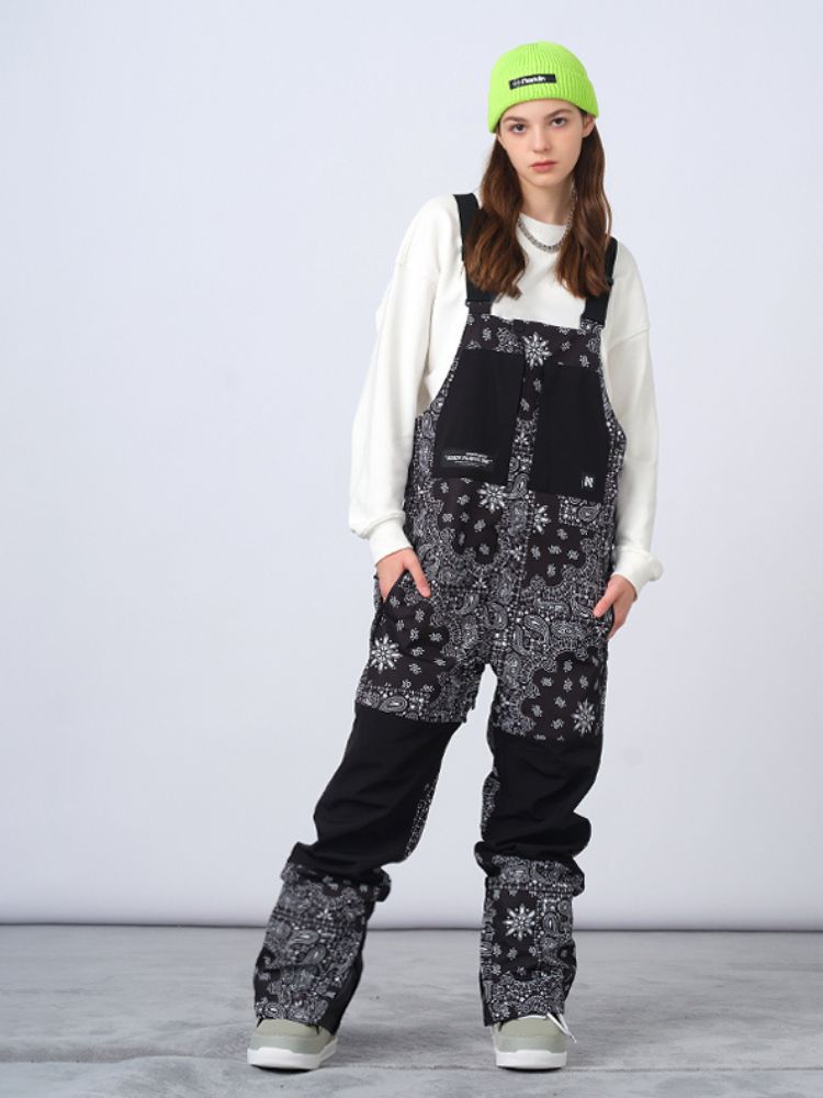 XwXwSeui Men WomenInsulated Loose Colorblock Snow Bibs
