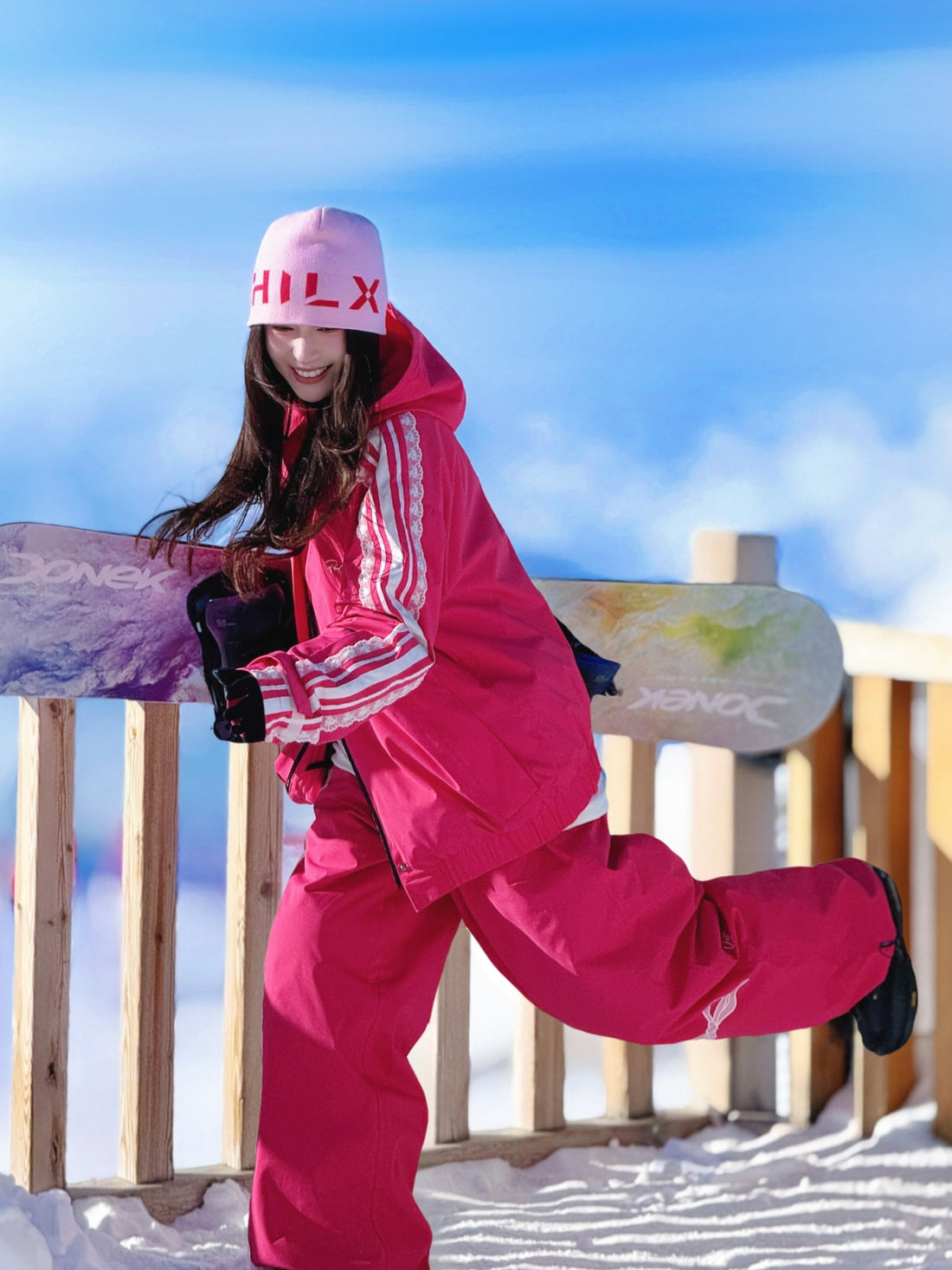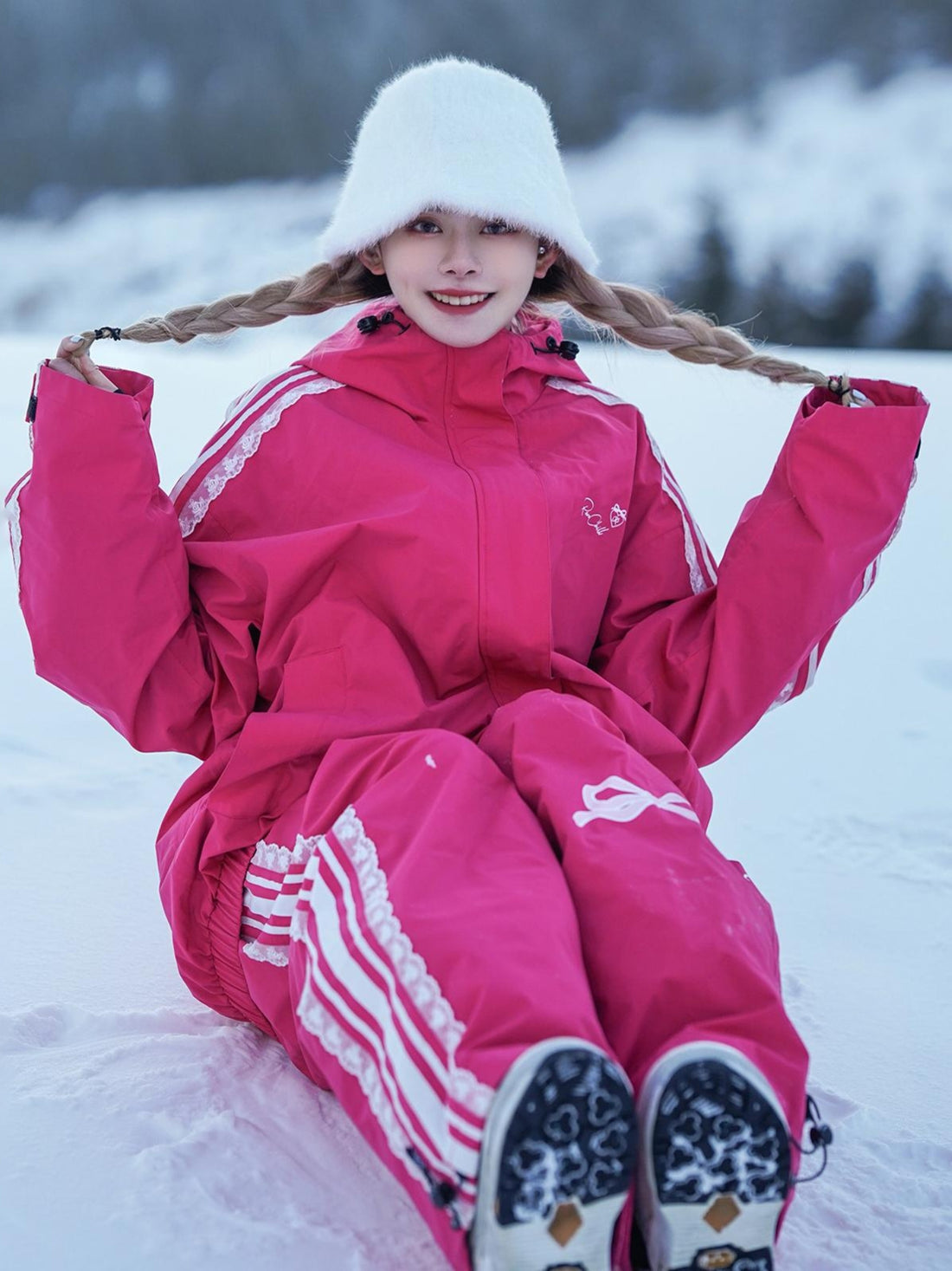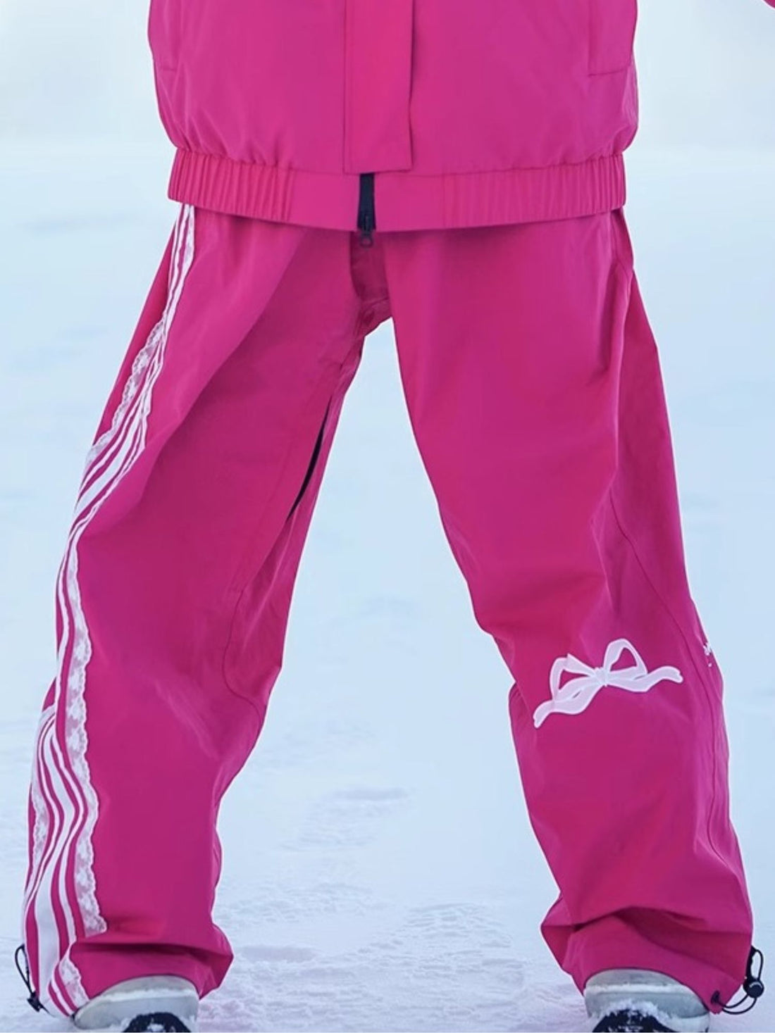 XwXwSeui Men's Women's Baggy Breathproof Chic Rose Red Snowboarding Pants