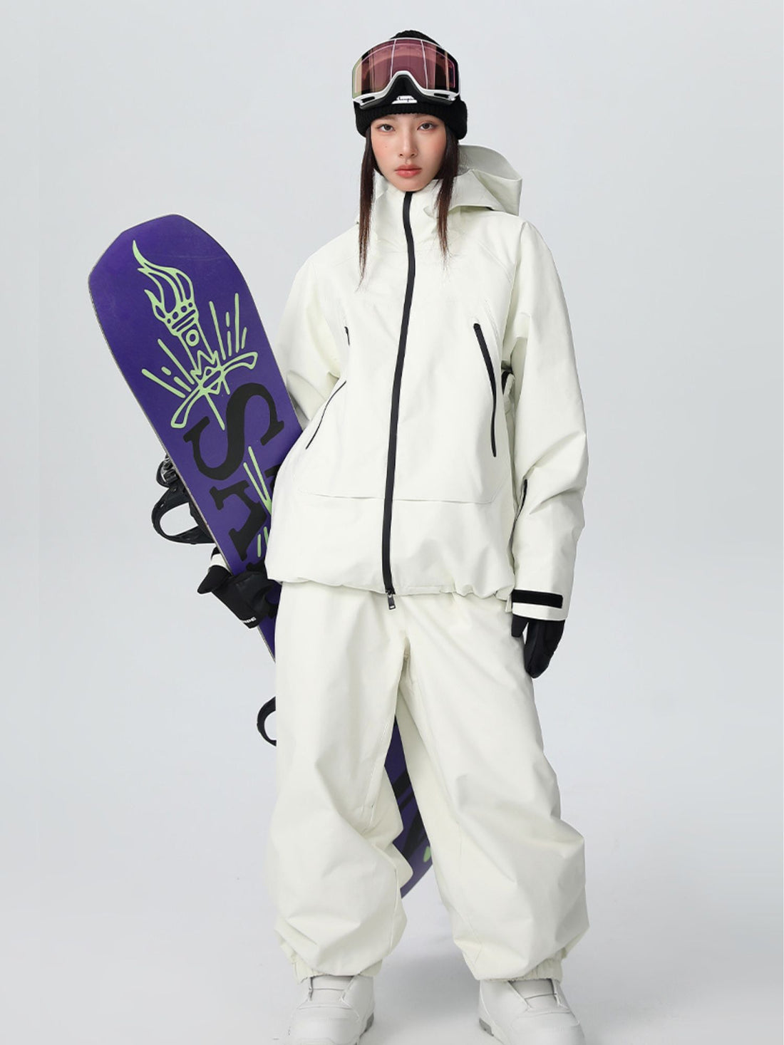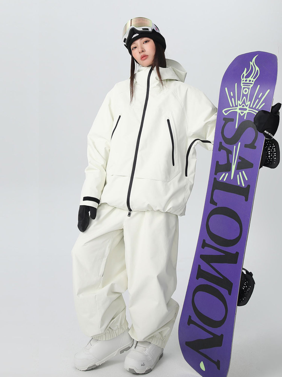 XwXwSeui Mens Womens Chic Hooded Solid Baggy Waterproof Insulated Snowboarding Suits