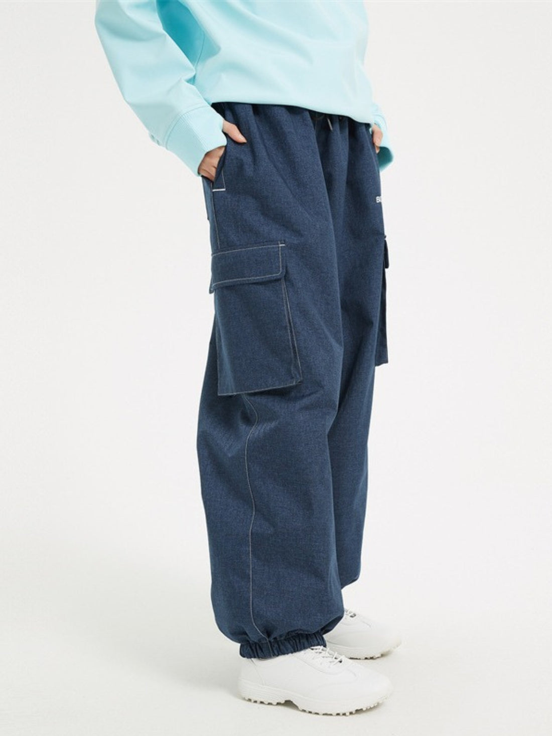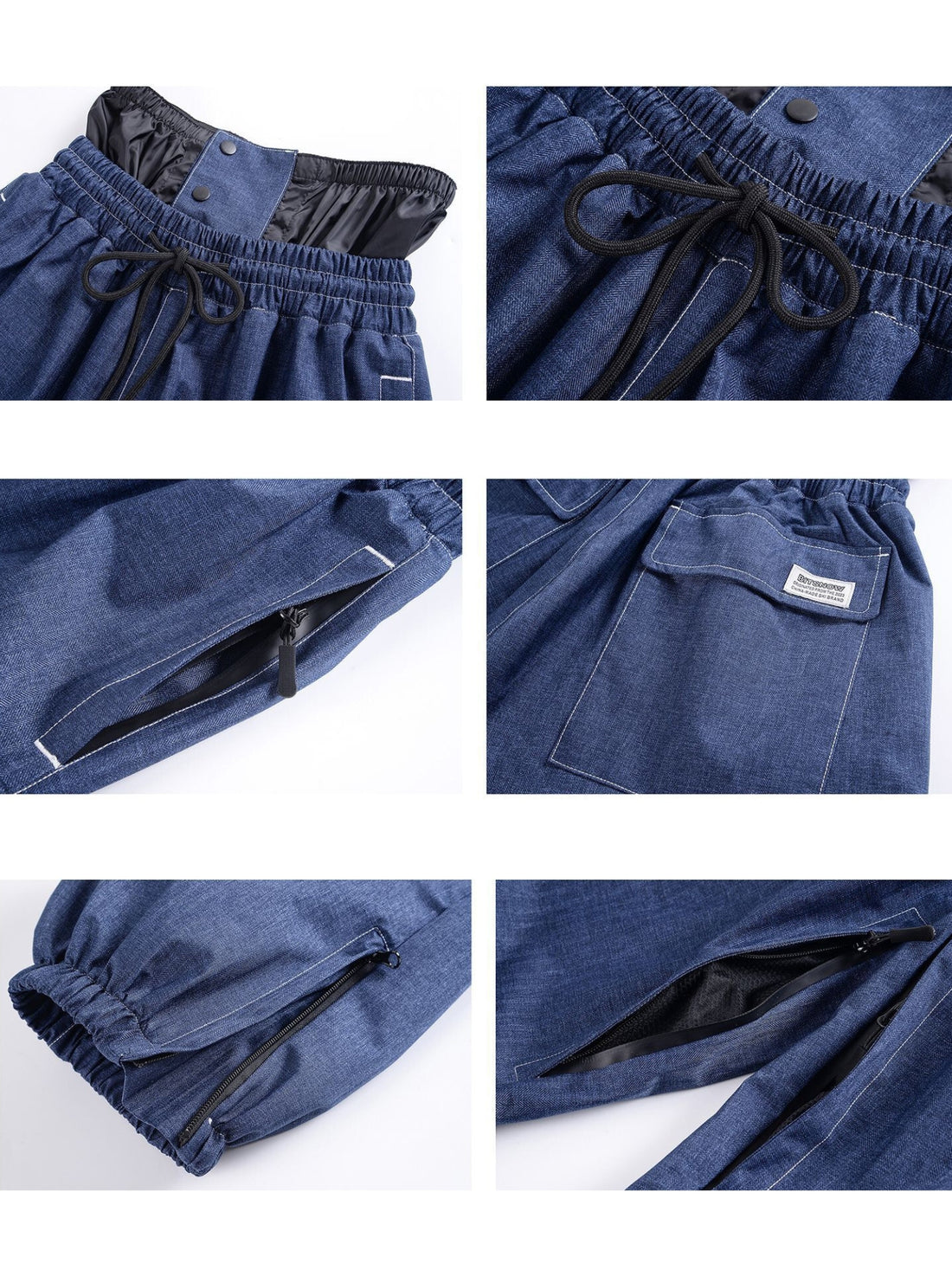 XwXwSeui Mens Womens Insulated Denim Baggy Breathable Waterproof Snow Pants