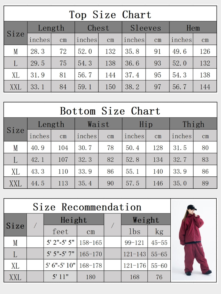 XwXwSeui Mens Womens Insulated Solid Baggy Waterproof Outdoor Skiing Suits
