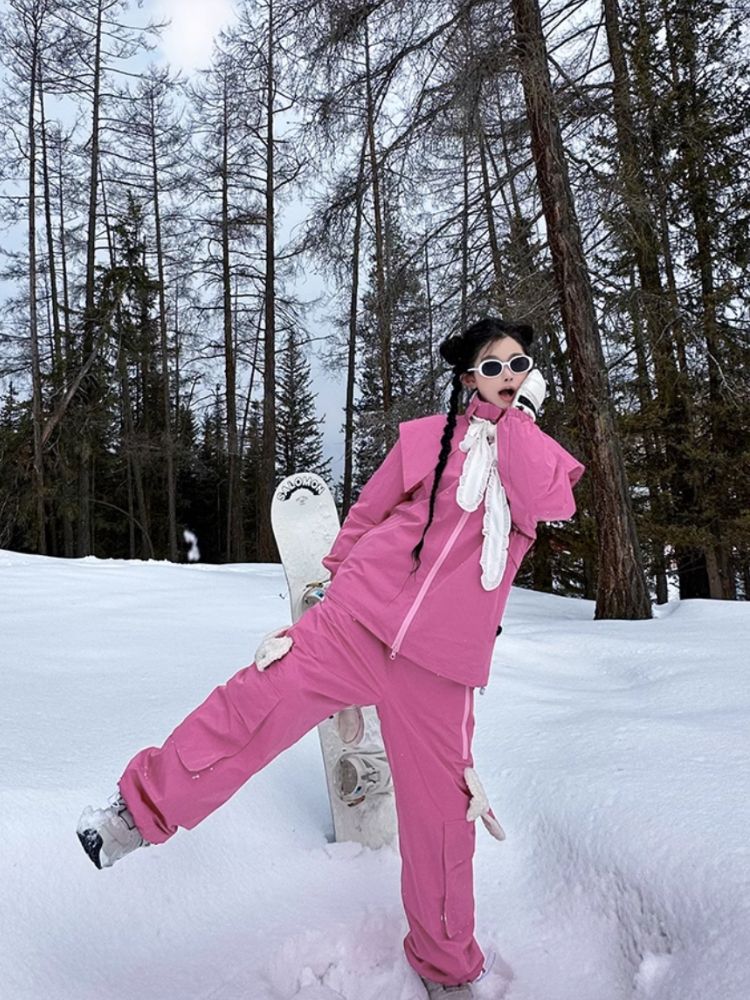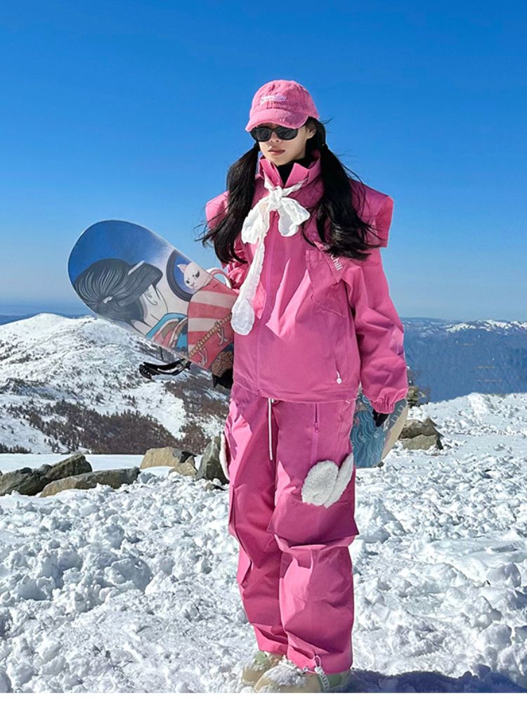 XwXwSeui Men's Women's Waterproof Single Double Board Rabbit Ears Loose Fashionable Ski Suits
