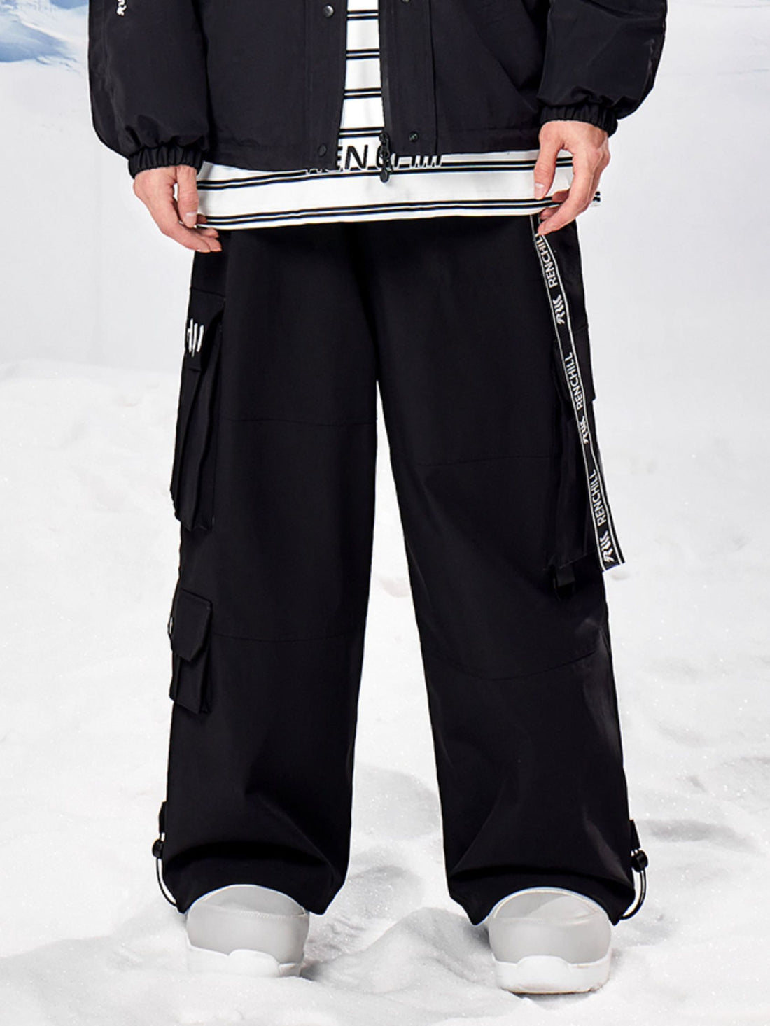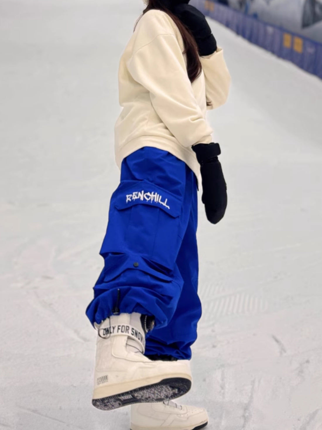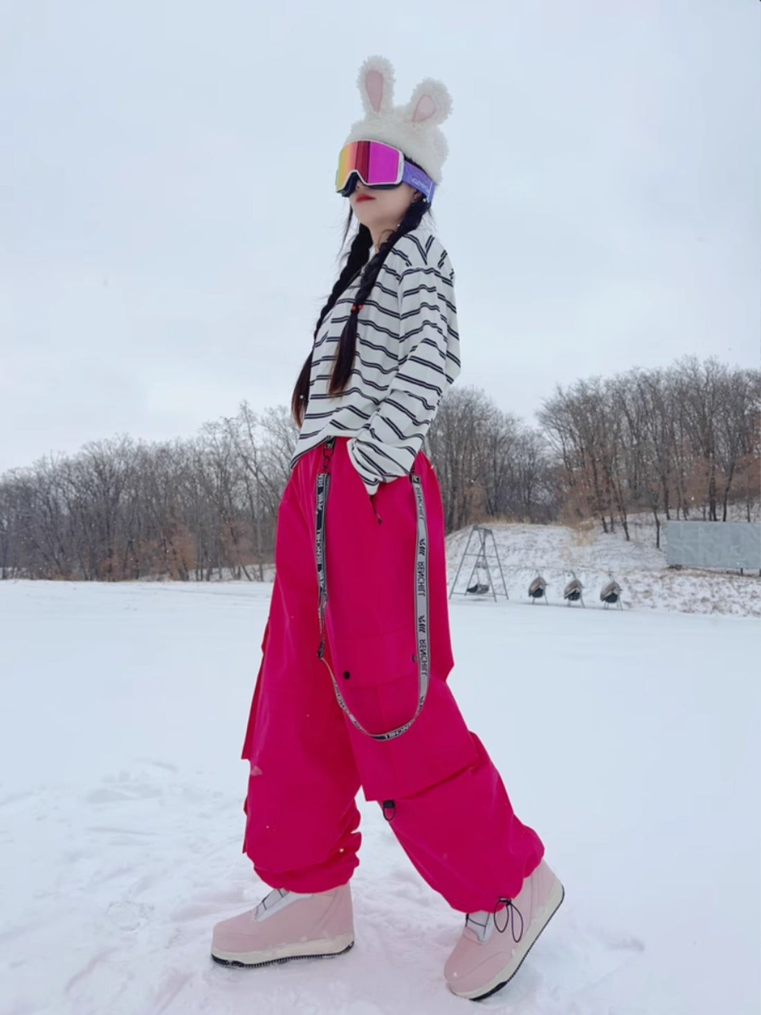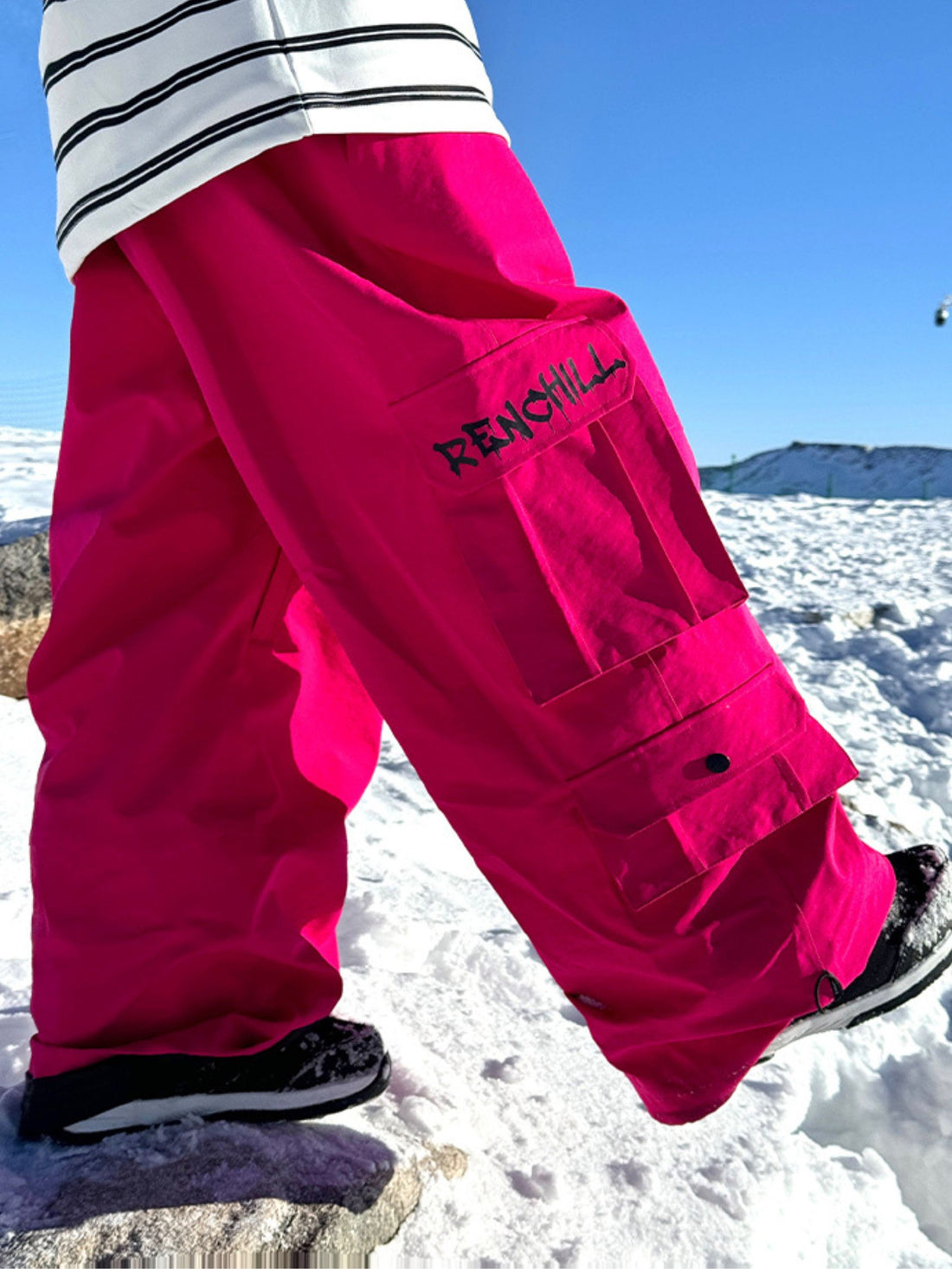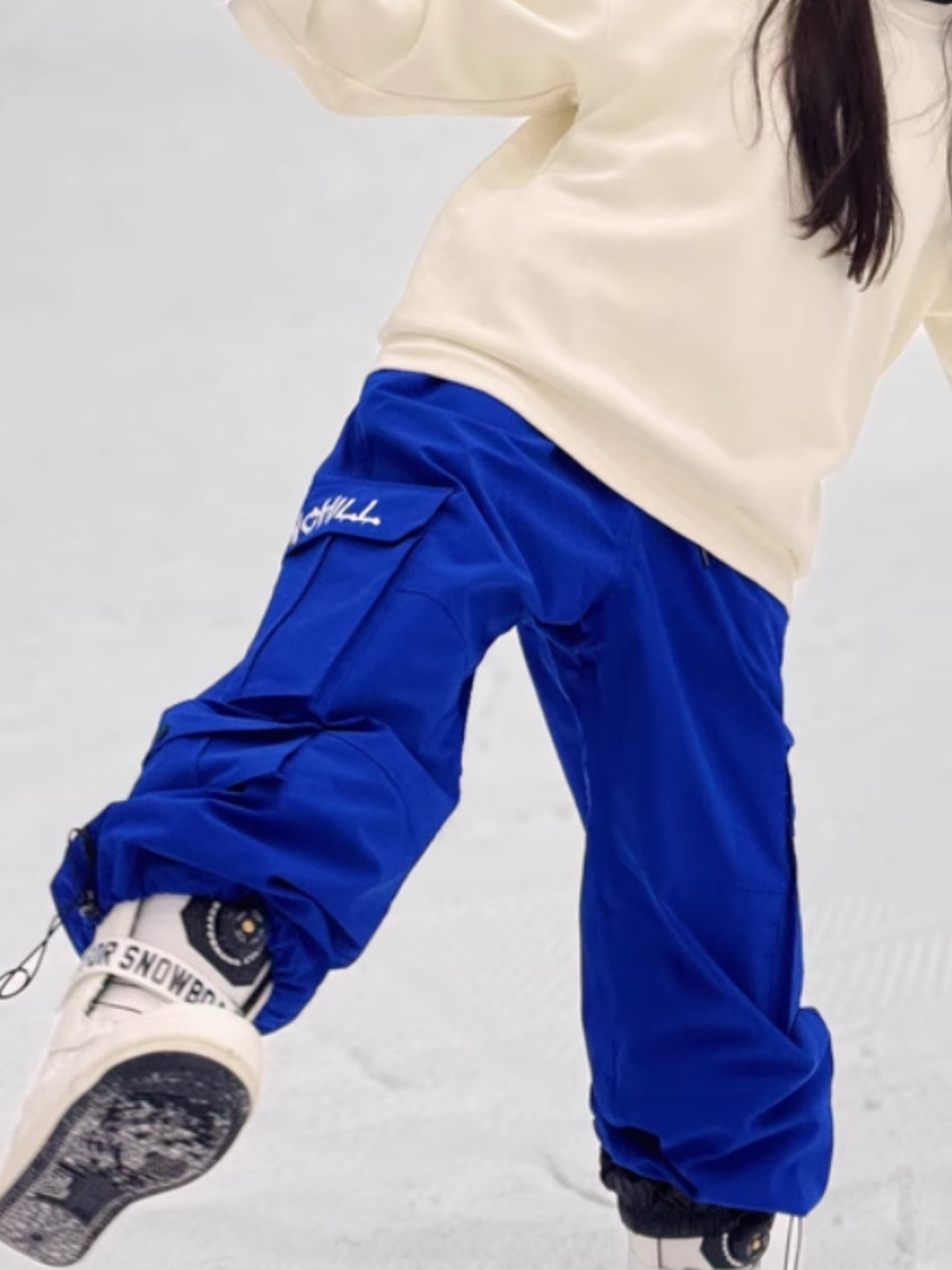 XwXwSeui Women and Men Fleeced New Chic Baggy Ribbon Breathproof Snow Pants