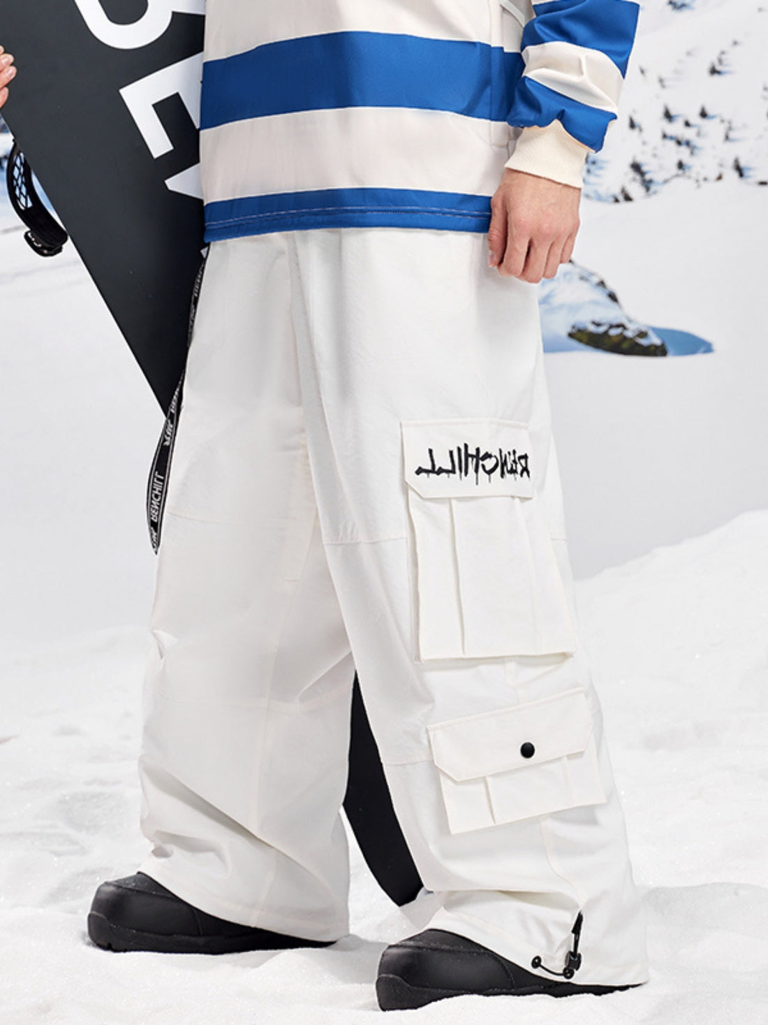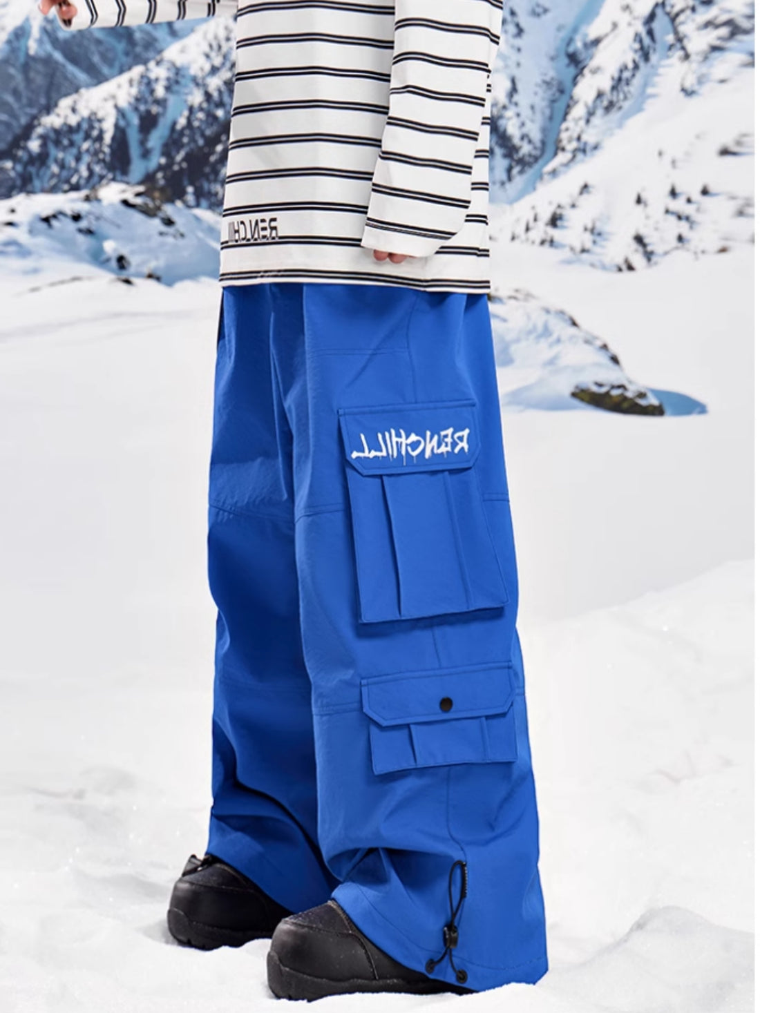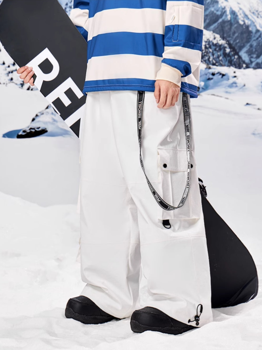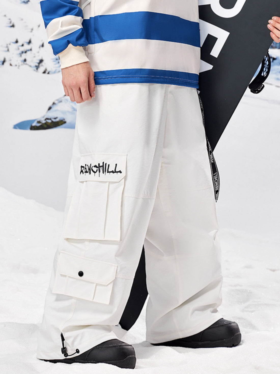 XwXwSeui Women and Men Fleeced New Chic Baggy Ribbon Breathproof Snow Pants