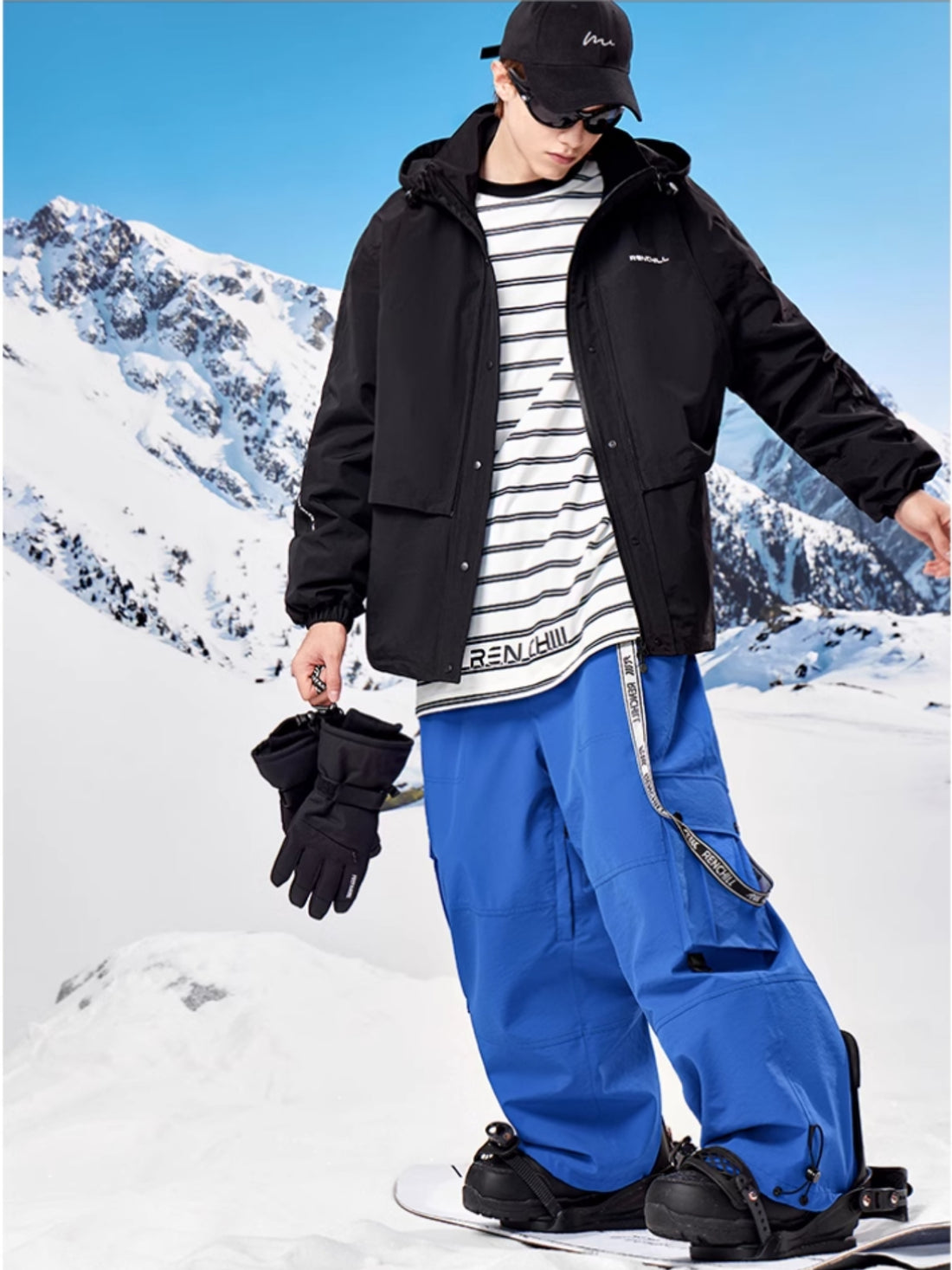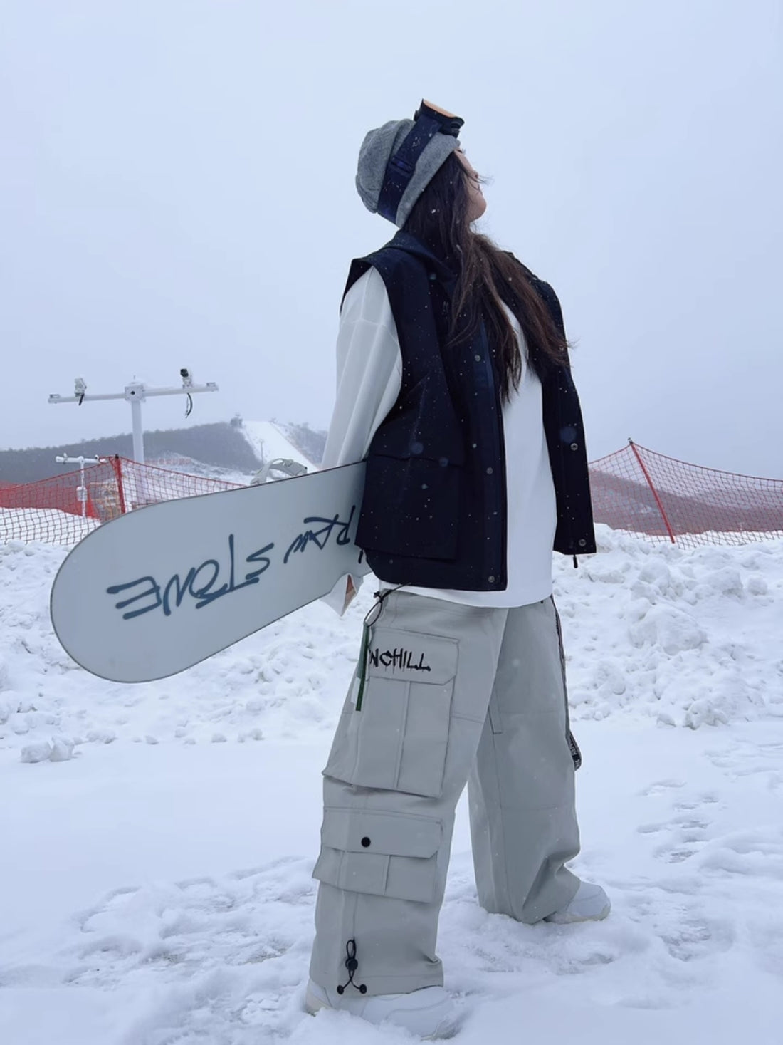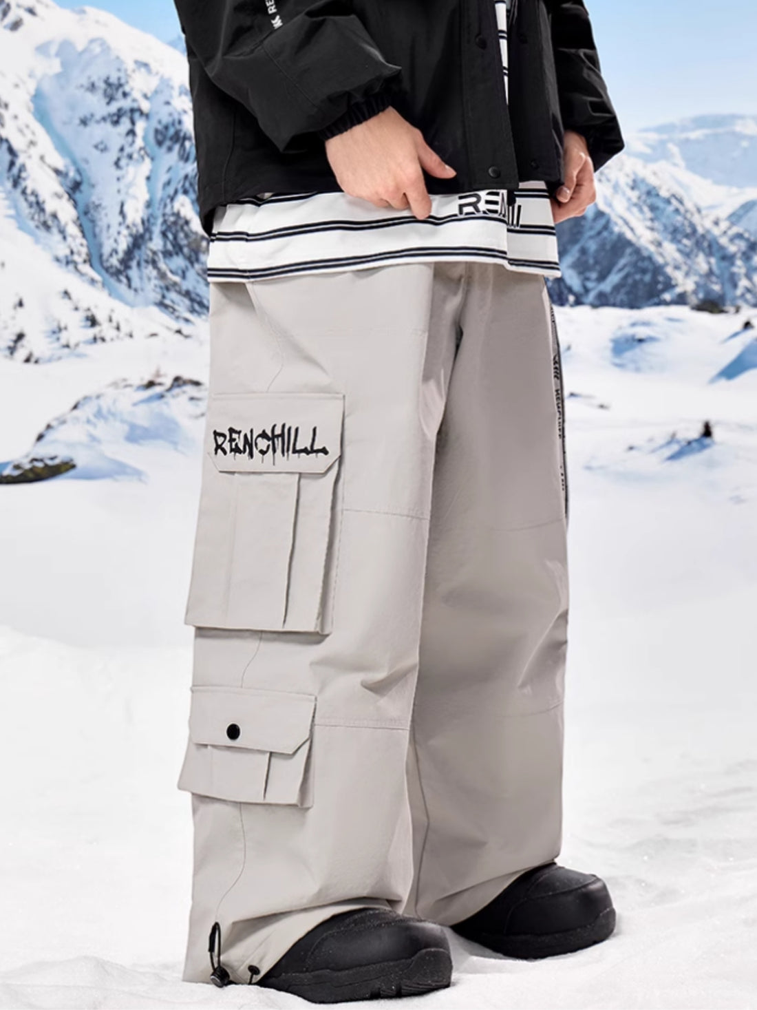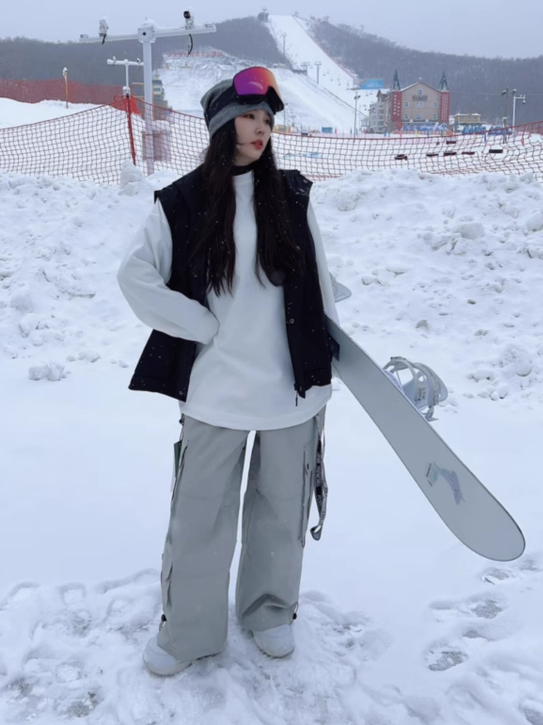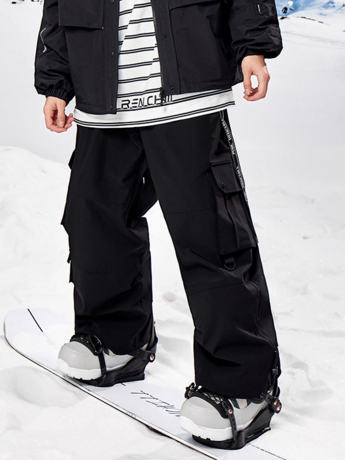 XwXwSeui Women and Men Fleeced New Chic Baggy Ribbon Breathproof Snow Pants