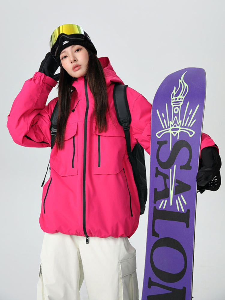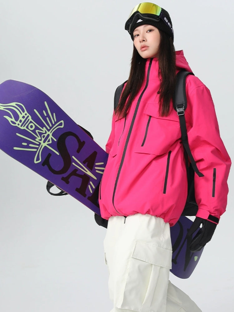 XwXwSeui Women and Men Insulated Pink Zipper Windproof Hood 3L Outddoor Ski Jackets