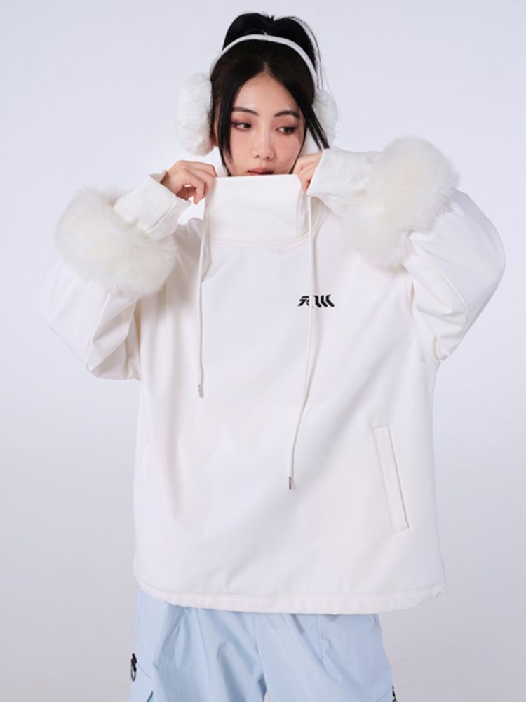 XwXwSeui Women Classic Solid Color Wool Sleeve Single Board Double Board Hoodie