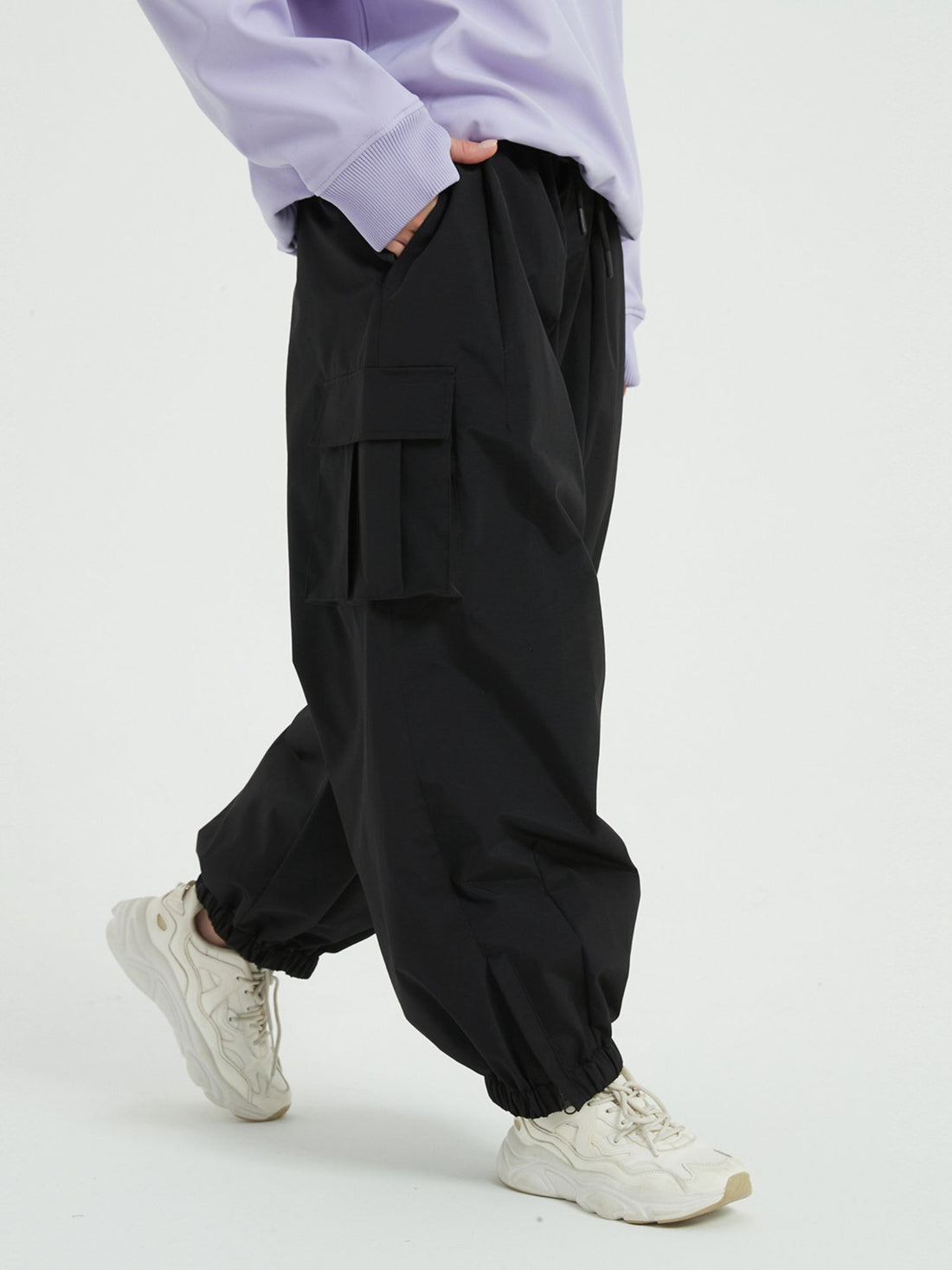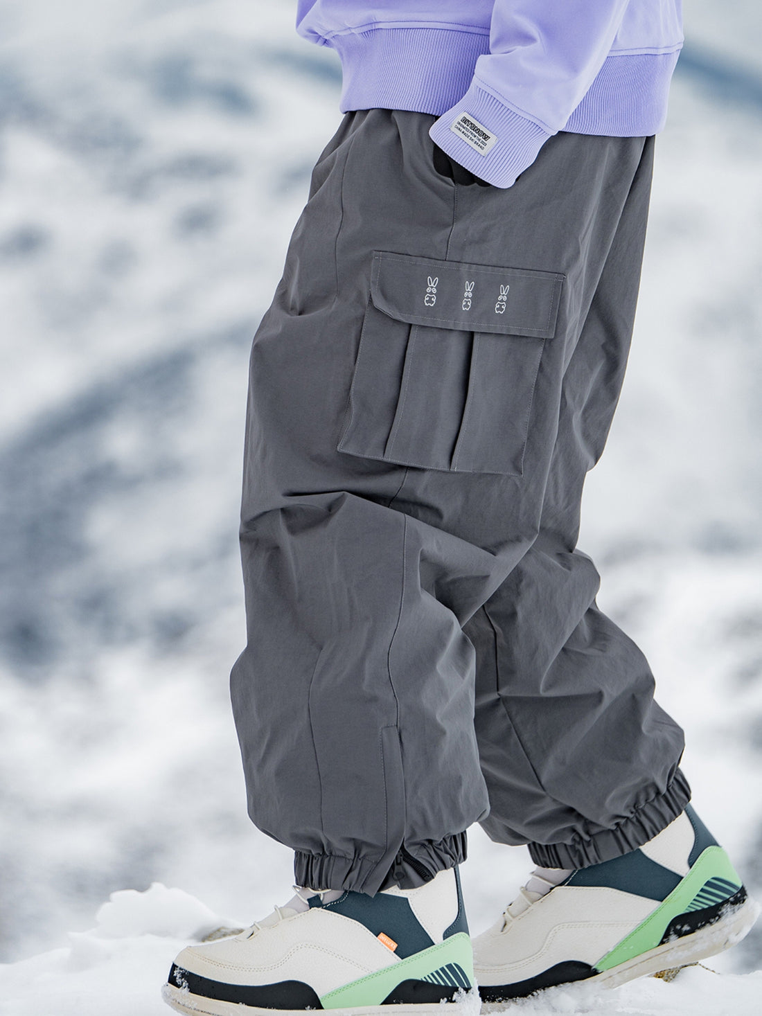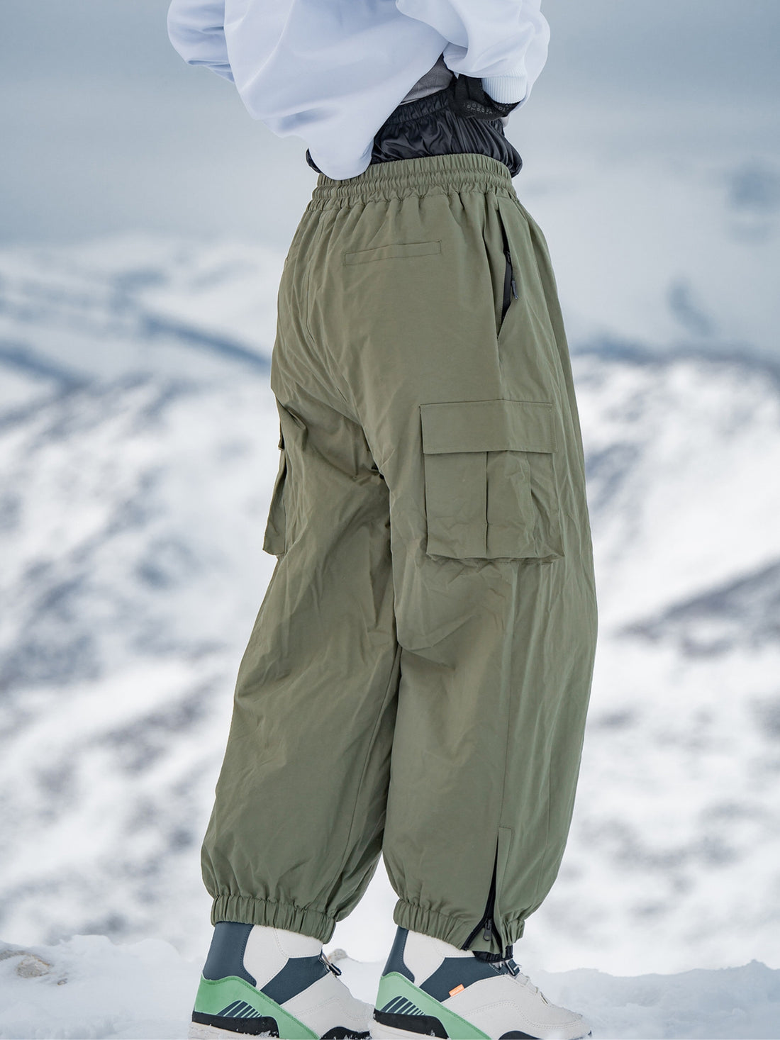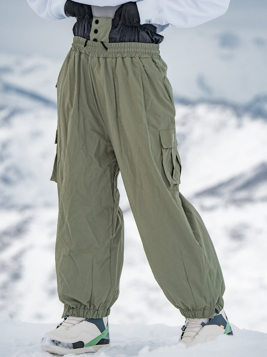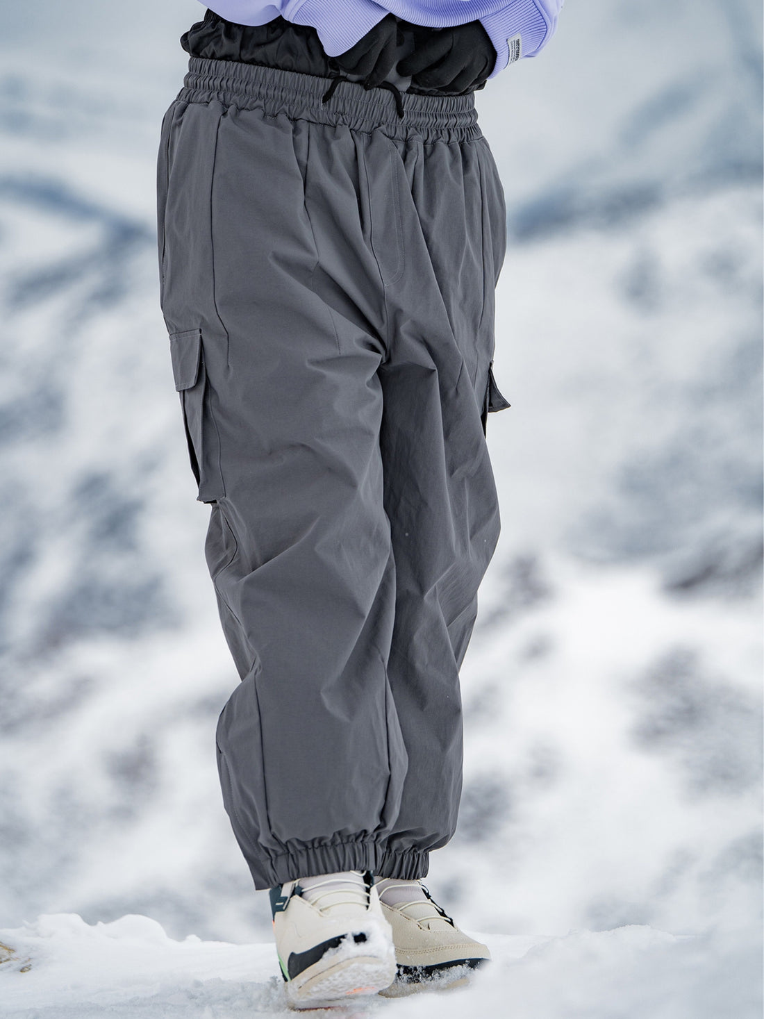 XwXwSeui Women Men Fleeced Cargo Loose Elastic Hem Waterproof Skiing Pants