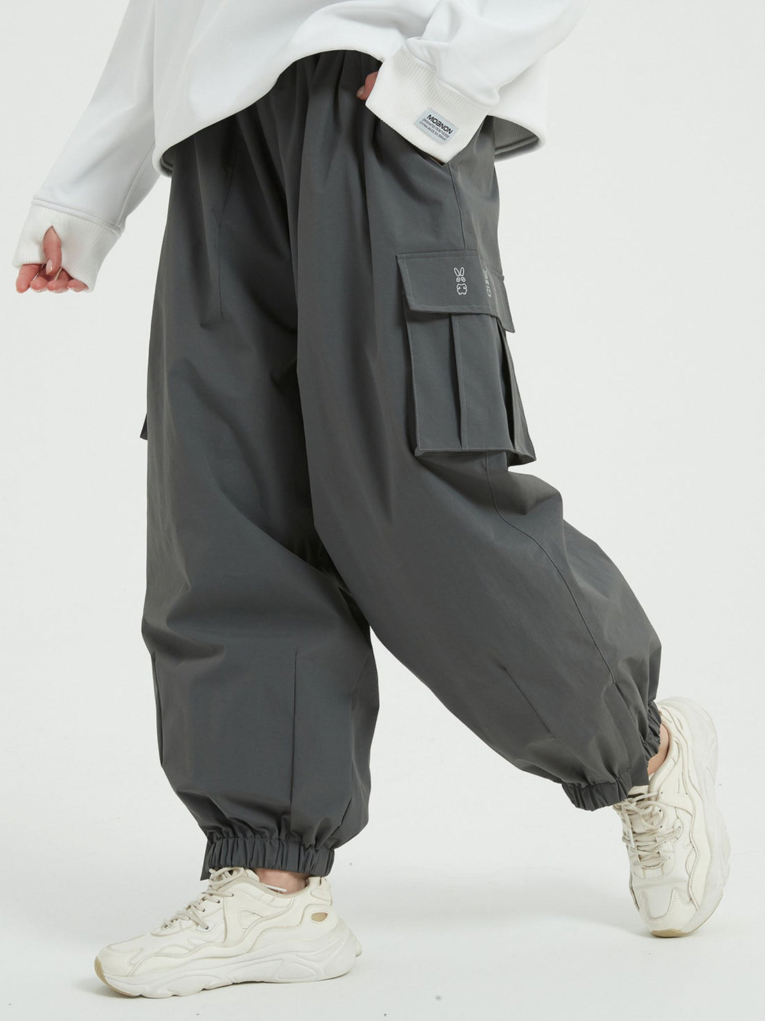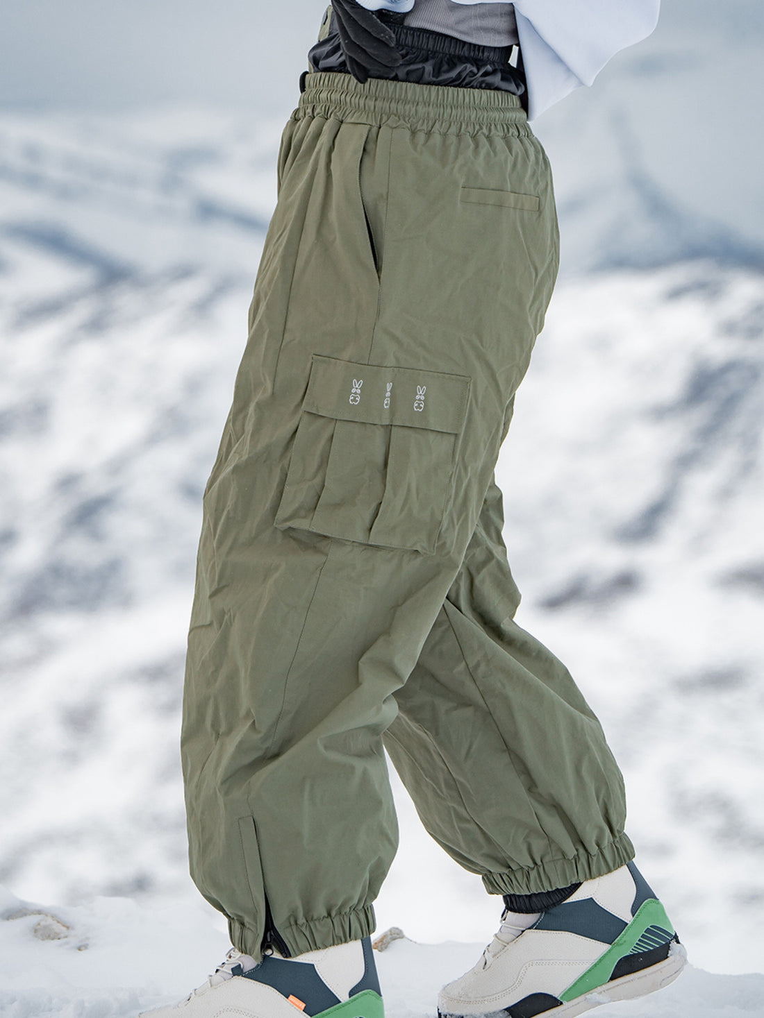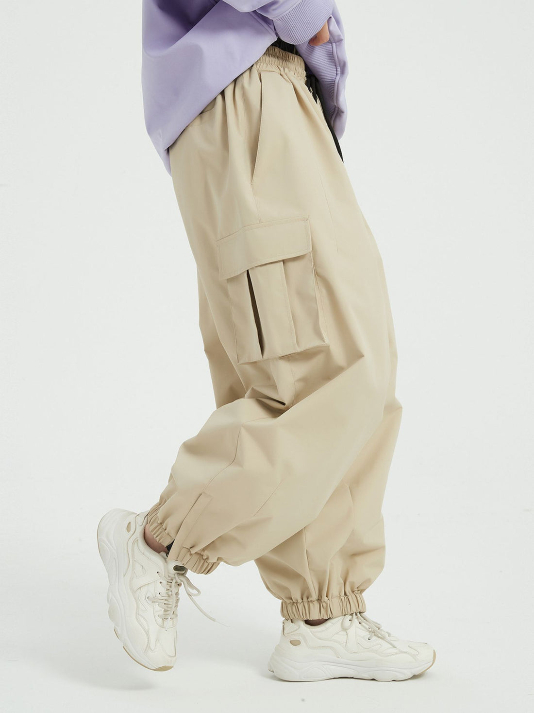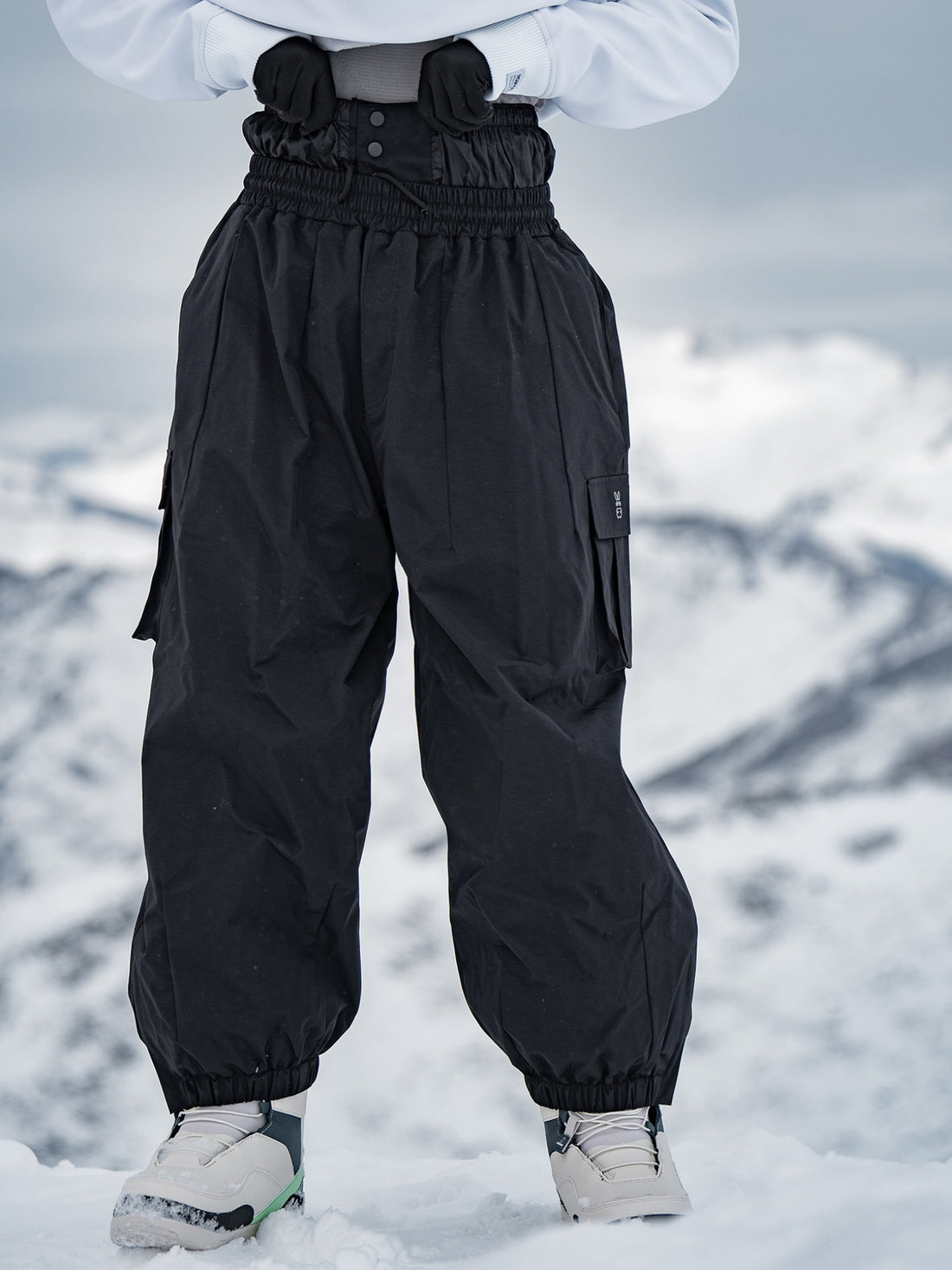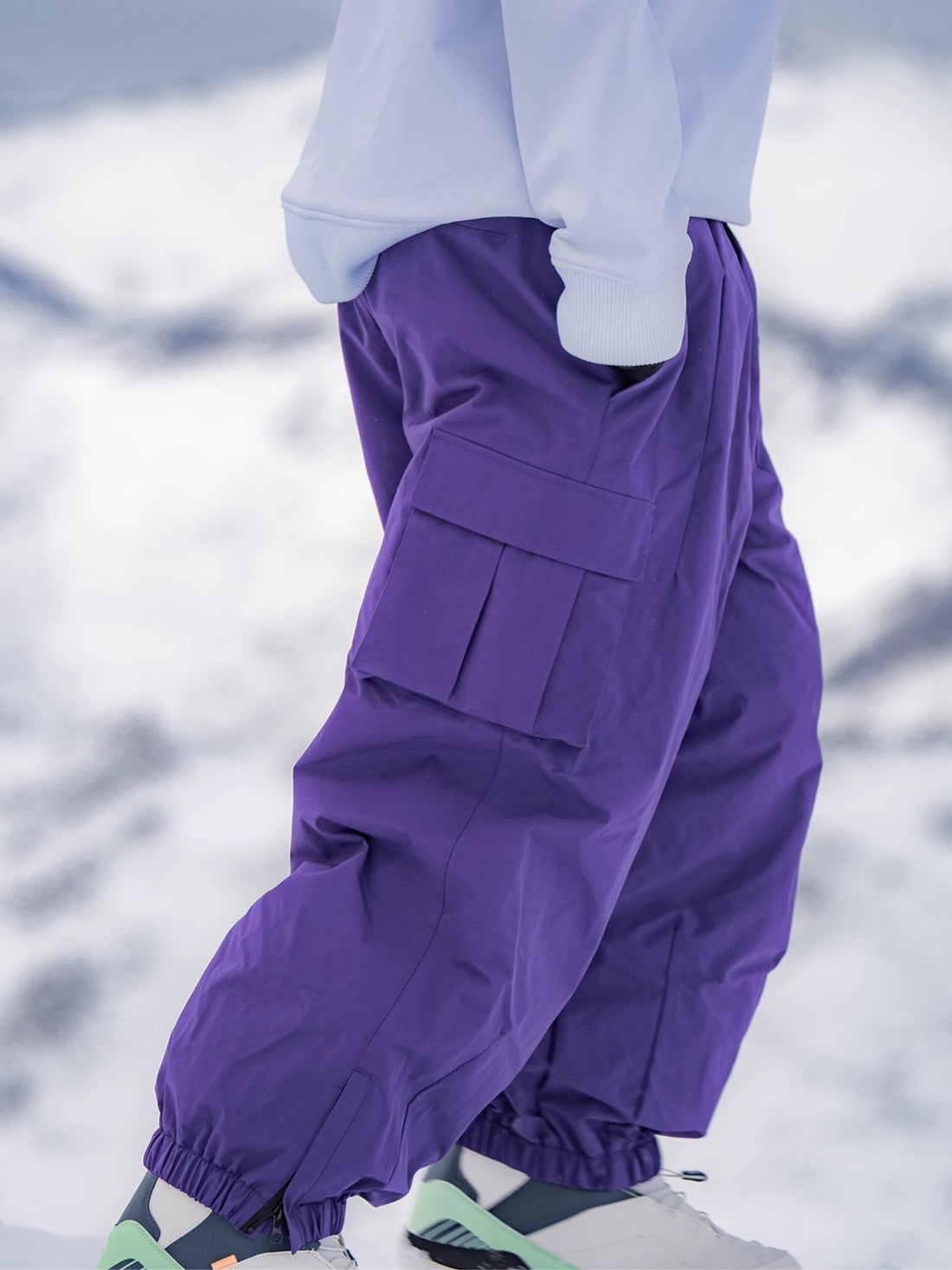 XwXwSeui Women Men Fleeced Cargo Loose Elastic Hem Waterproof Skiing Pants