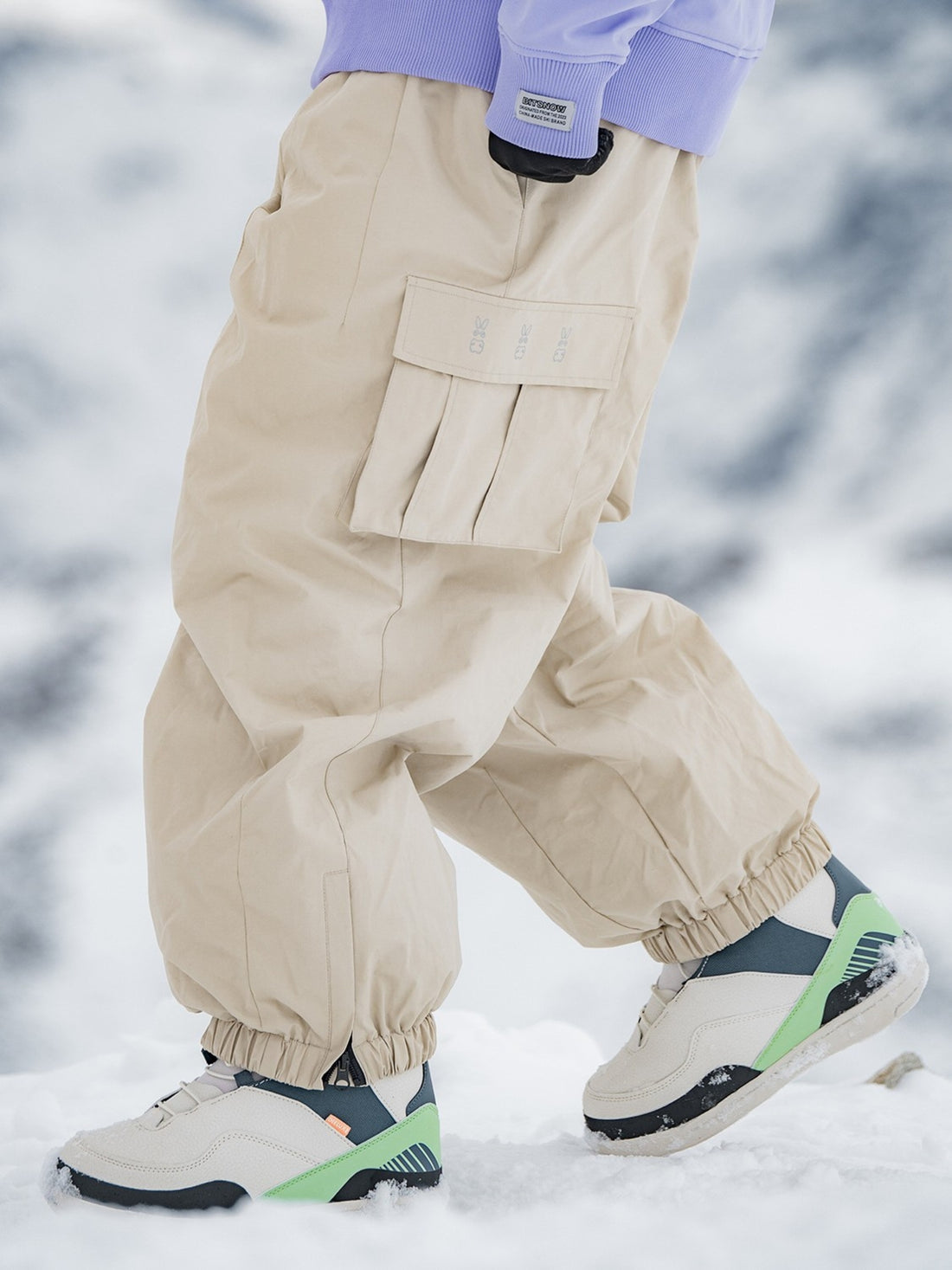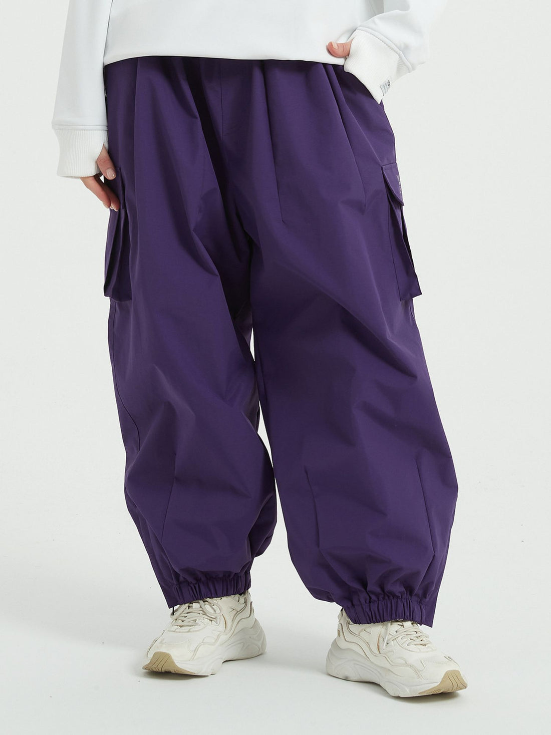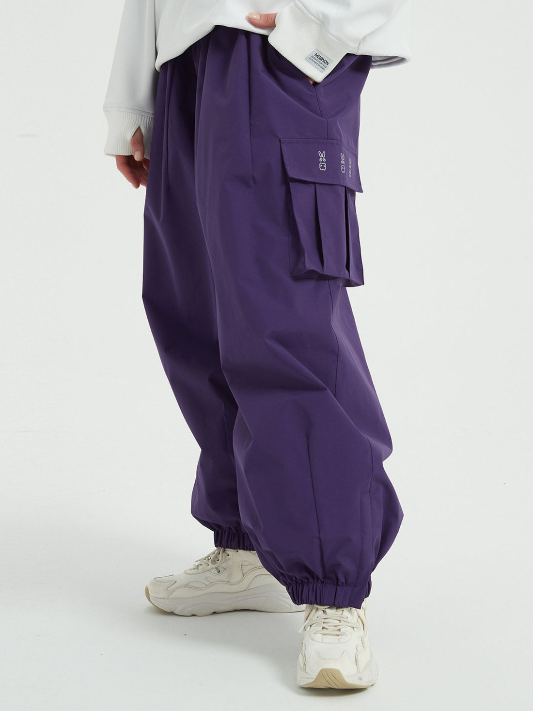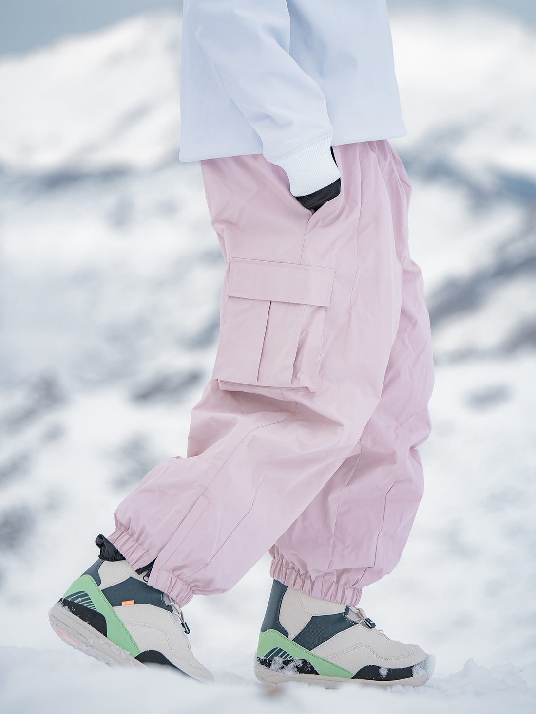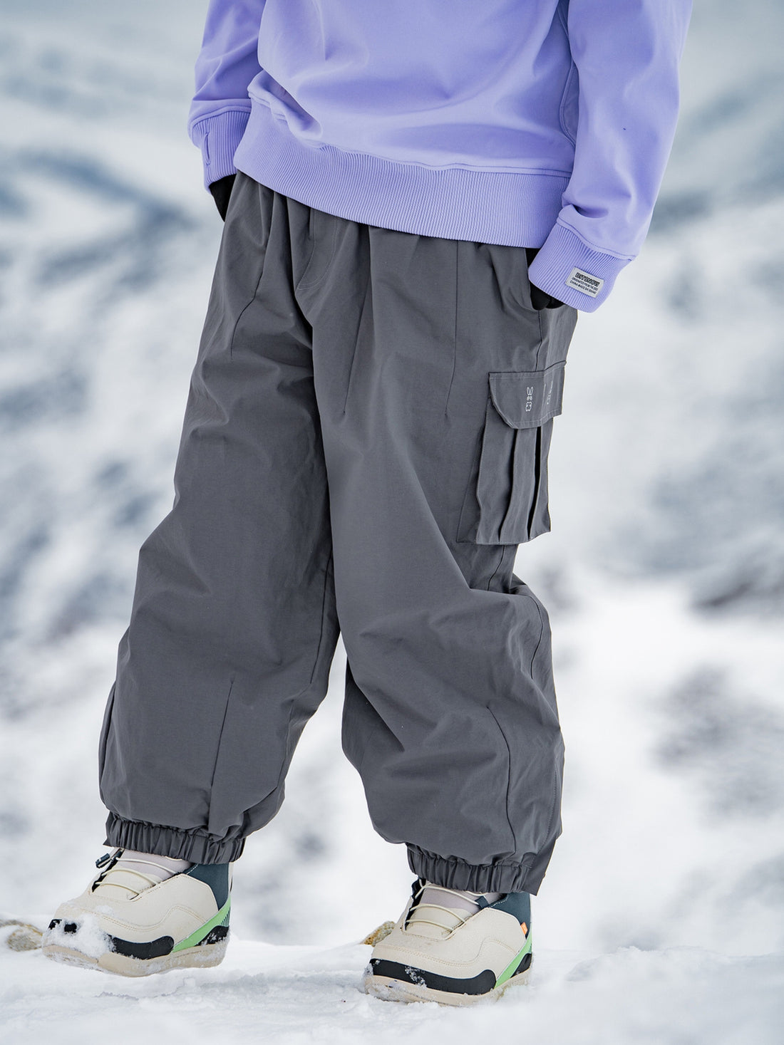 XwXwSeui Women Men Fleeced Cargo Loose Elastic Hem Waterproof Skiing Pants