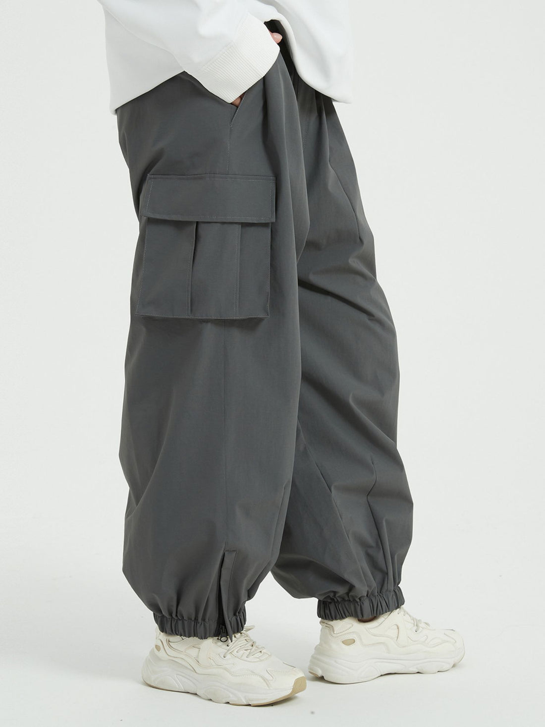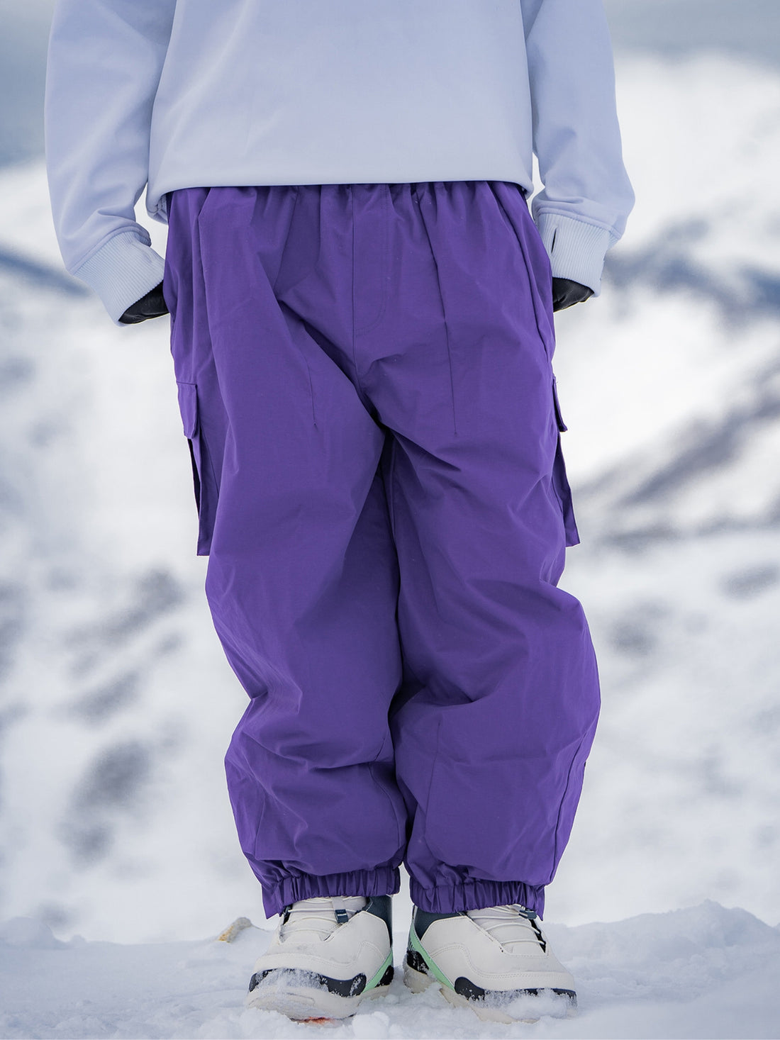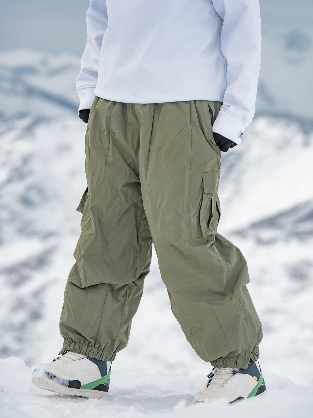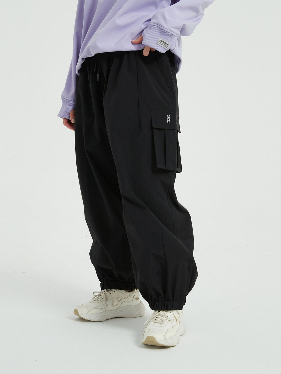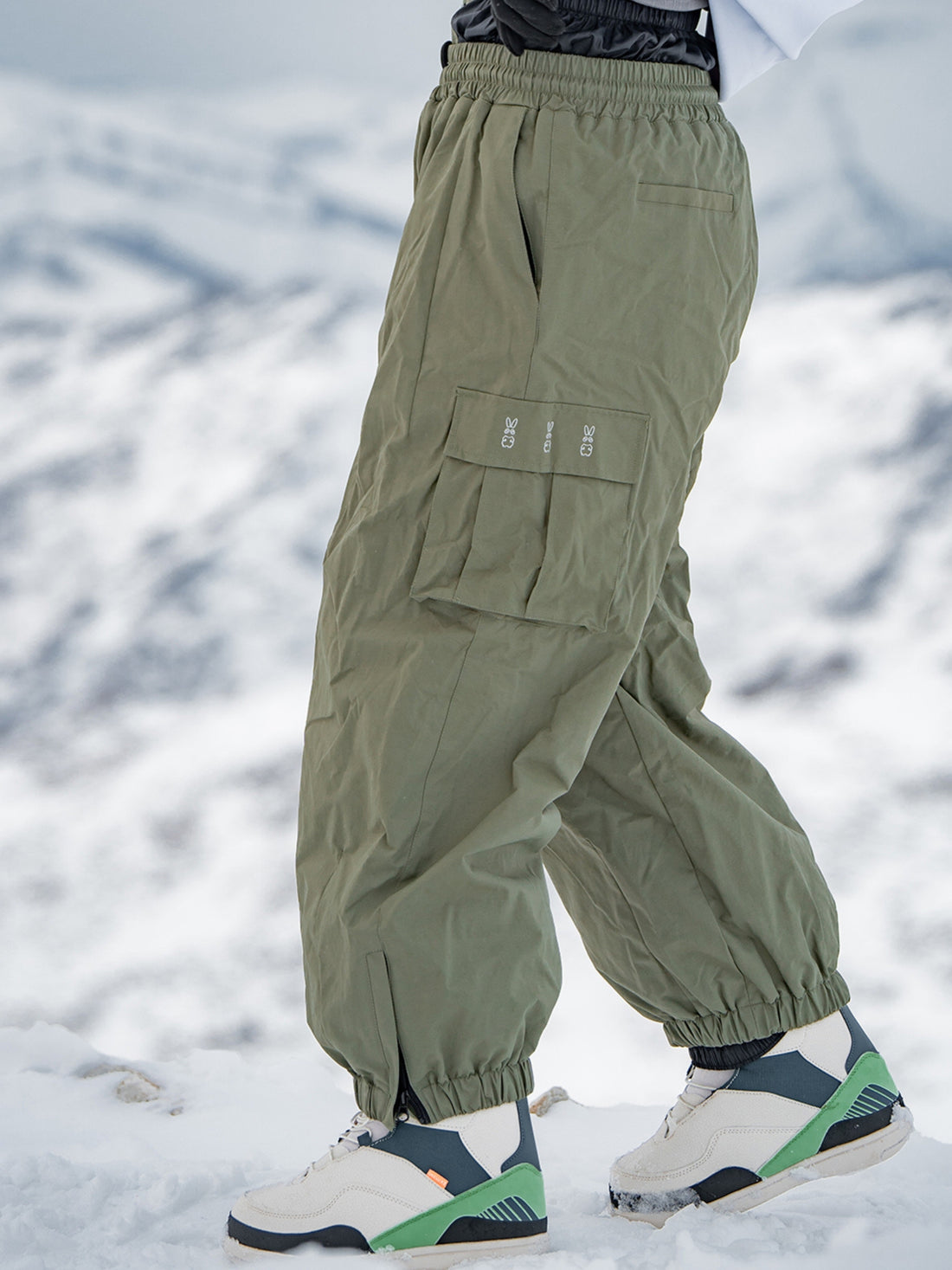 XwXwSeui Women Men Fleeced Cargo Loose Elastic Hem Waterproof Skiing Pants