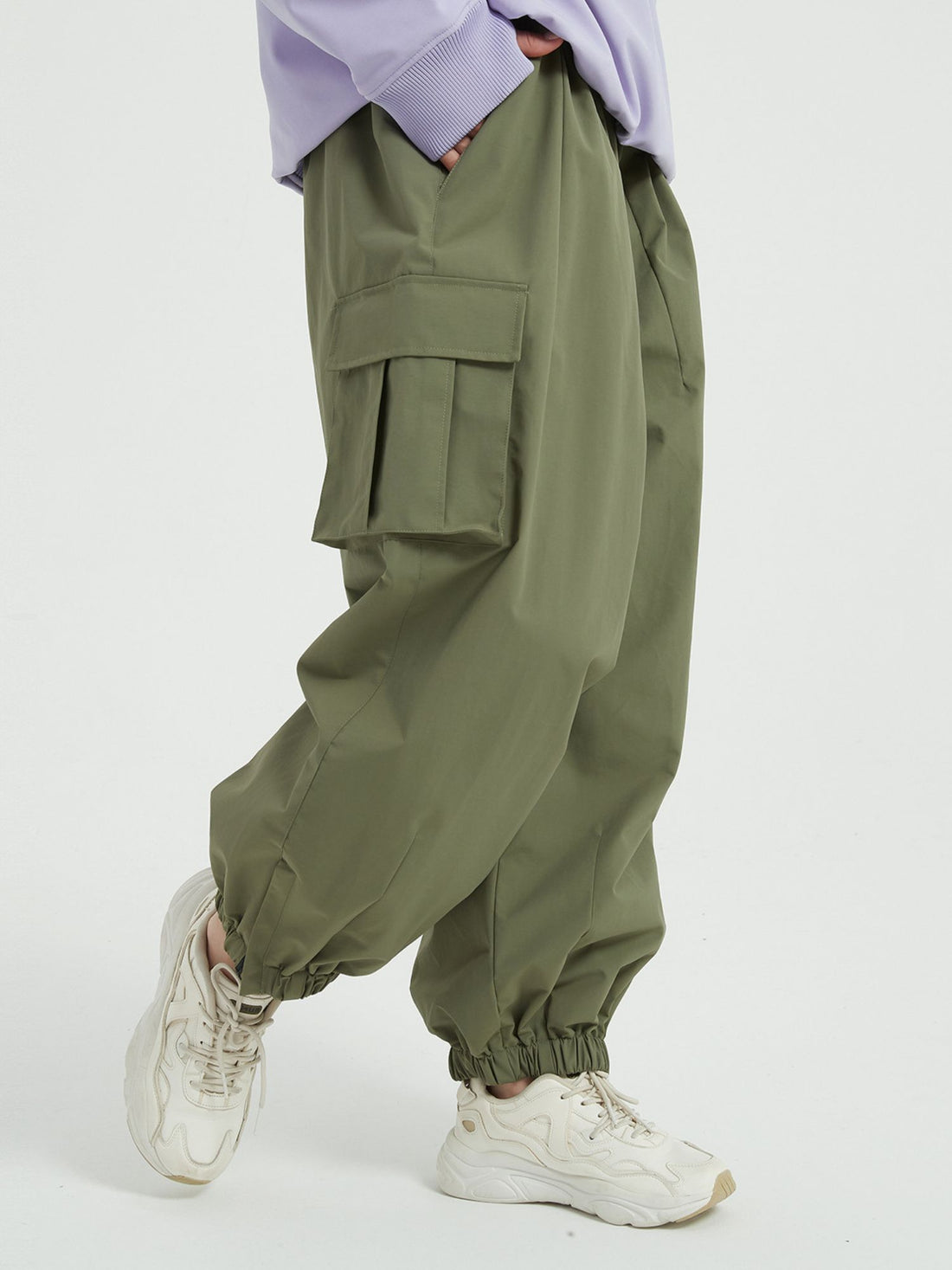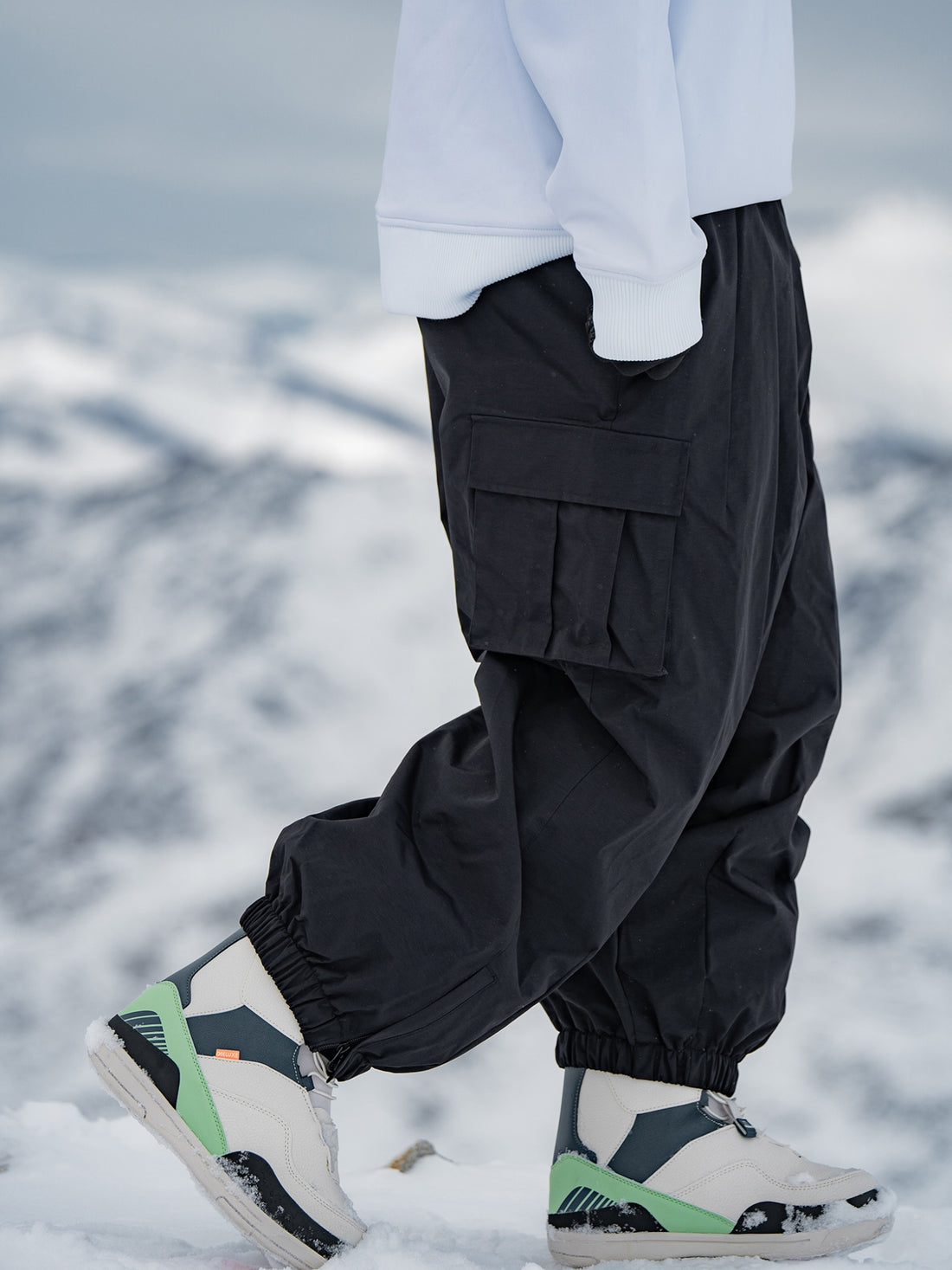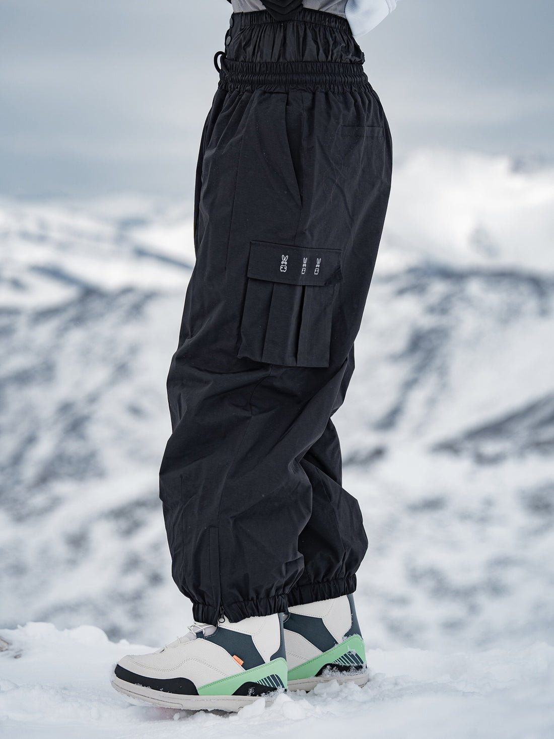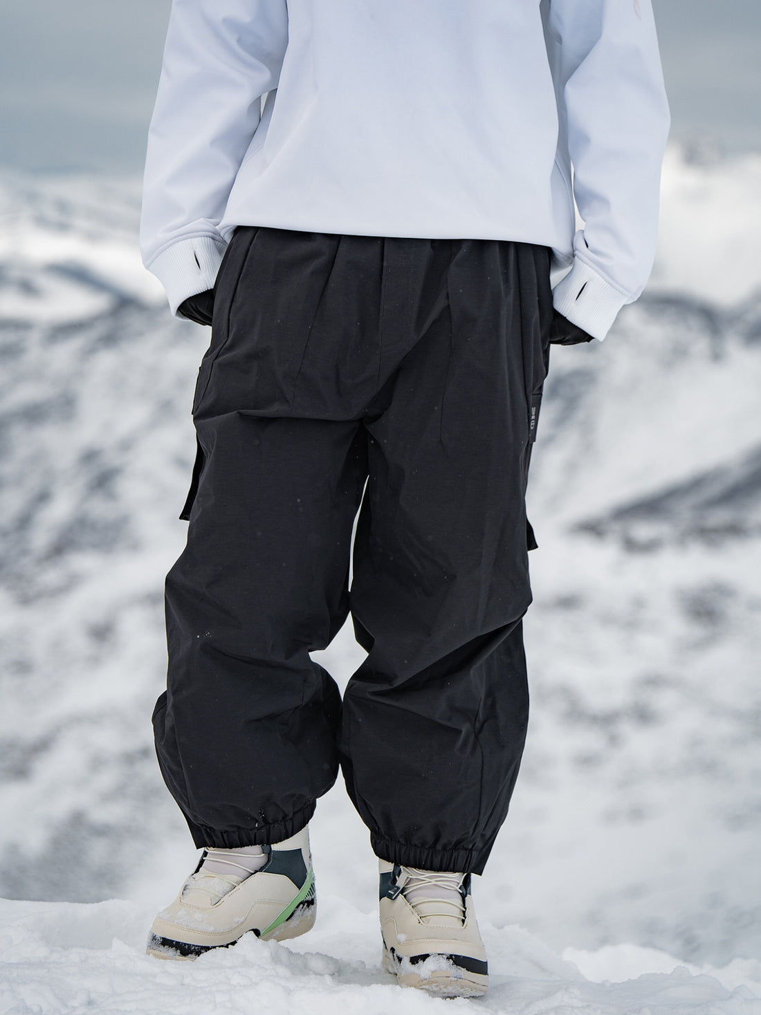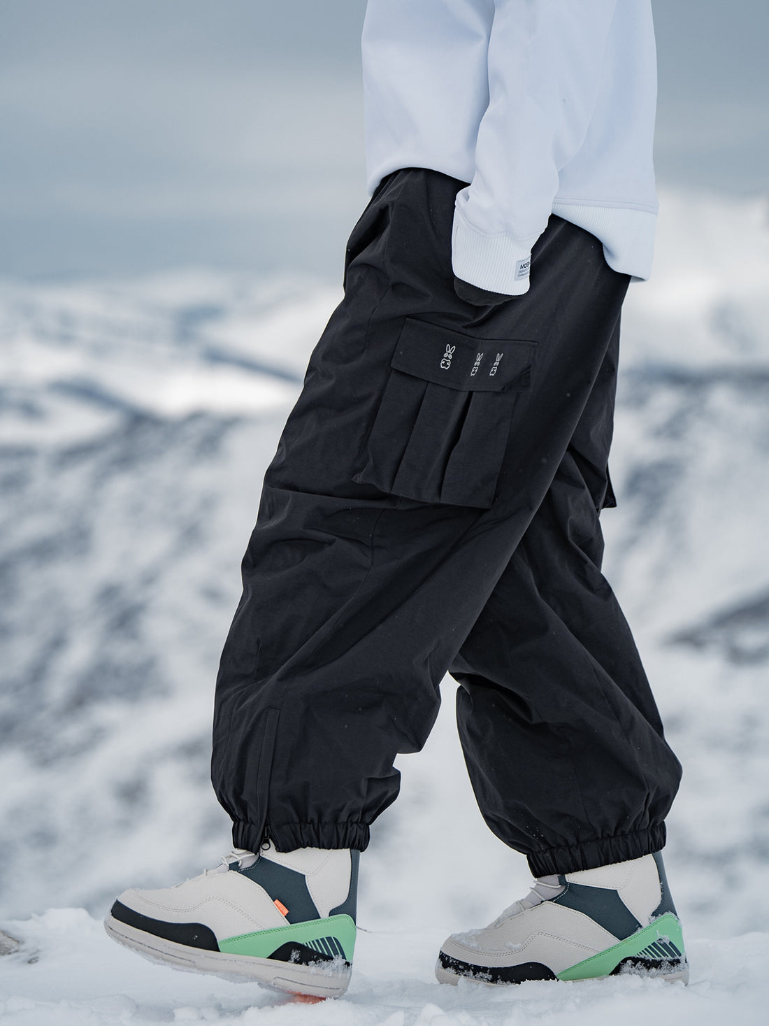 XwXwSeui Women Men Fleeced Cargo Loose Elastic Hem Waterproof Skiing Pants