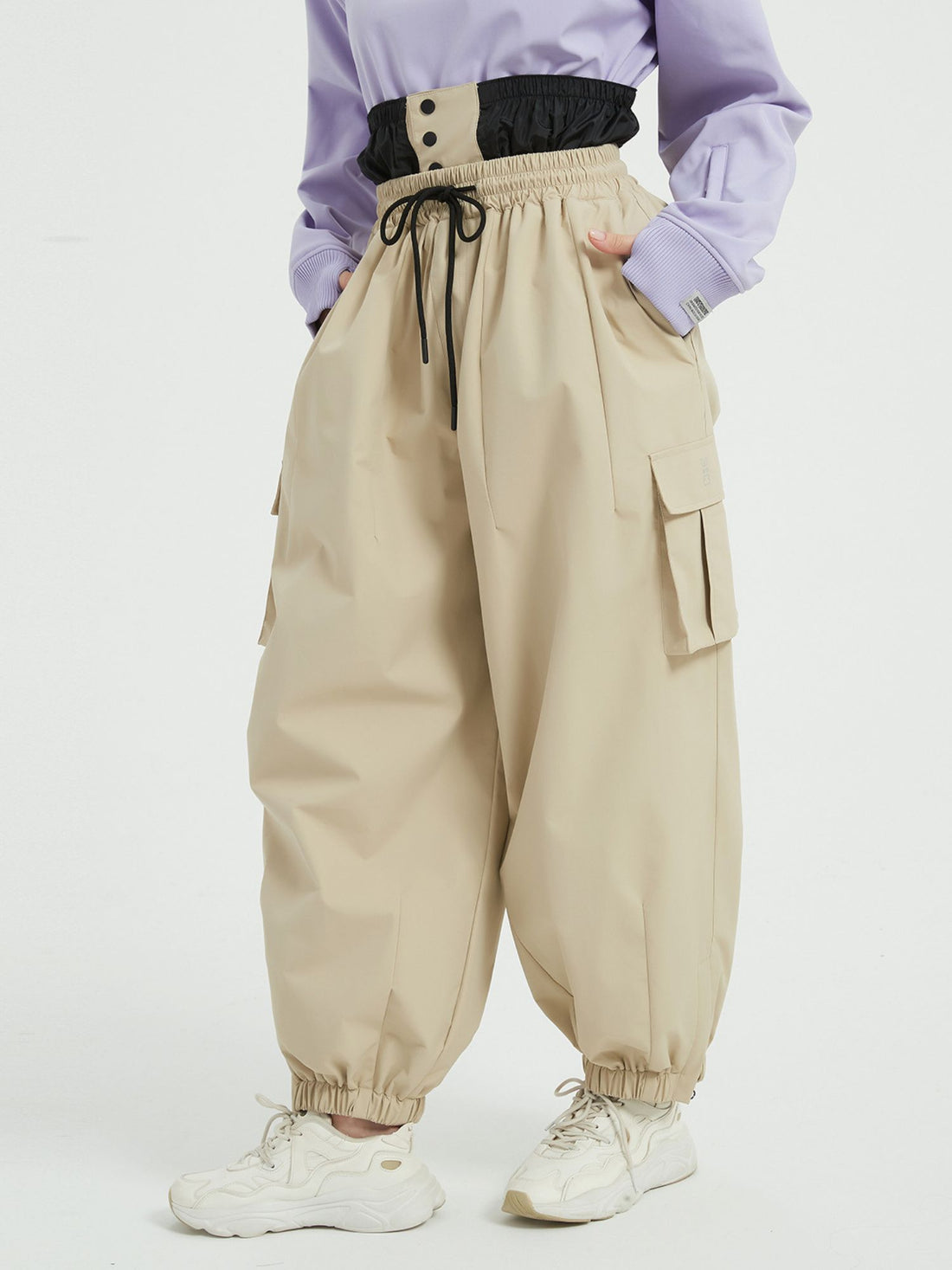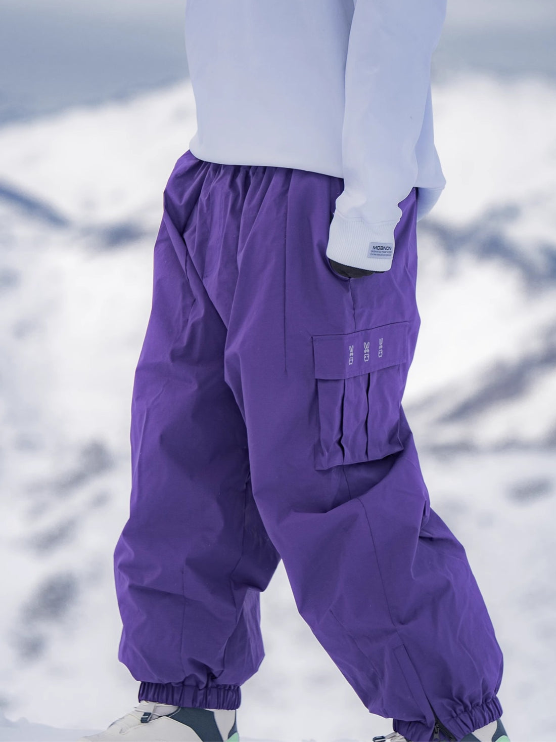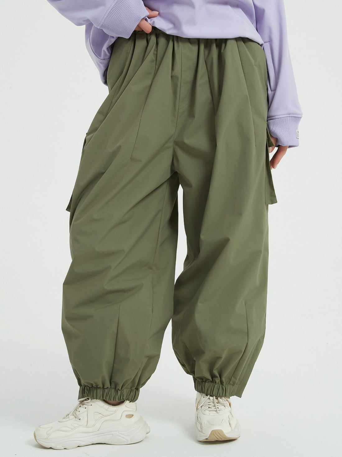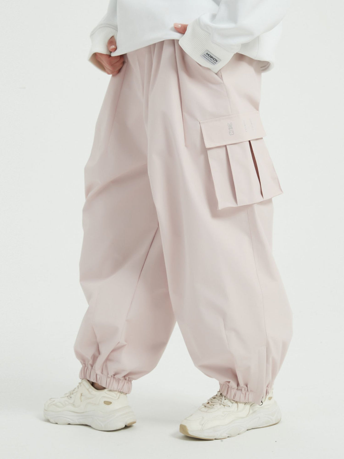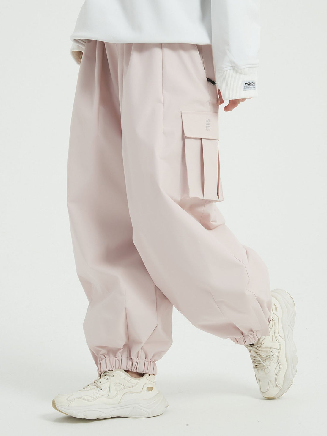 XwXwSeui Women Men Fleeced Cargo Loose Elastic Hem Waterproof Skiing Pants