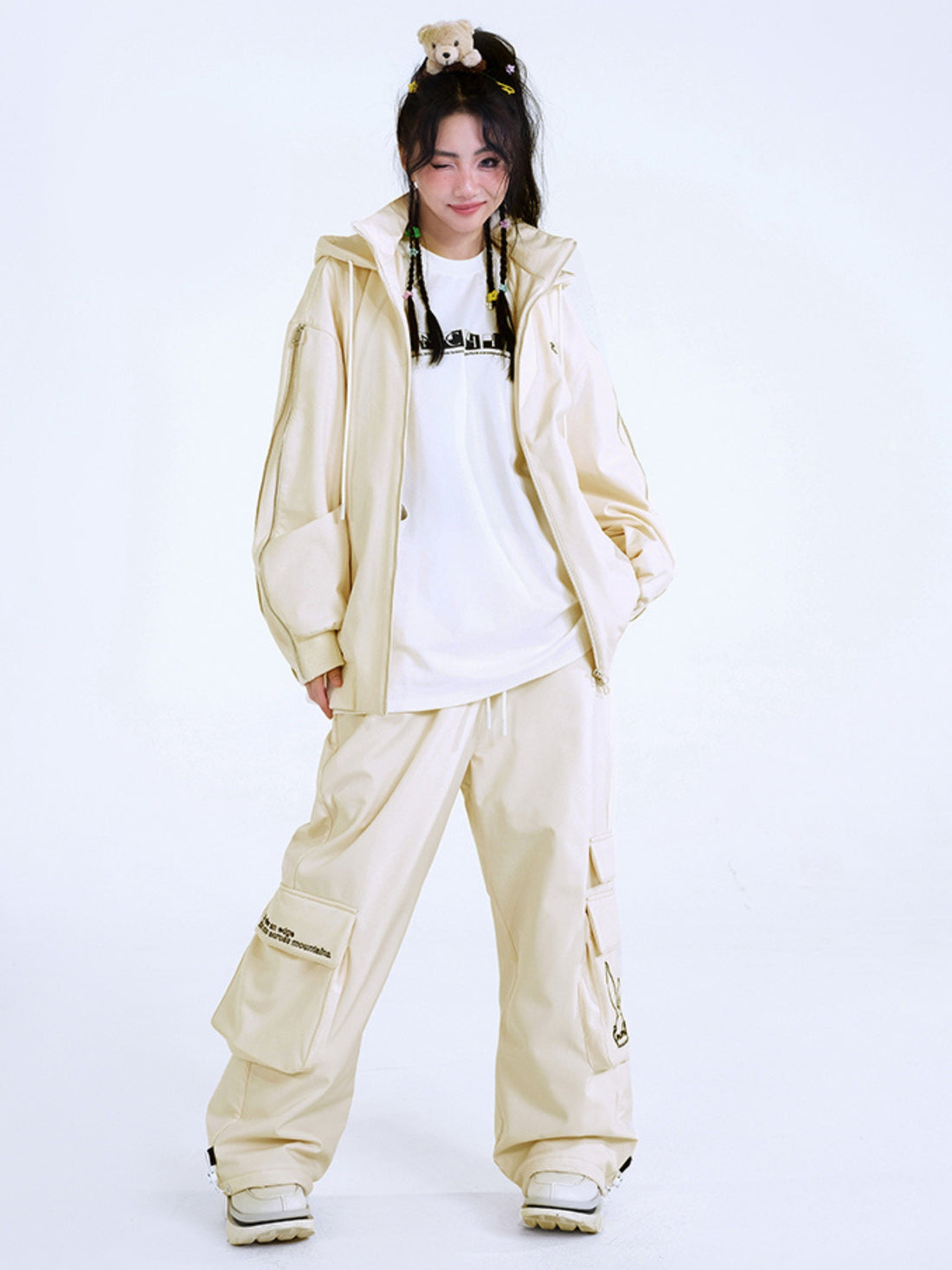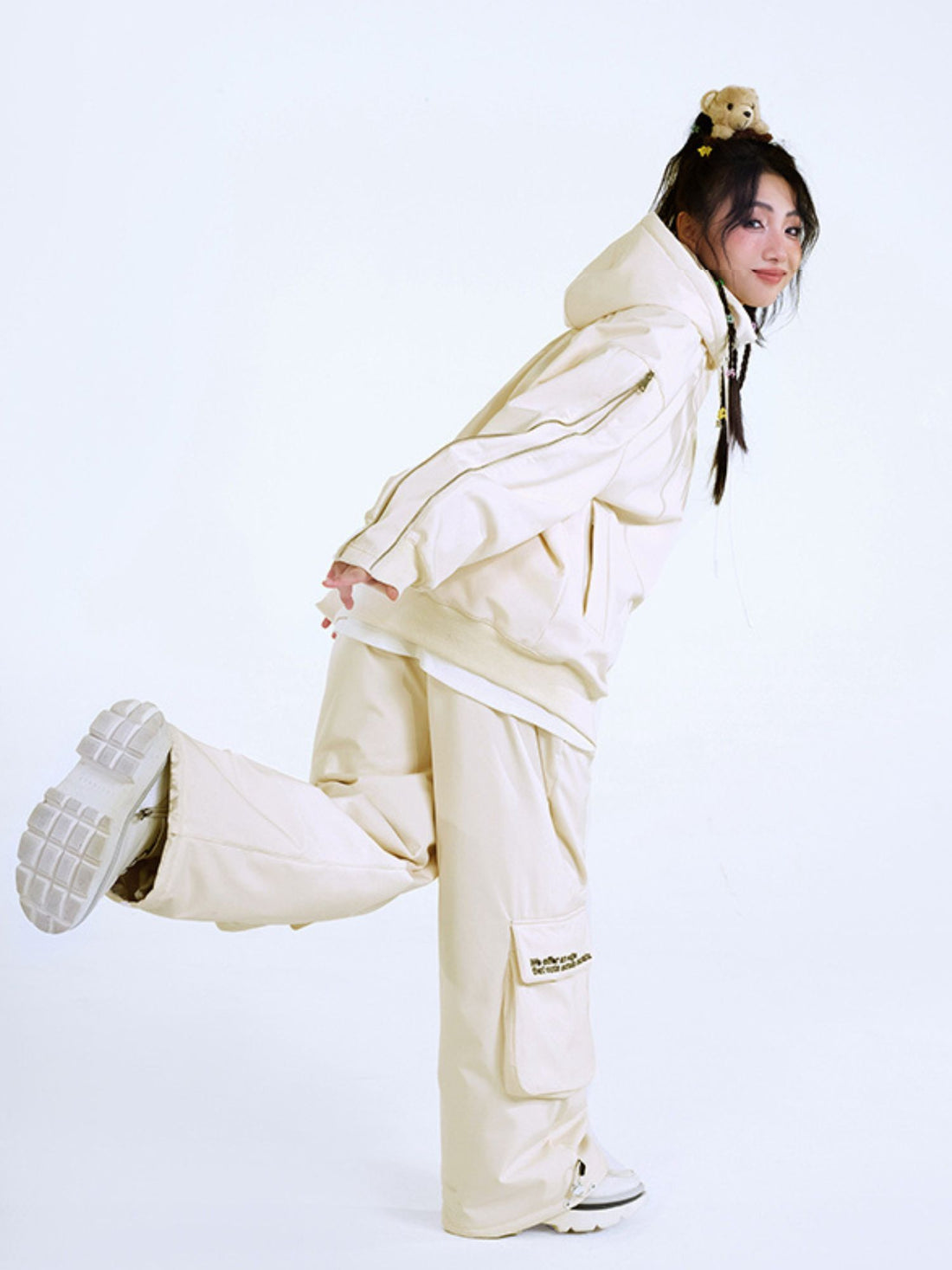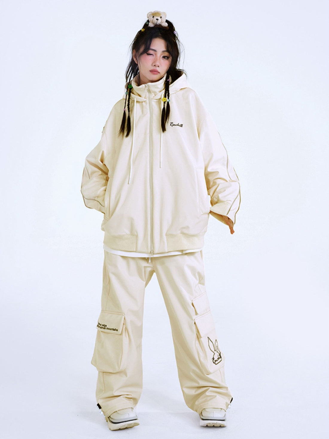 XwXwSeui Women Men Insulated Zipper Baggy Bunny 3L Cream Waterproof Ski Suit