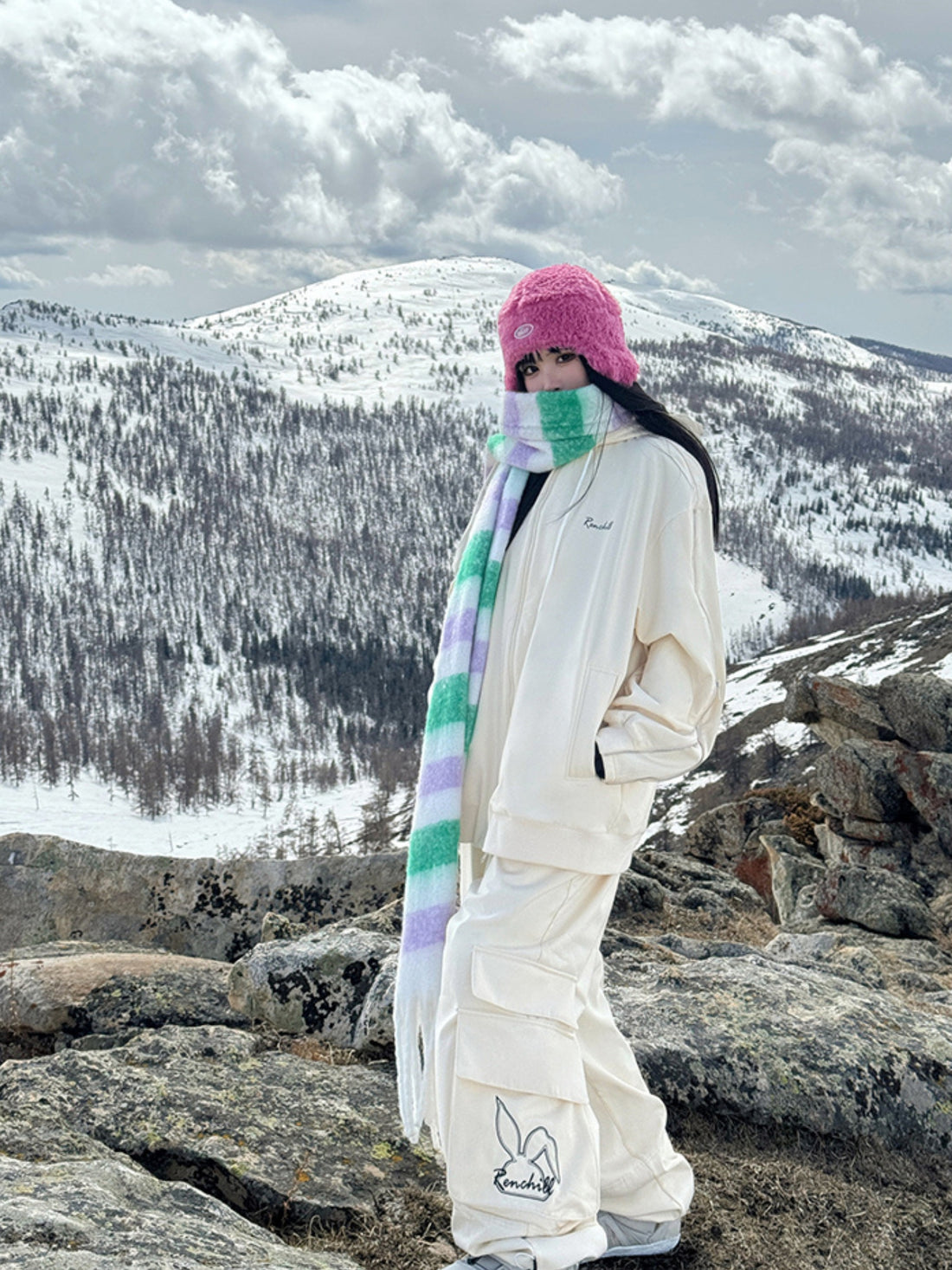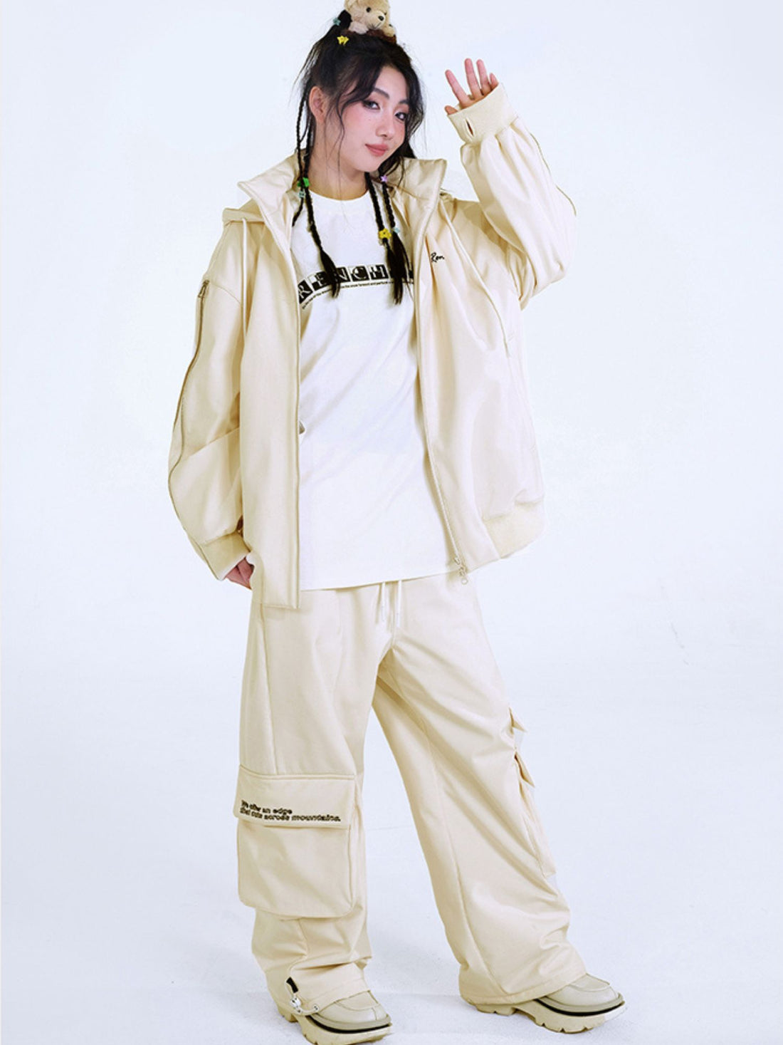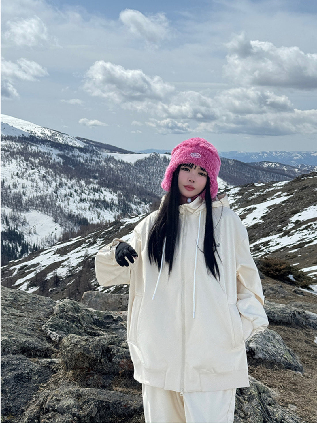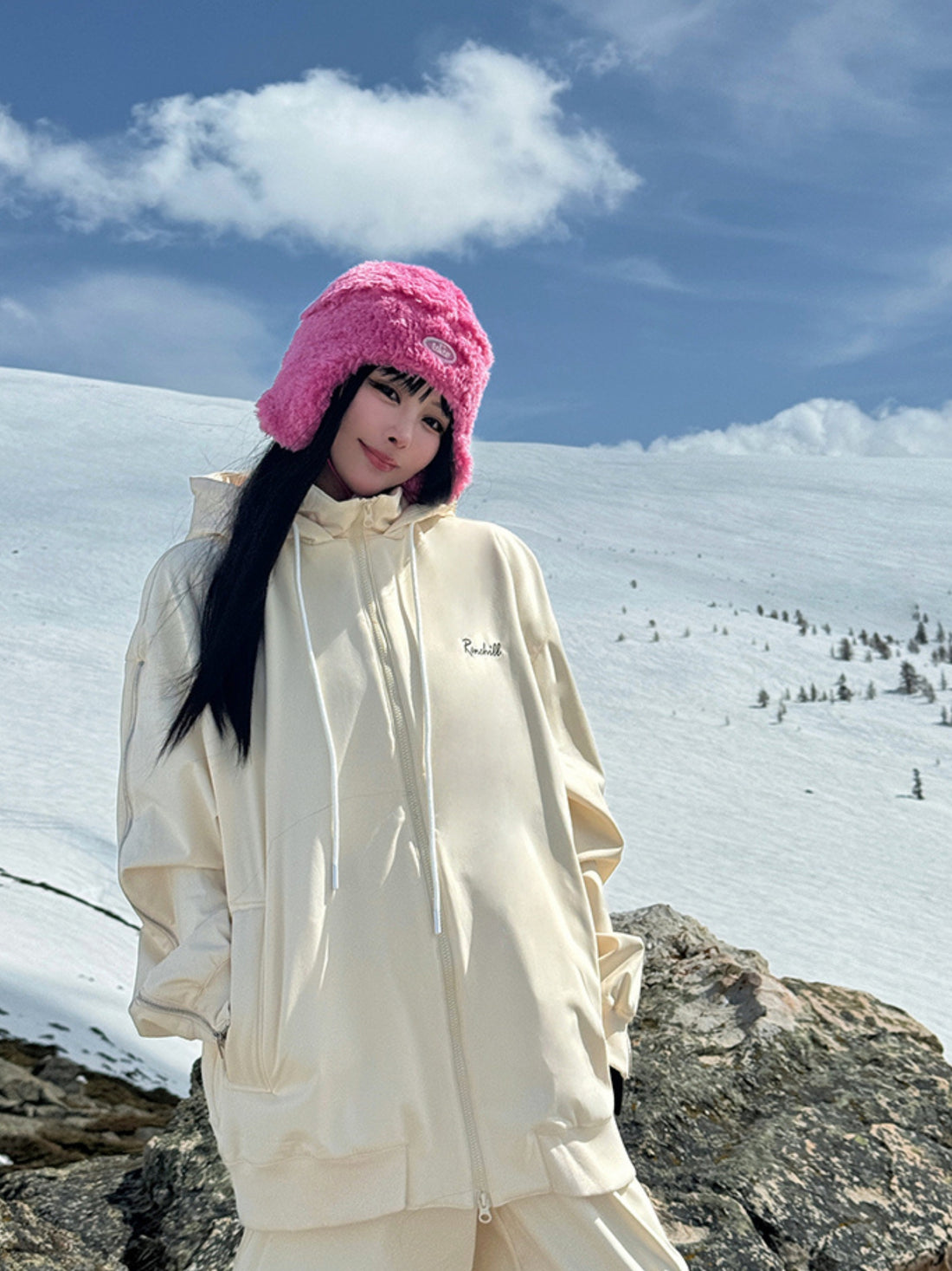 XwXwSeui Women Men Insulated Zipper Baggy Bunny 3L Cream Waterproof Ski Suit