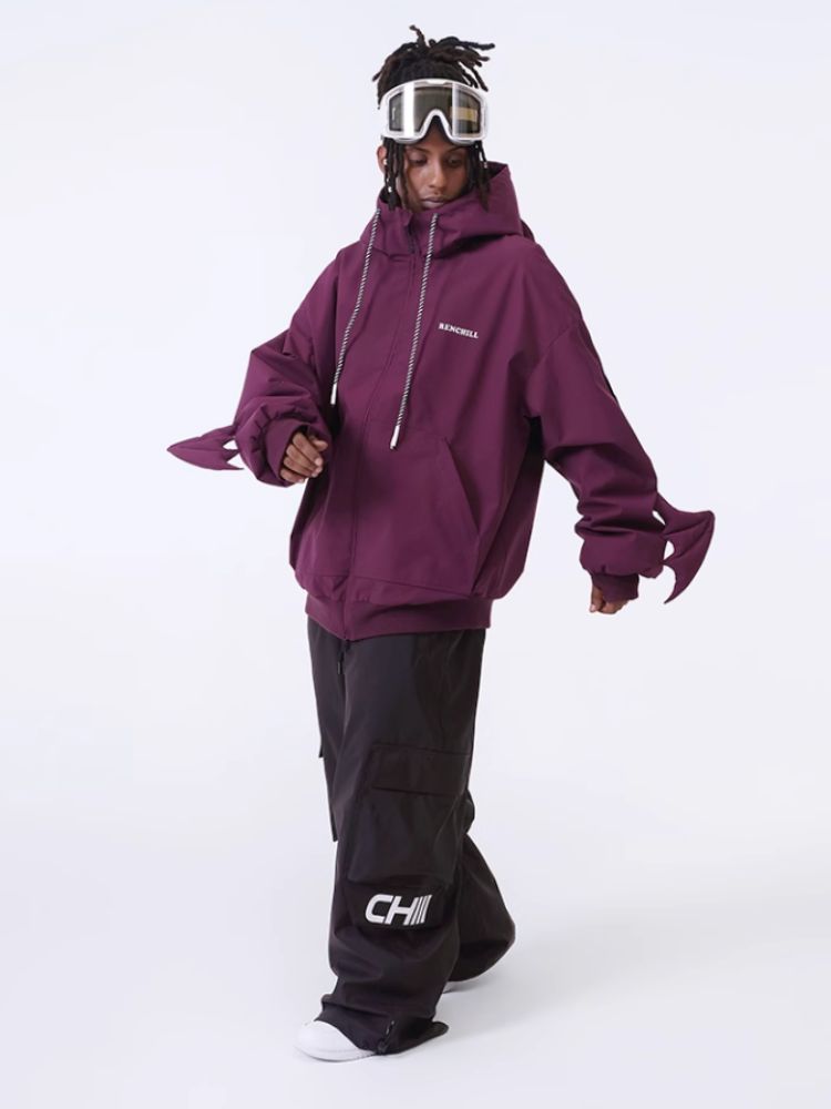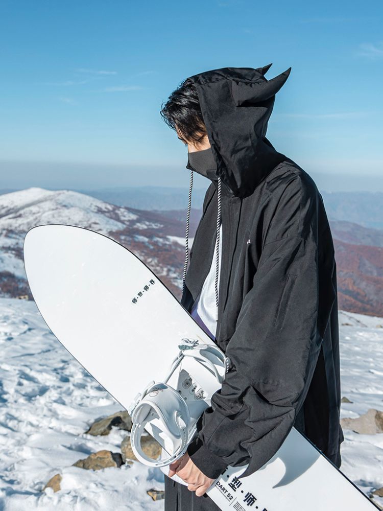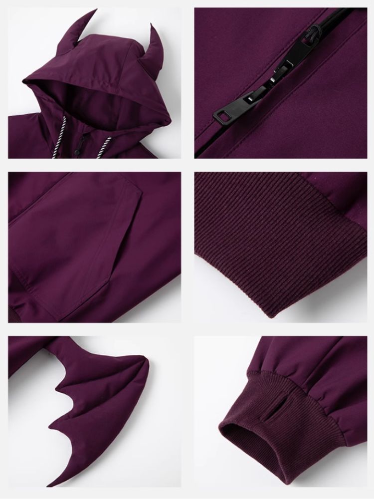XwXwSeui Women Men Little Devil Warm Wear-Resistant Waterproof Loose Veneer Snow Jacket