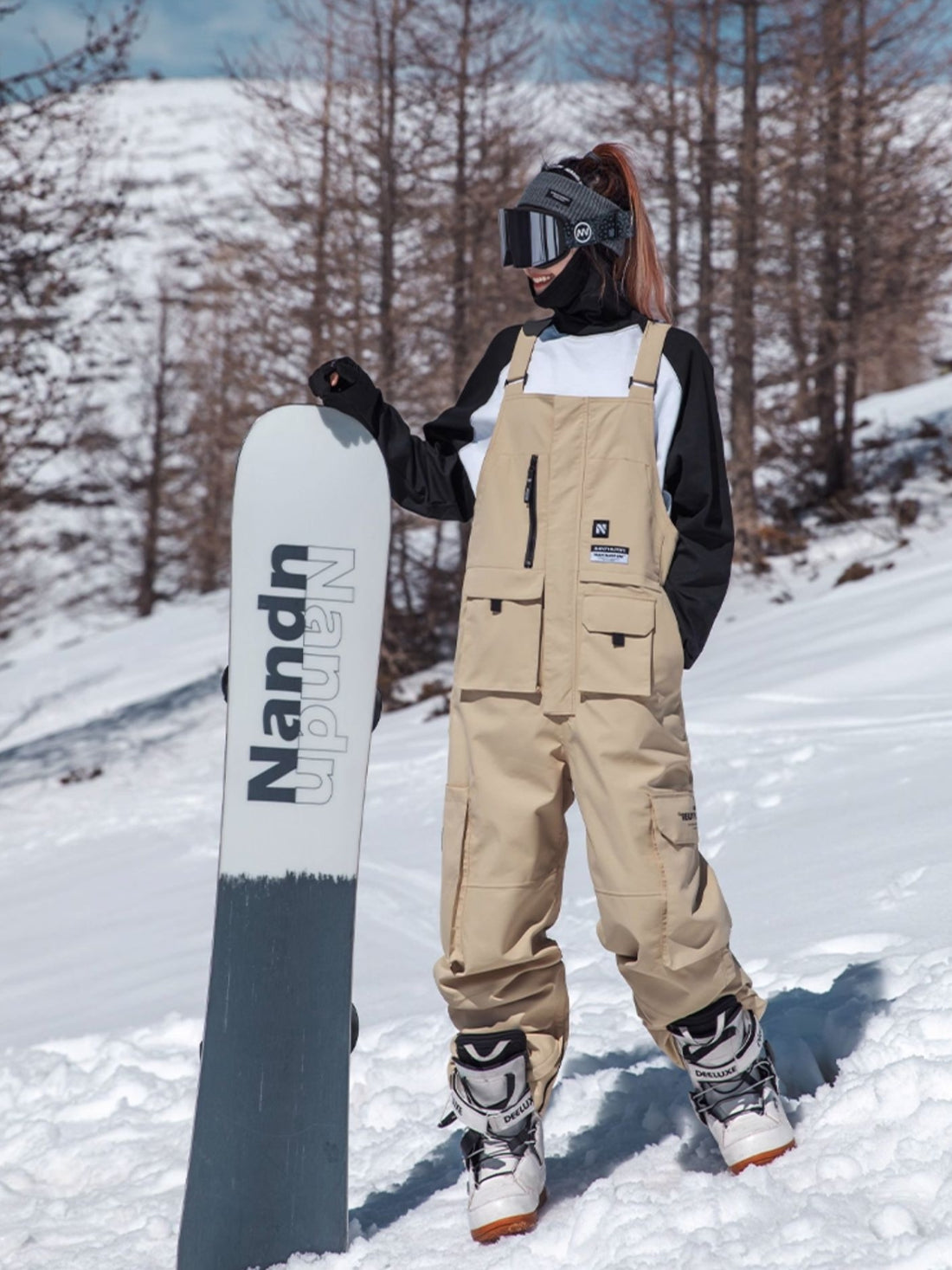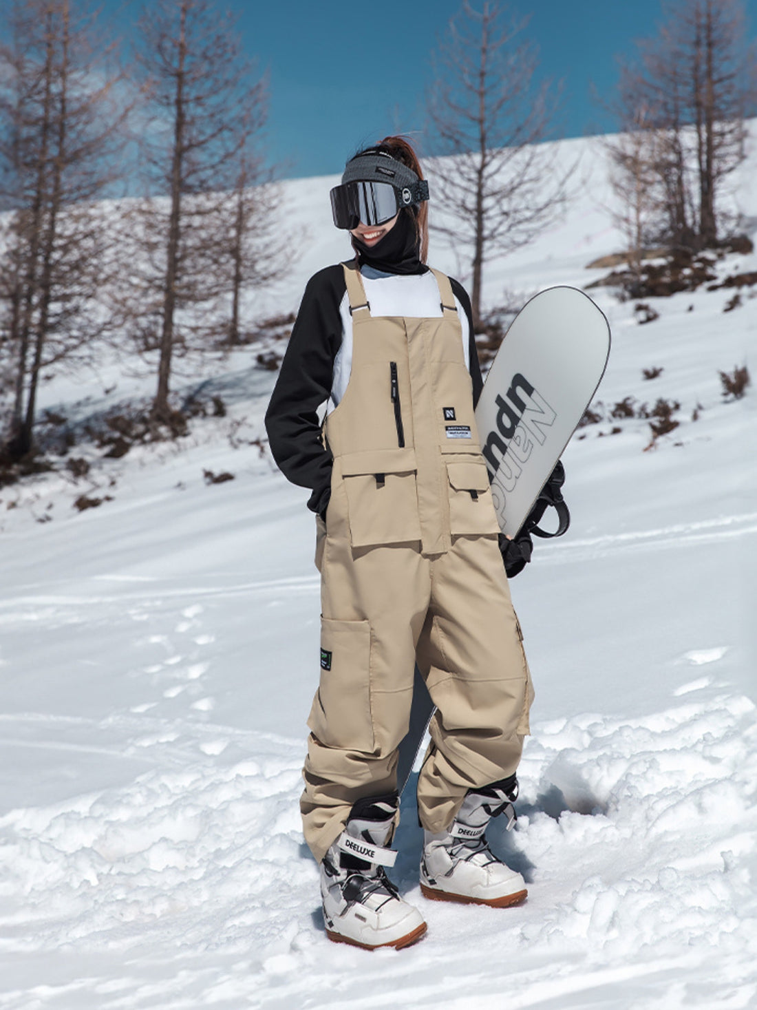 XwXwSeui Women Men Shell 3L Outdoor Waterproof Patchwork Chic Snowboard Bibs
