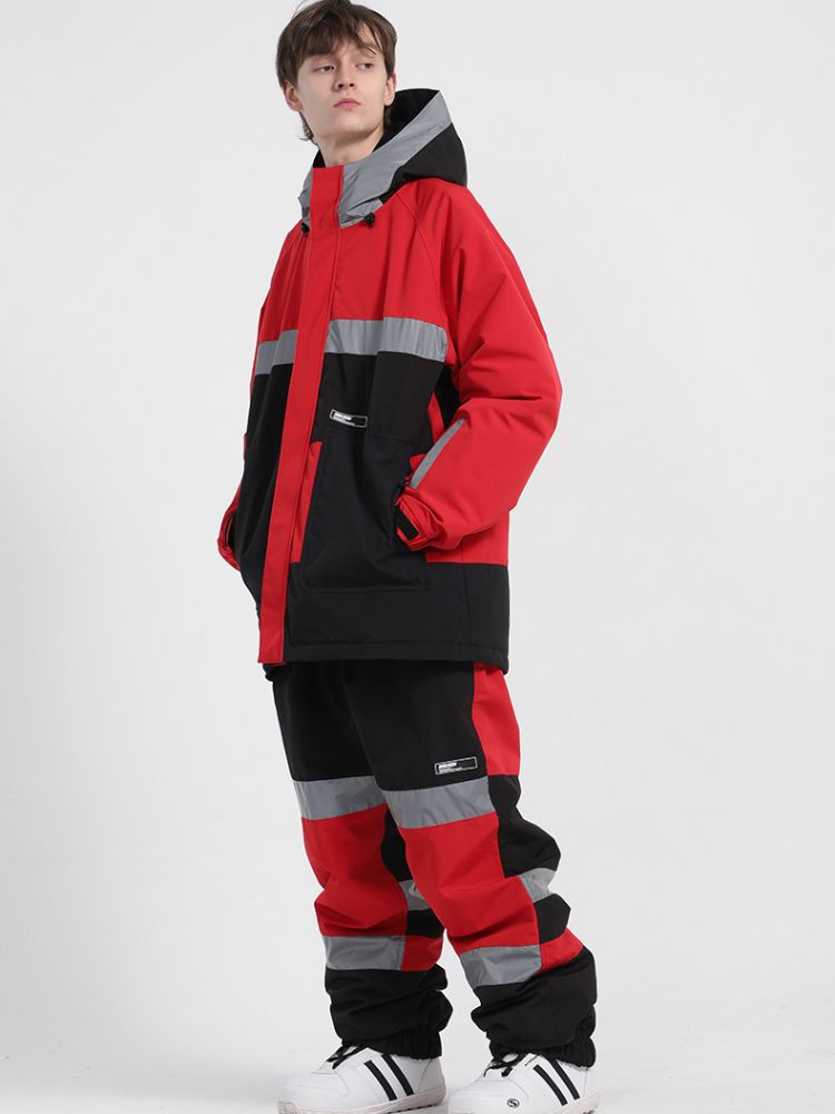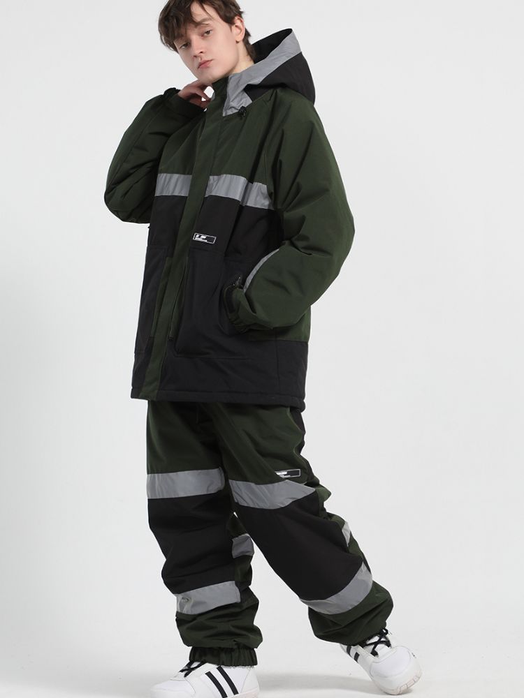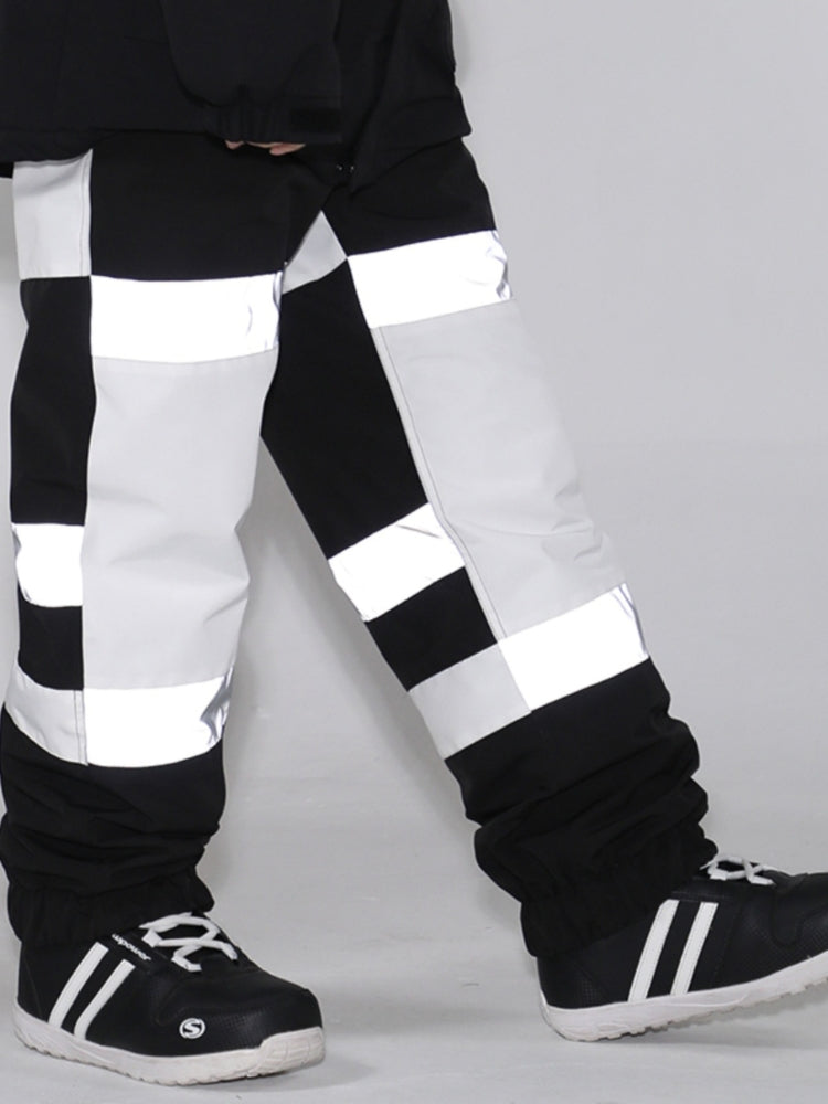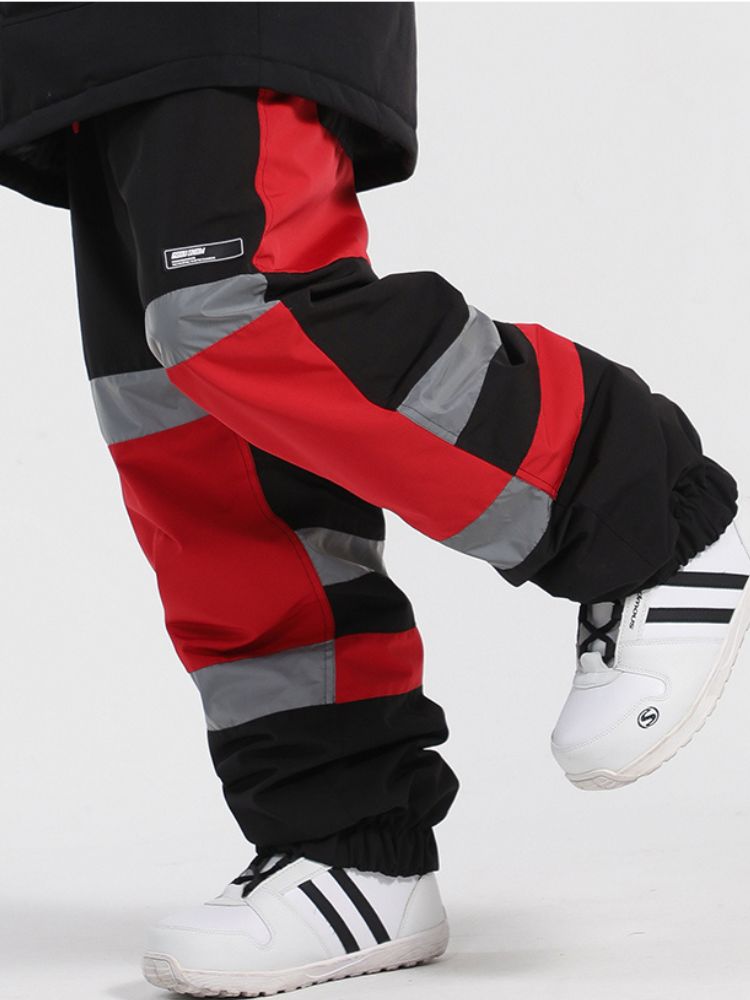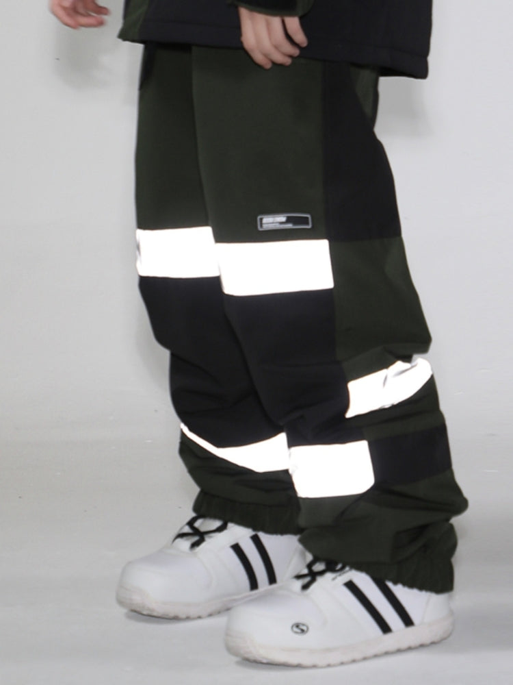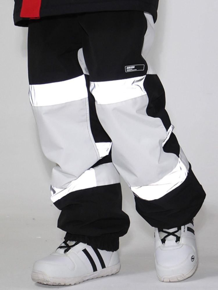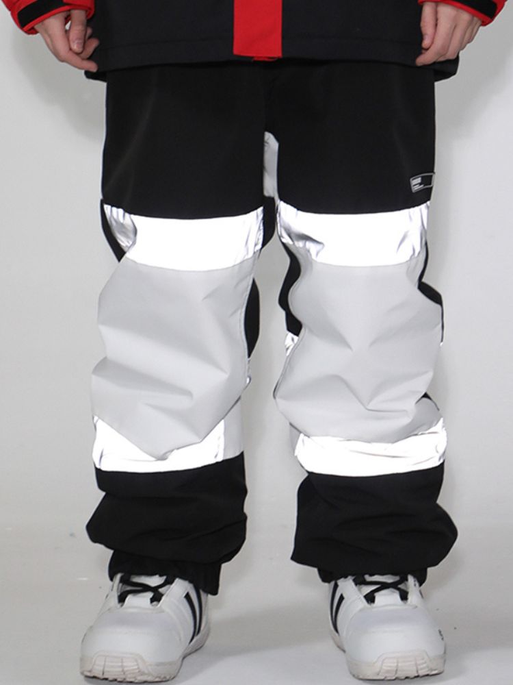 XwXwSeui Womens and Mens Fleeced Outdoor Reflective Baggy Elastic Snowboard Pants