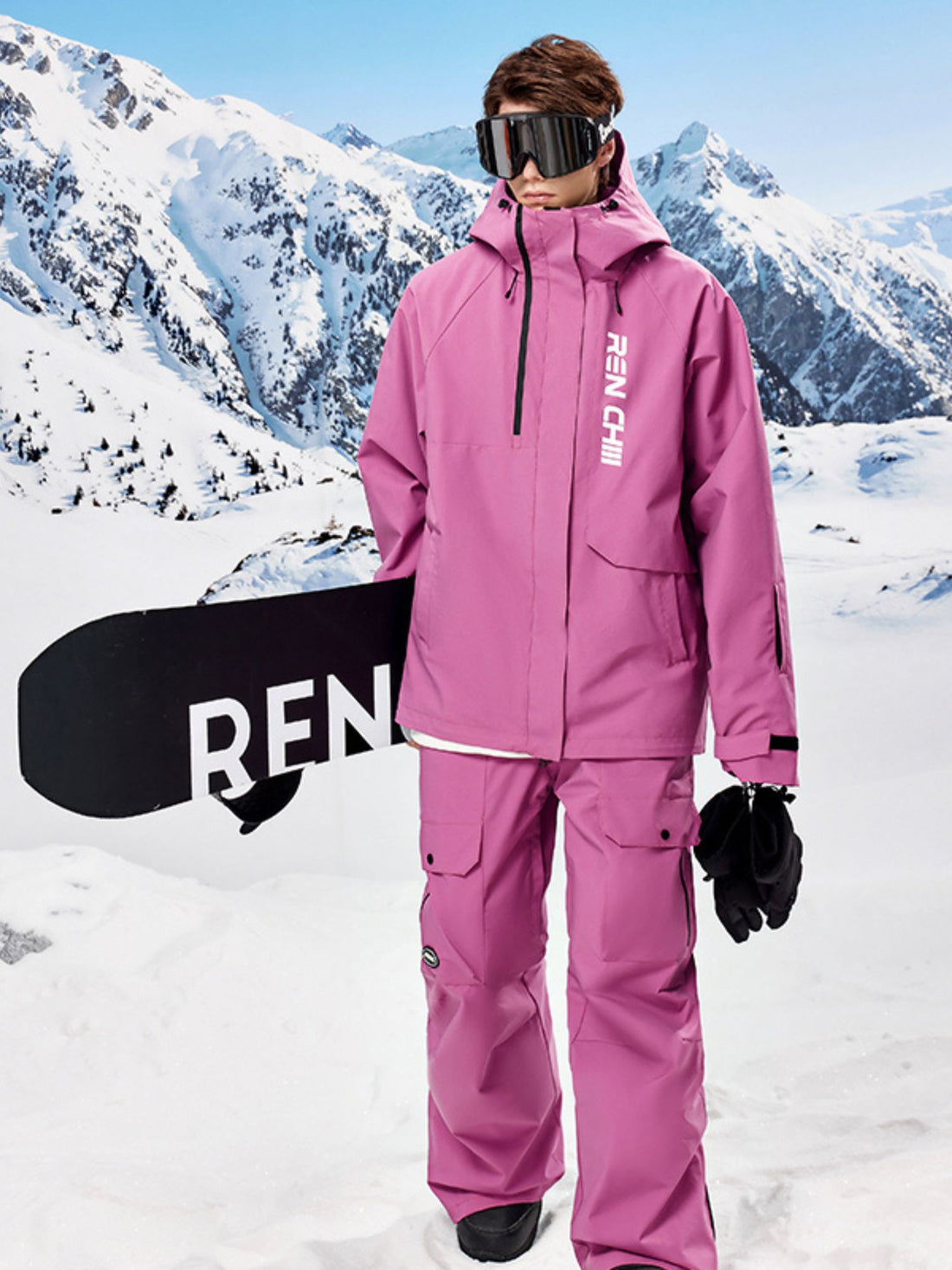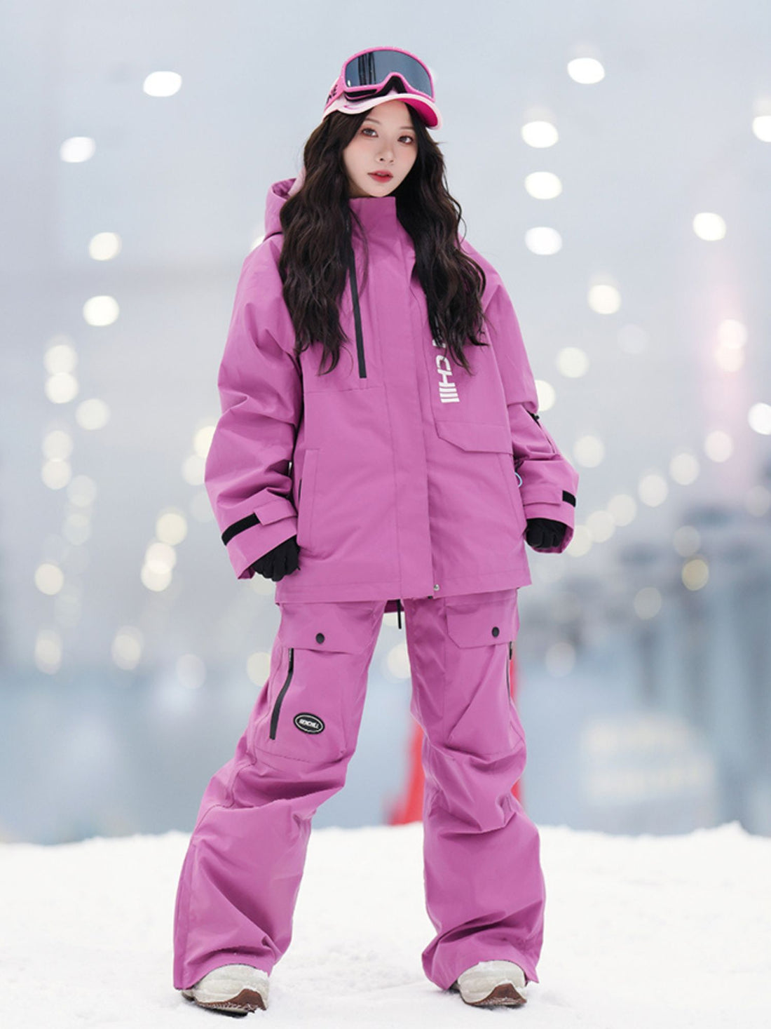 XwXwSeui Womens and Mens Fleeced Waterproof Hooded Solid 3L Baggy Snow Pants