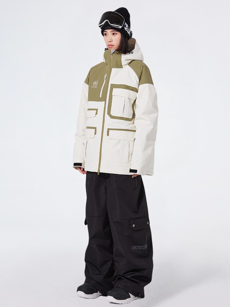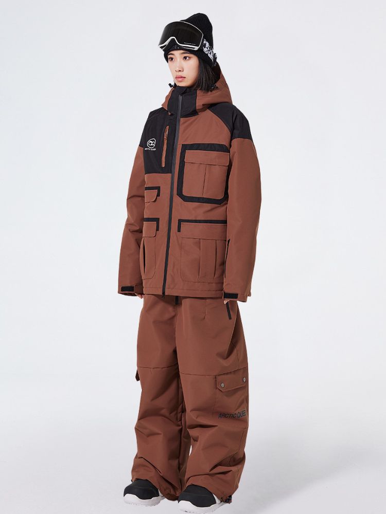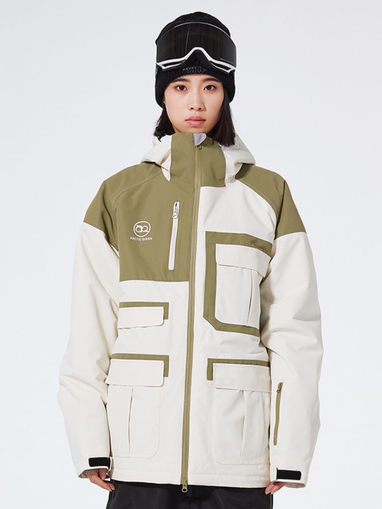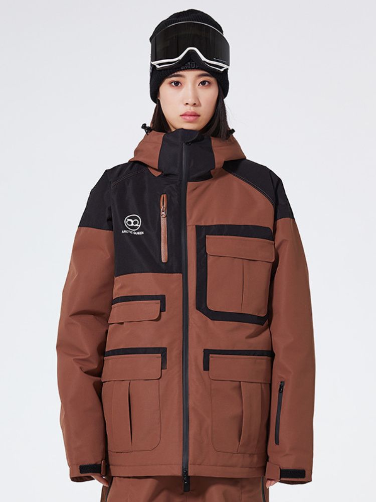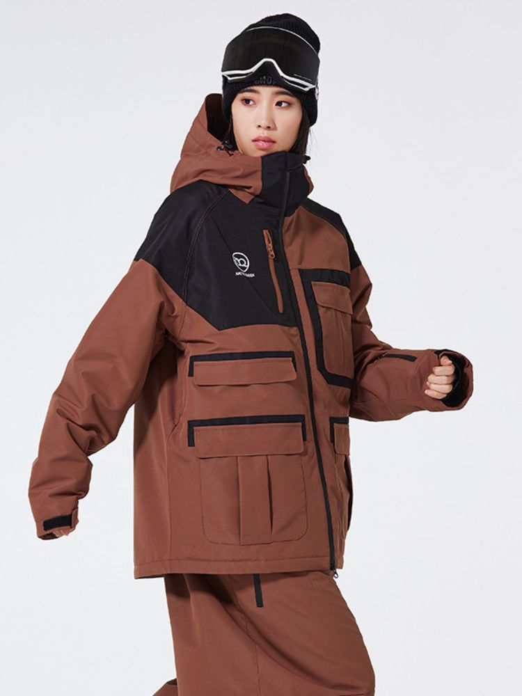 XwXwSeui Womens and Mens Insulated Hooded Outdoor Patchwork Cargo Skiing Coats