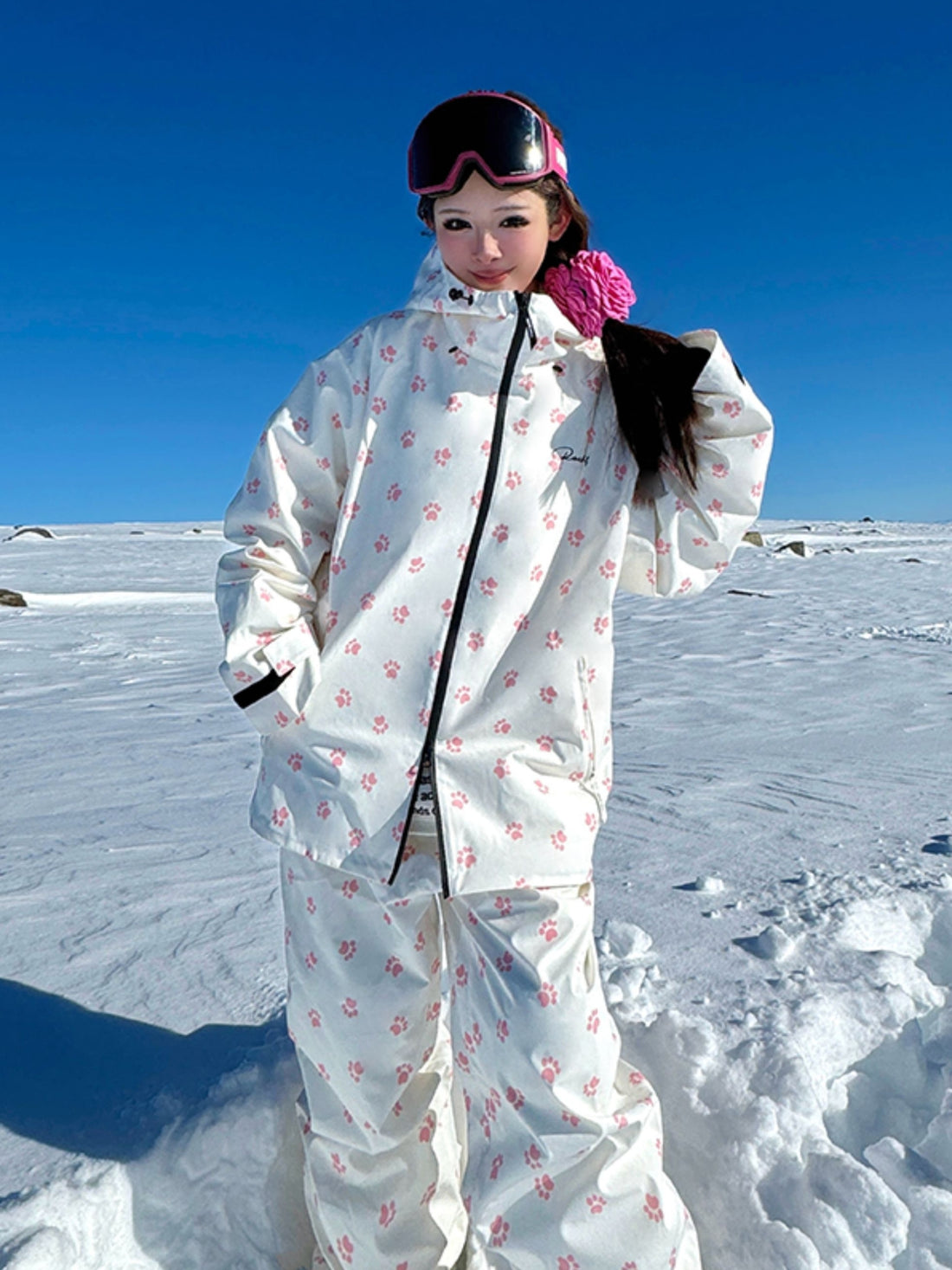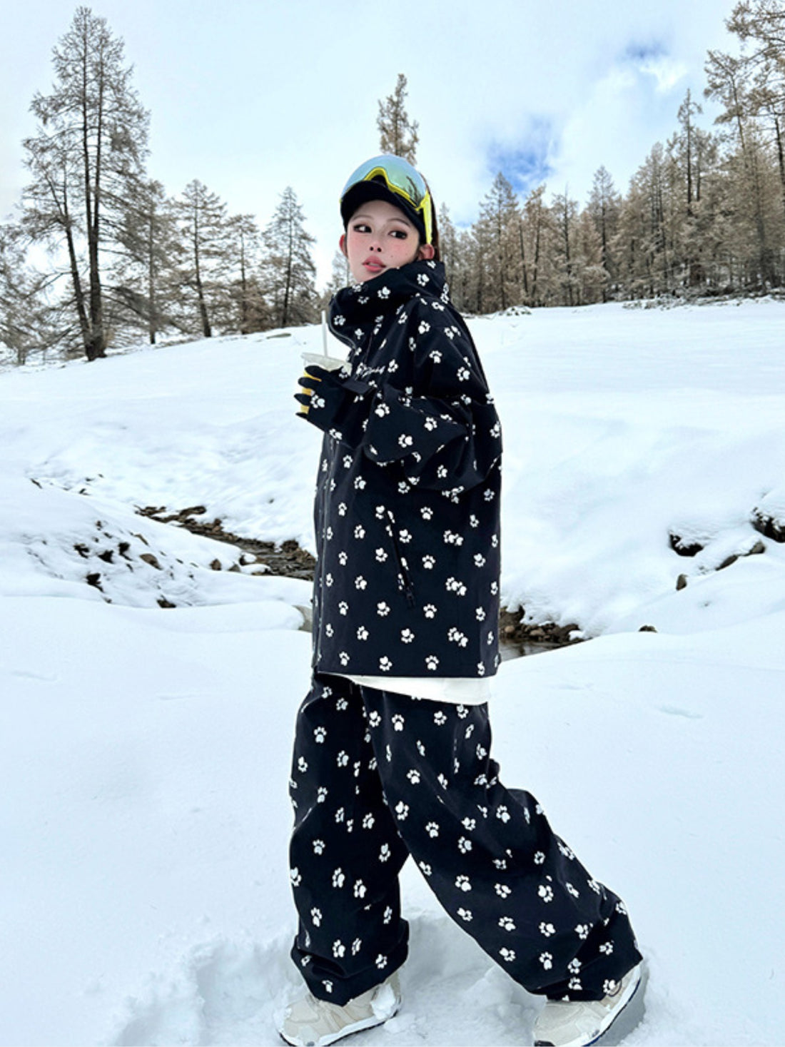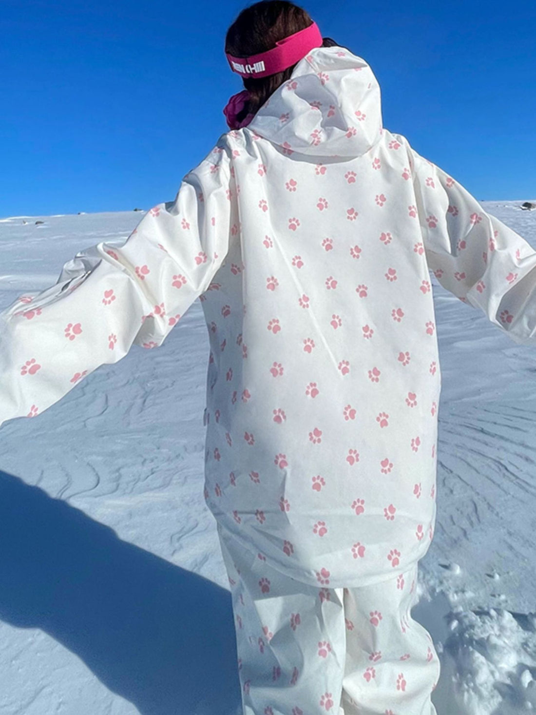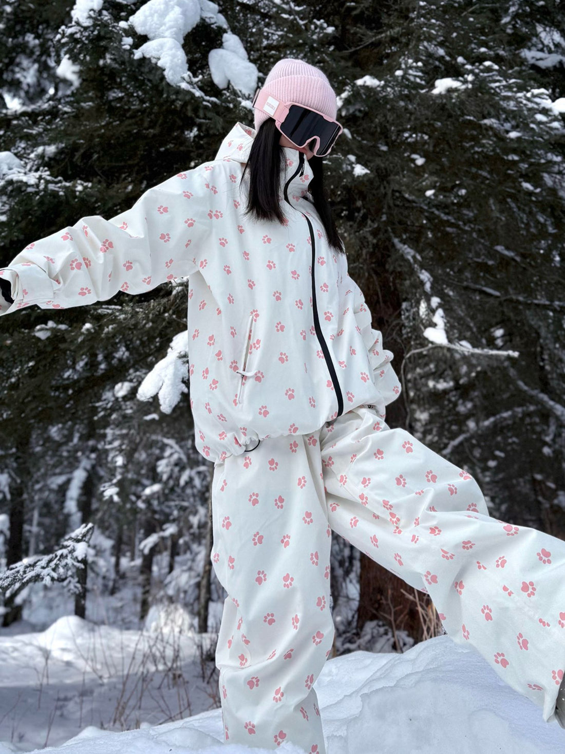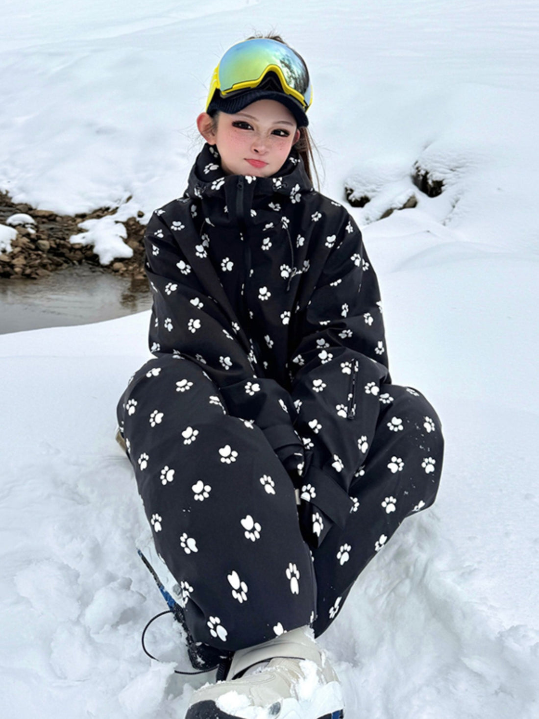 XwXwSeui Womens and Mens Loose Baggy Zipper Cat Paw Print Snowboarding Suit