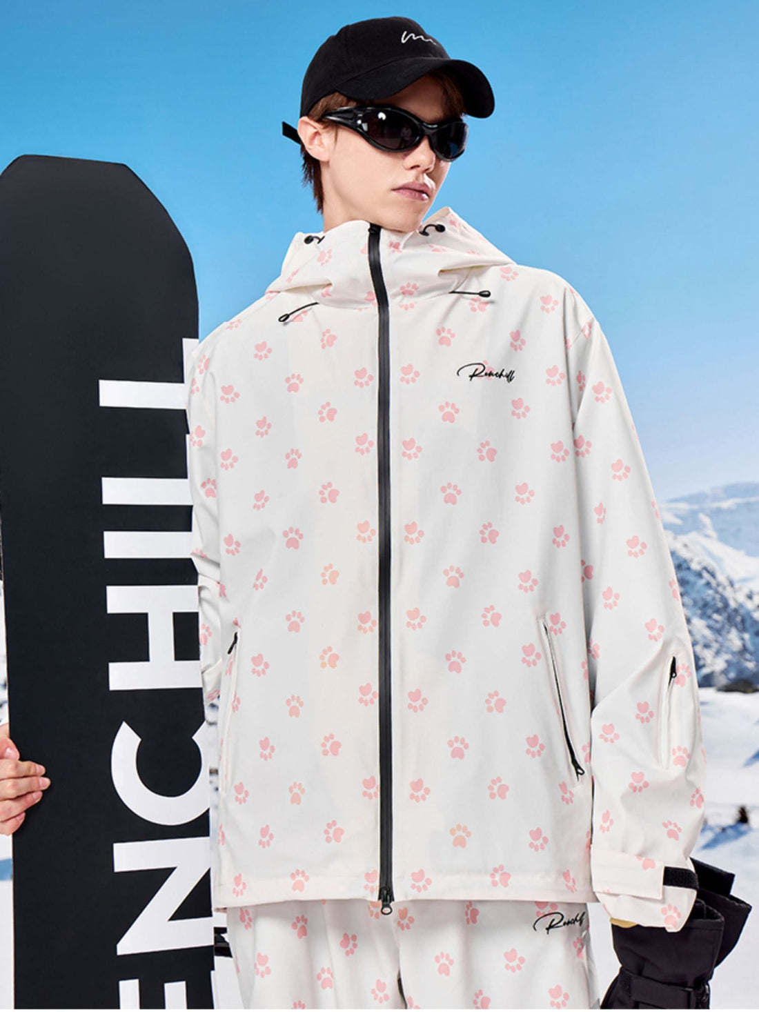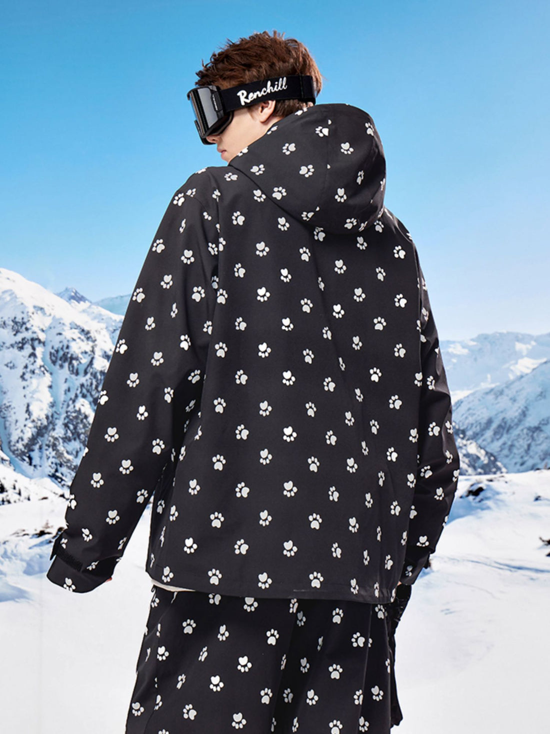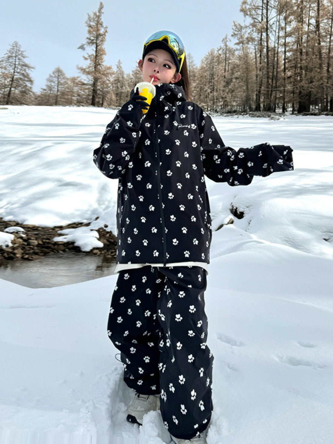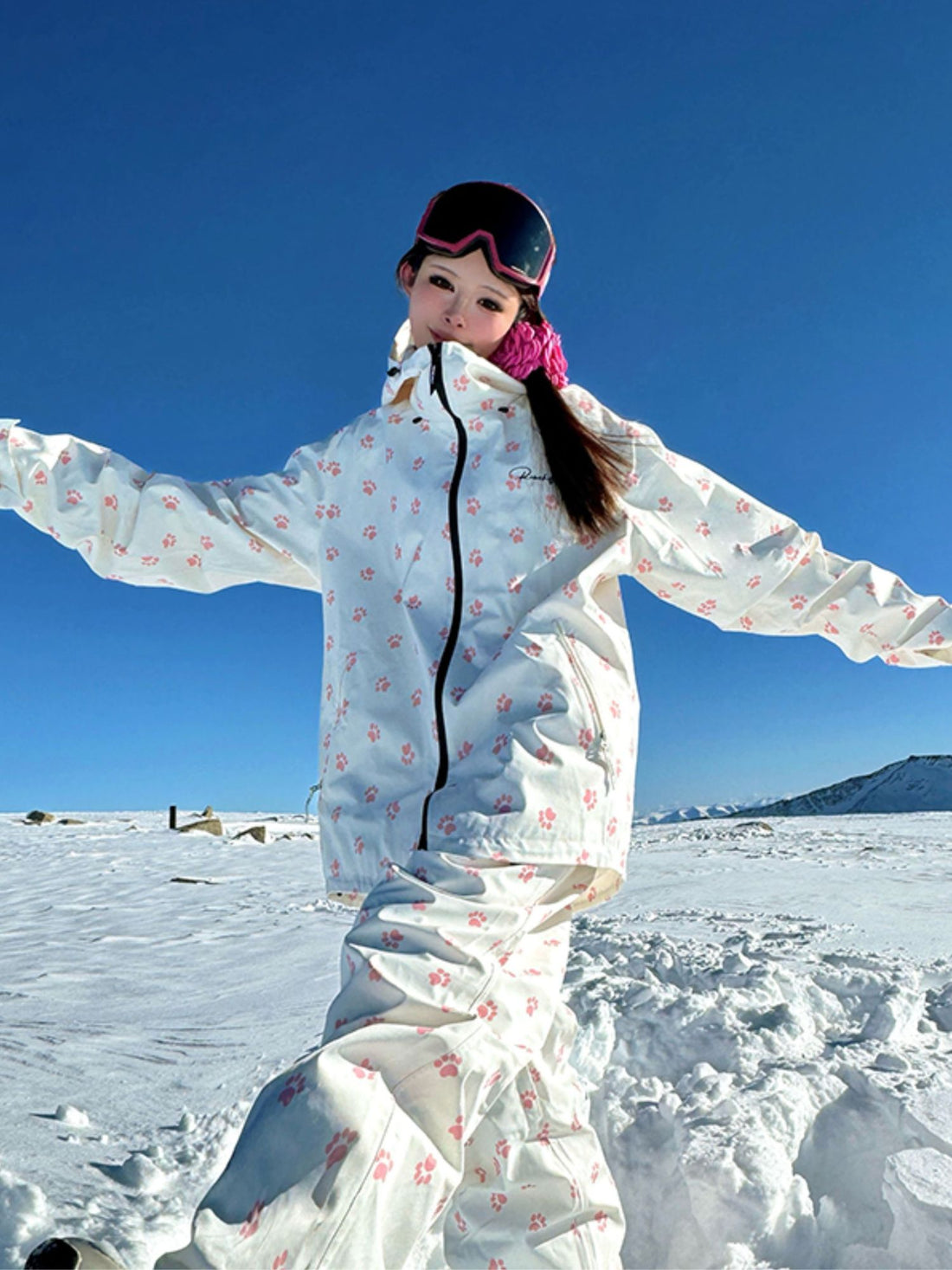 XwXwSeui Womens and Mens Loose Baggy Zipper Cat Paw Print Snowboarding Suit