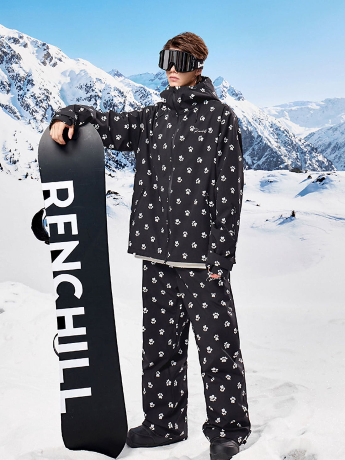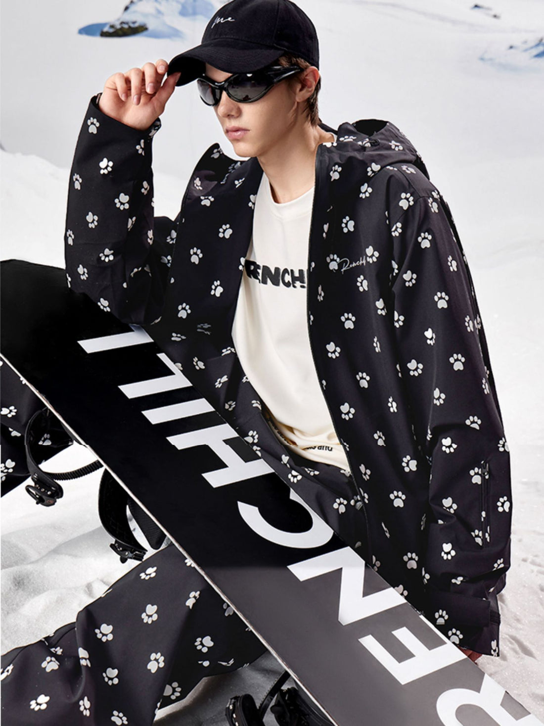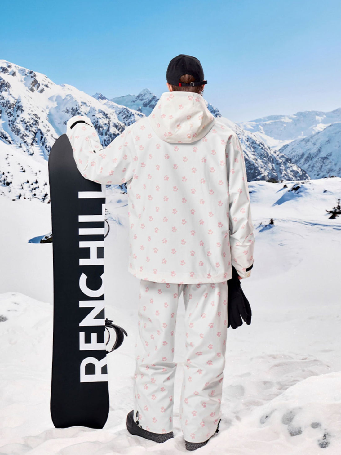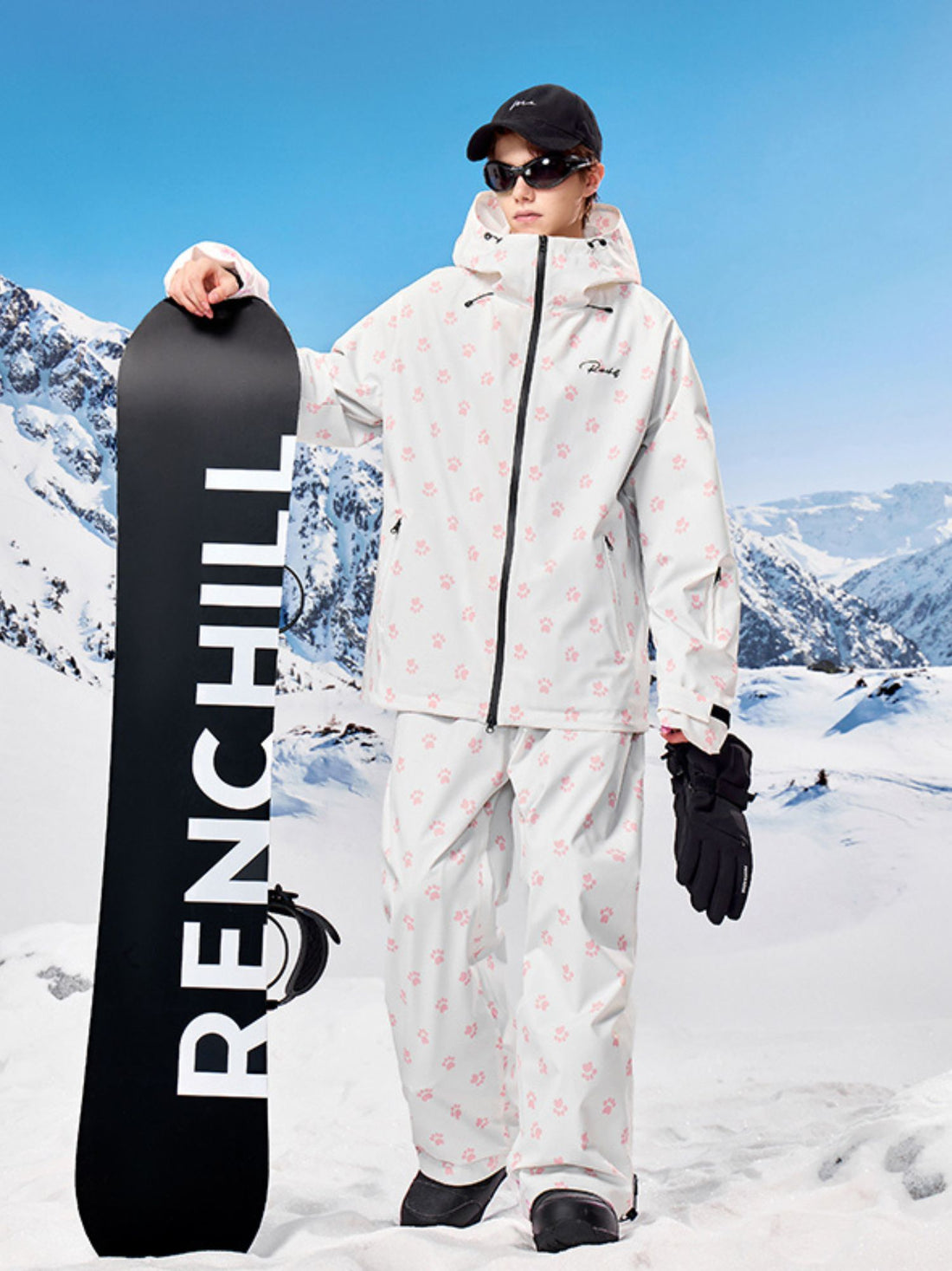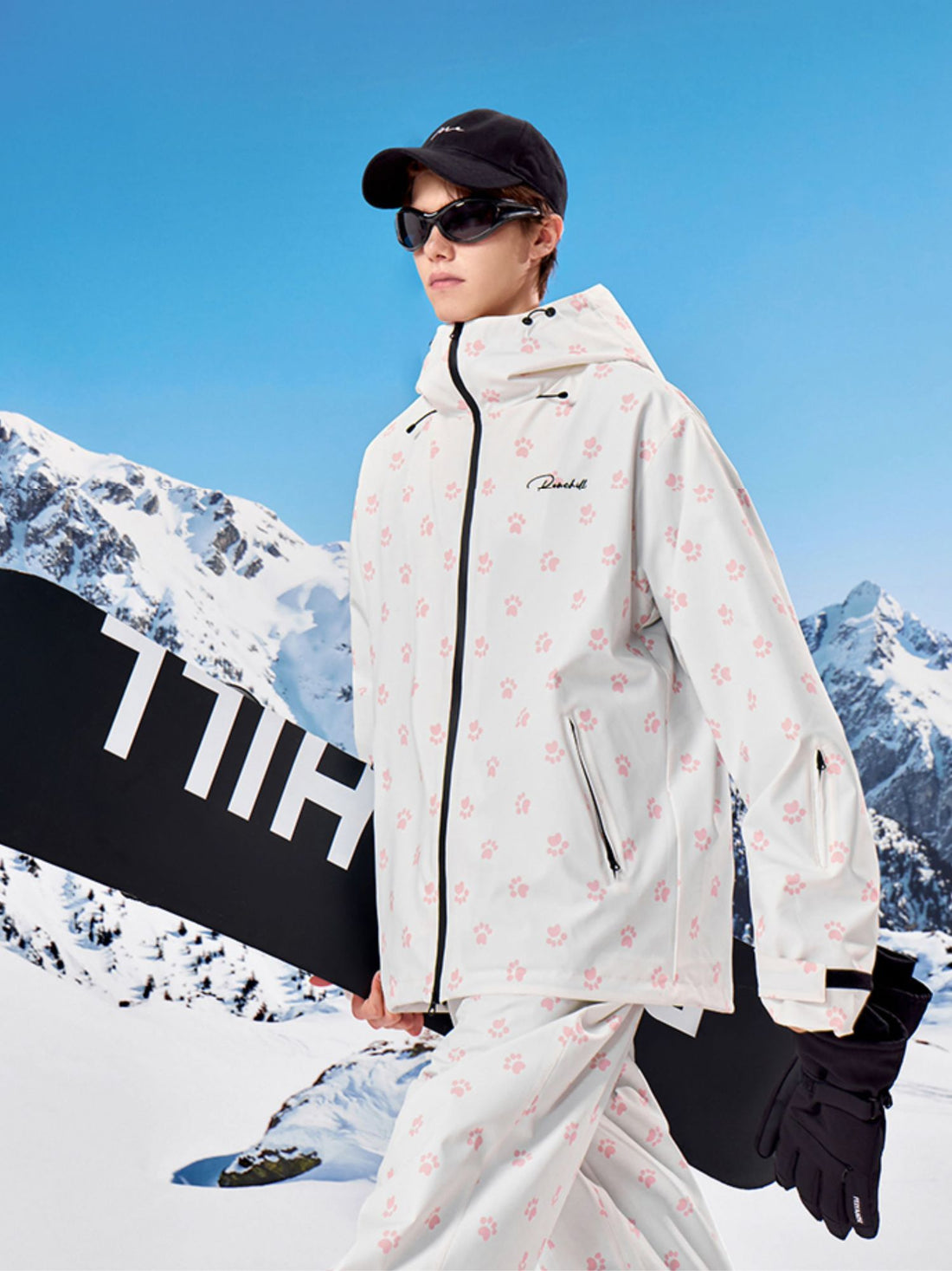 XwXwSeui Womens and Mens Loose Baggy Zipper Cat Paw Print Snowboarding Suit