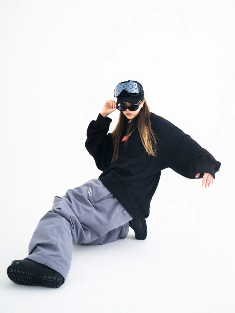 XwXwSeui Womens Mens Grey Loose Breathproof Chic Baggy Ski Pants
