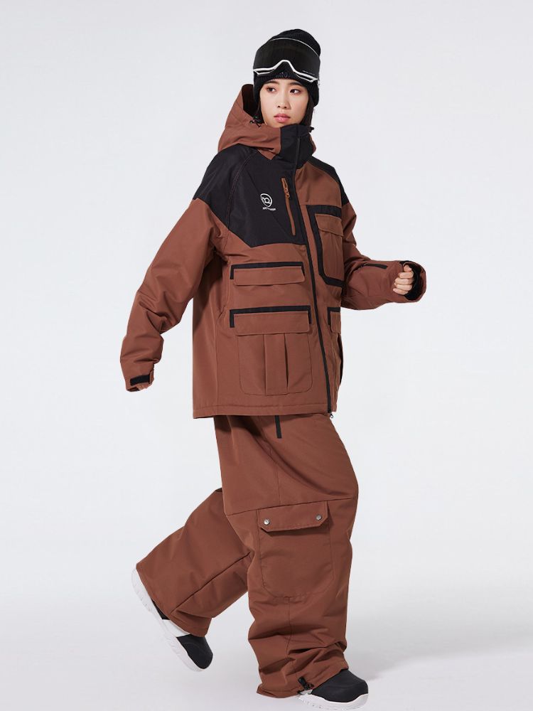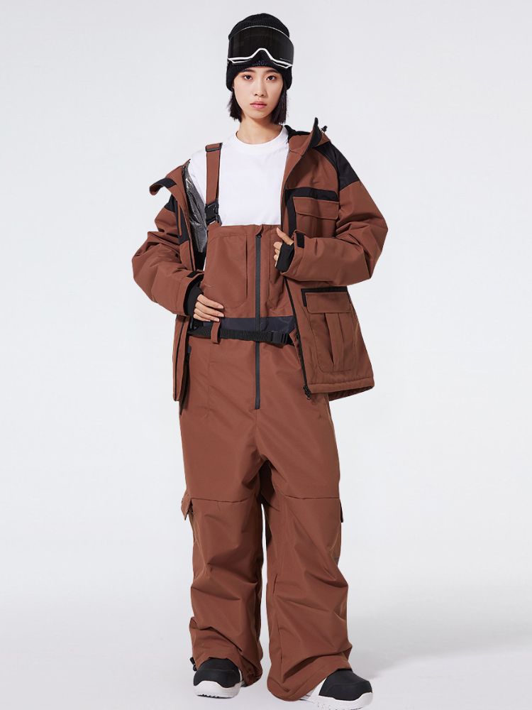 XwXwSeui Womens Mens Insulated Cargo Loose Waterproof Breathable Snow Suits