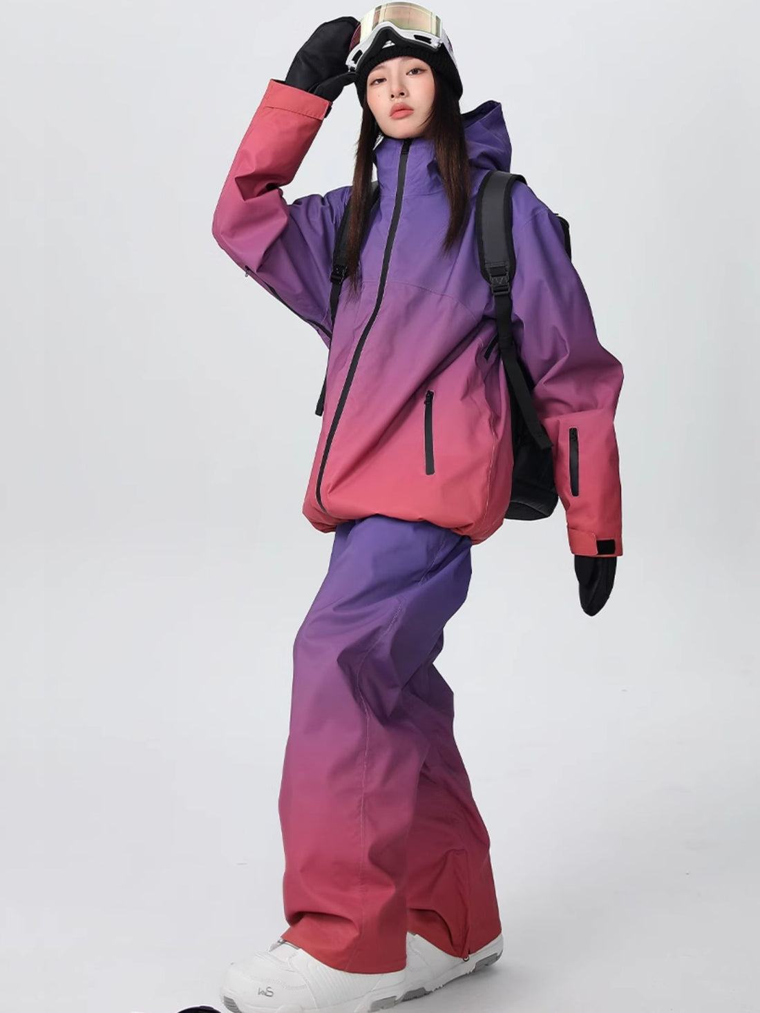 XwXwSeui Womens Mens Insulated Gradient Loose Outdoor Breathproof Skiing Suits