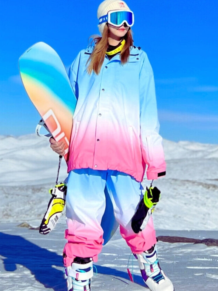 XwXwSeui Women's Men's Shell Waterproof Gradient Ice Cream Snowboard Jackets