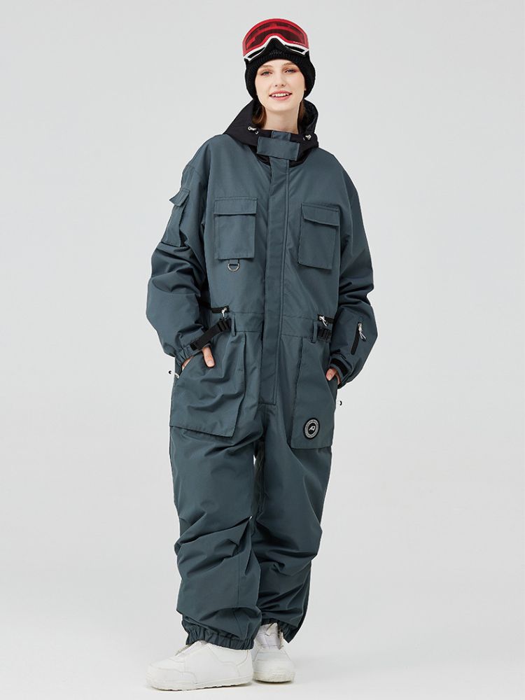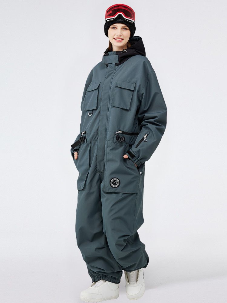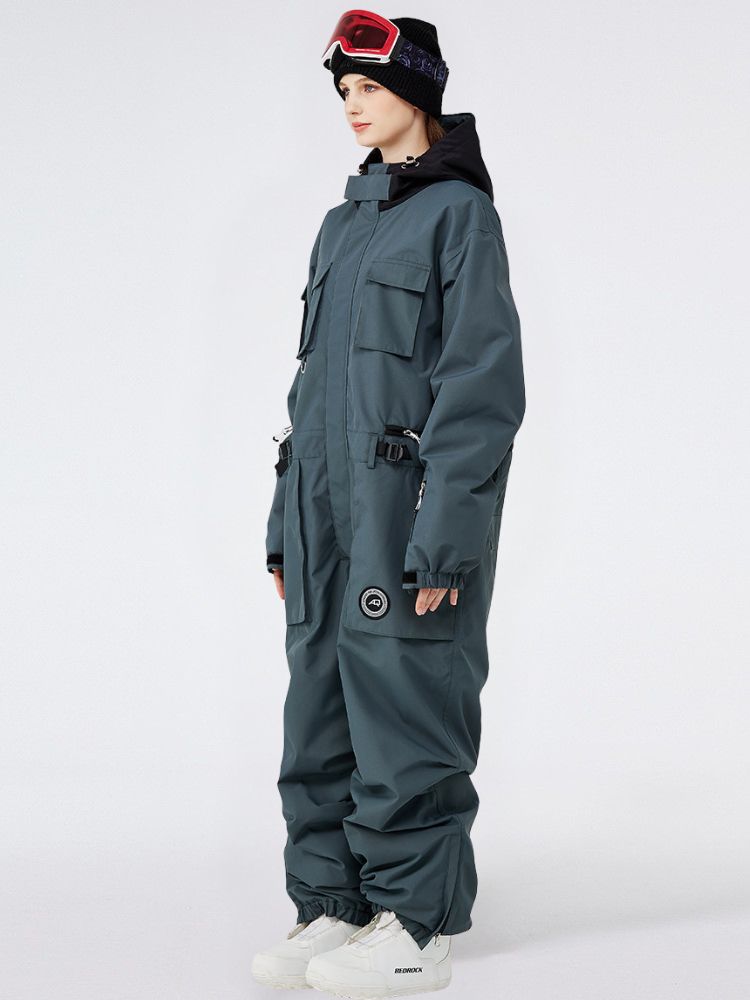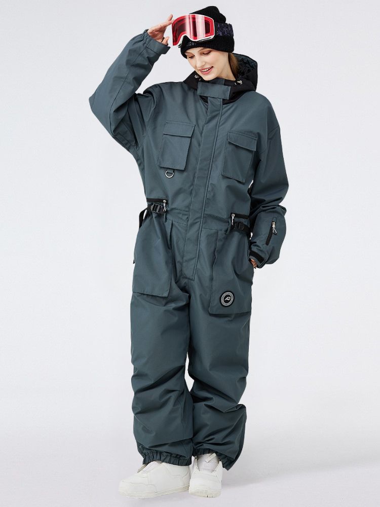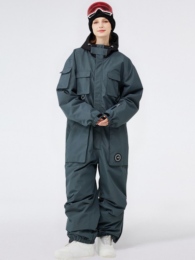 XwXwSeui Womens Mens Insulated Waterproof Hood Windproof Solid Snow Jumpsuit